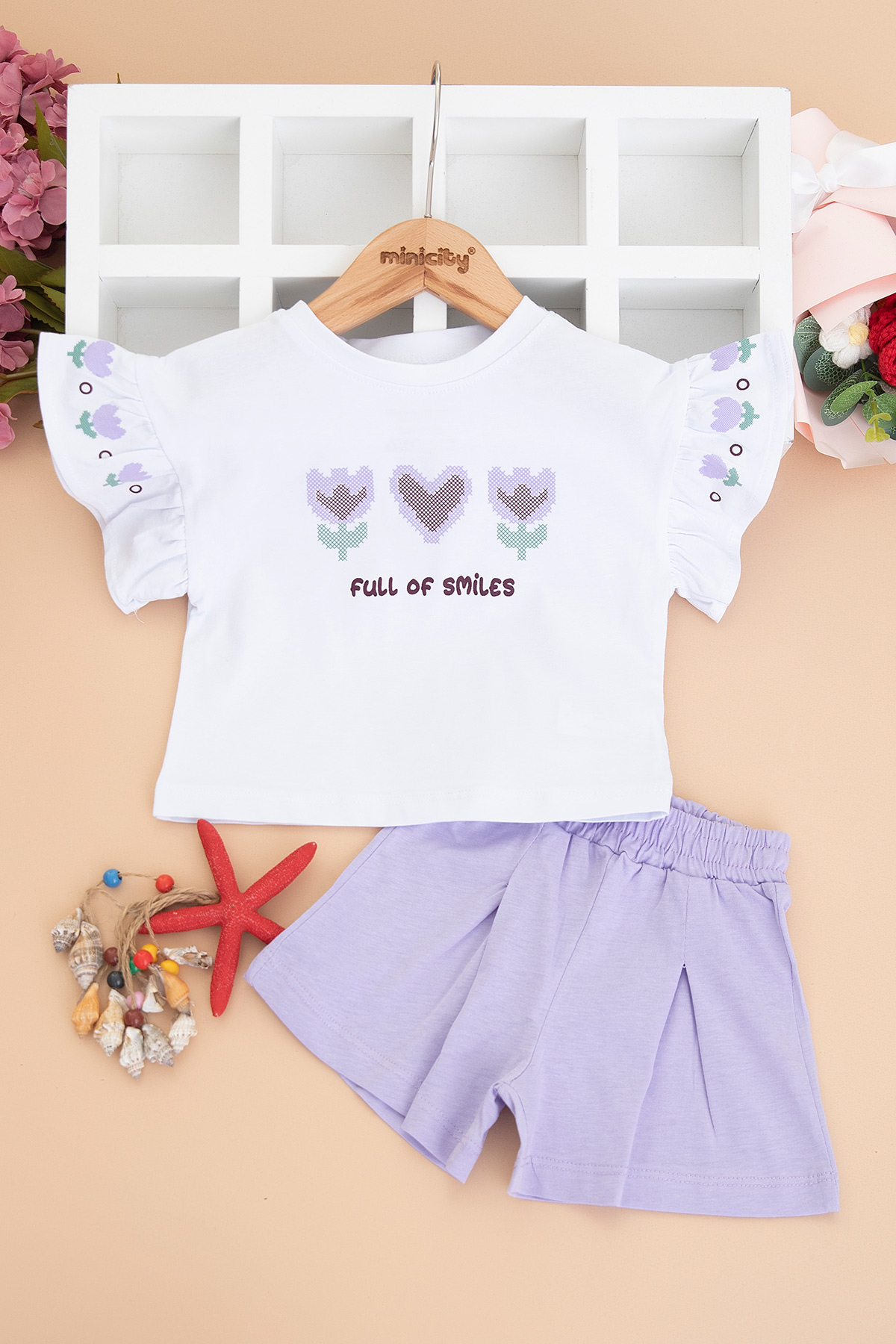 Kız Bebek Kalp Baskılı Şortlu Takım - 26546 (9-24 Ay)