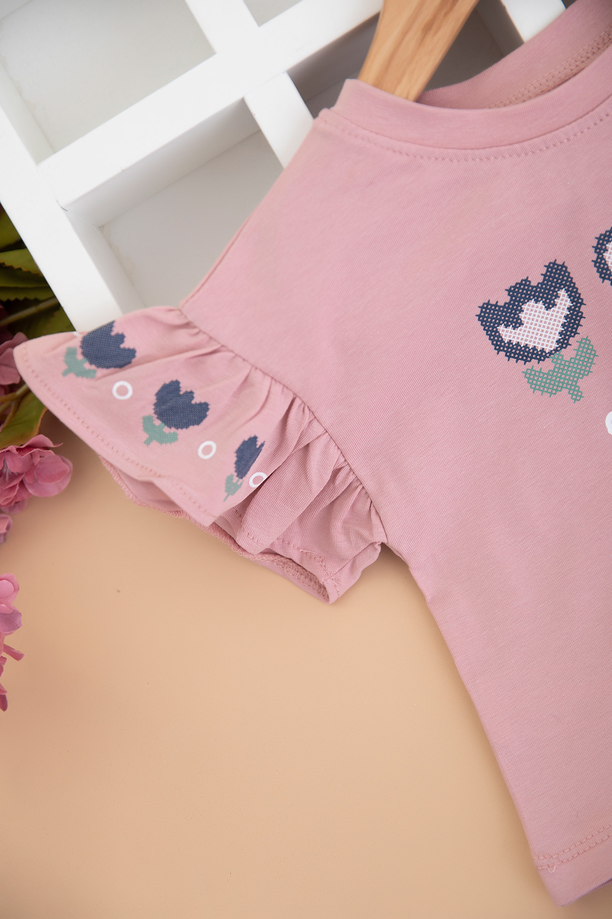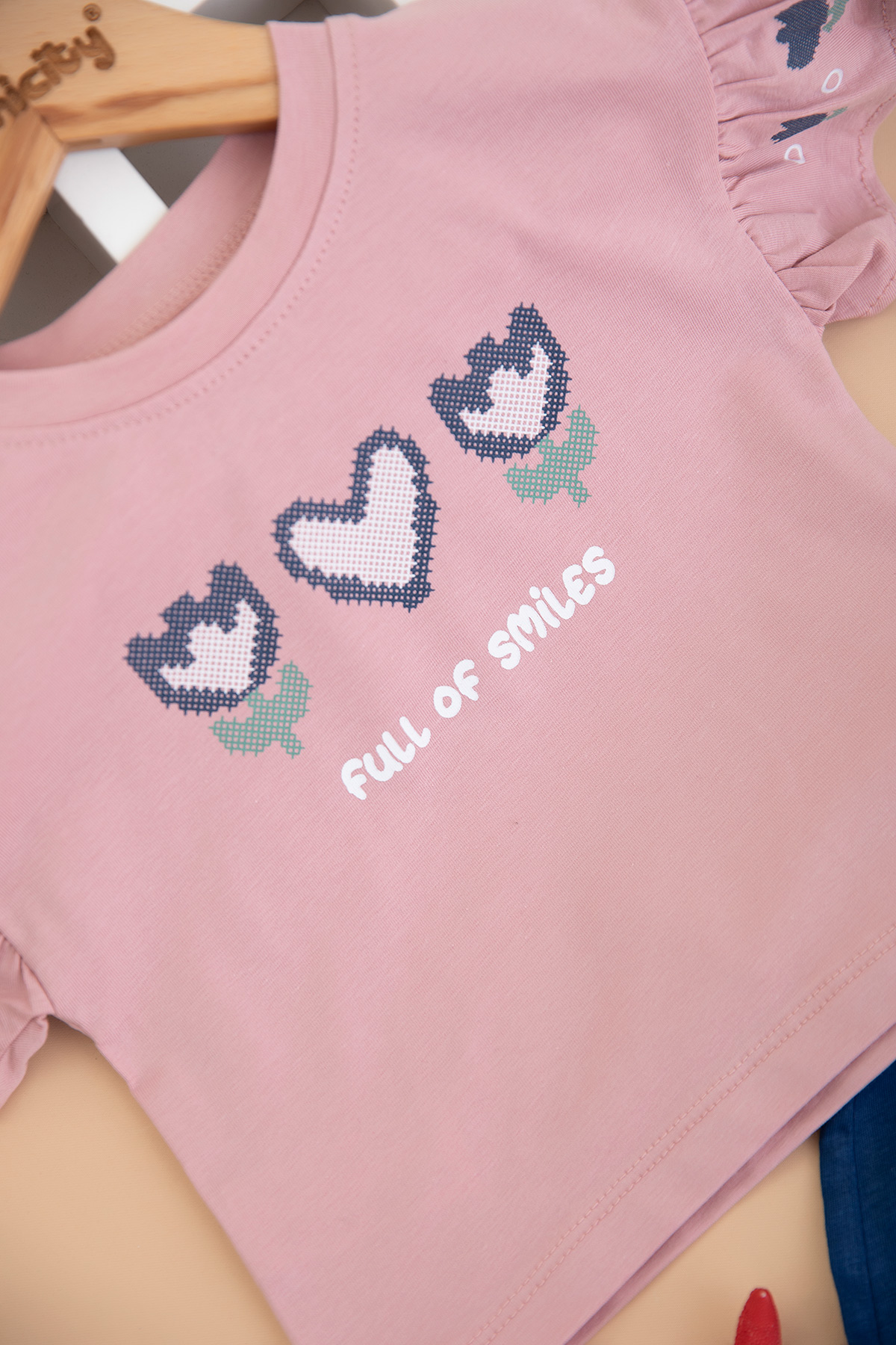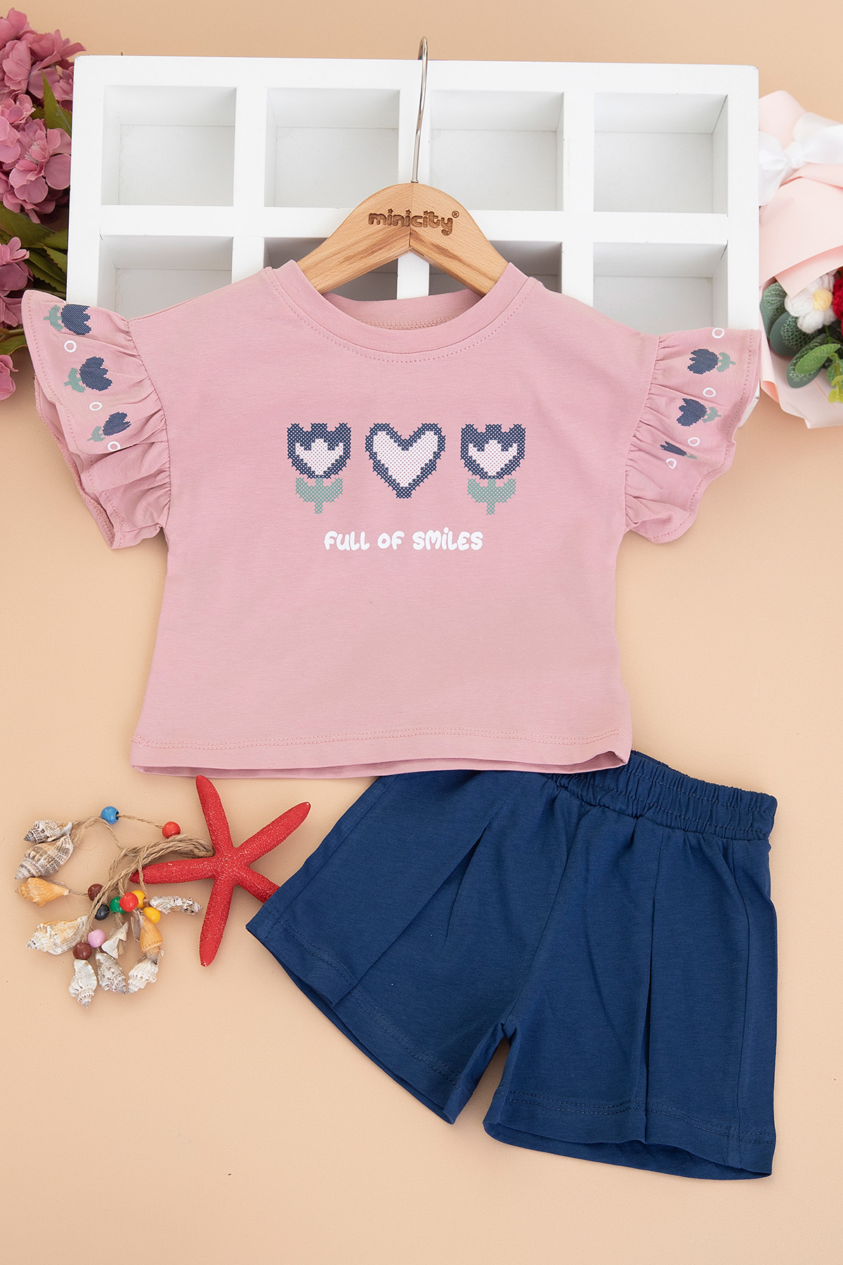Kız Bebek Kalp Baskılı Şortlu Takım - 26546 (9-24 Ay)
