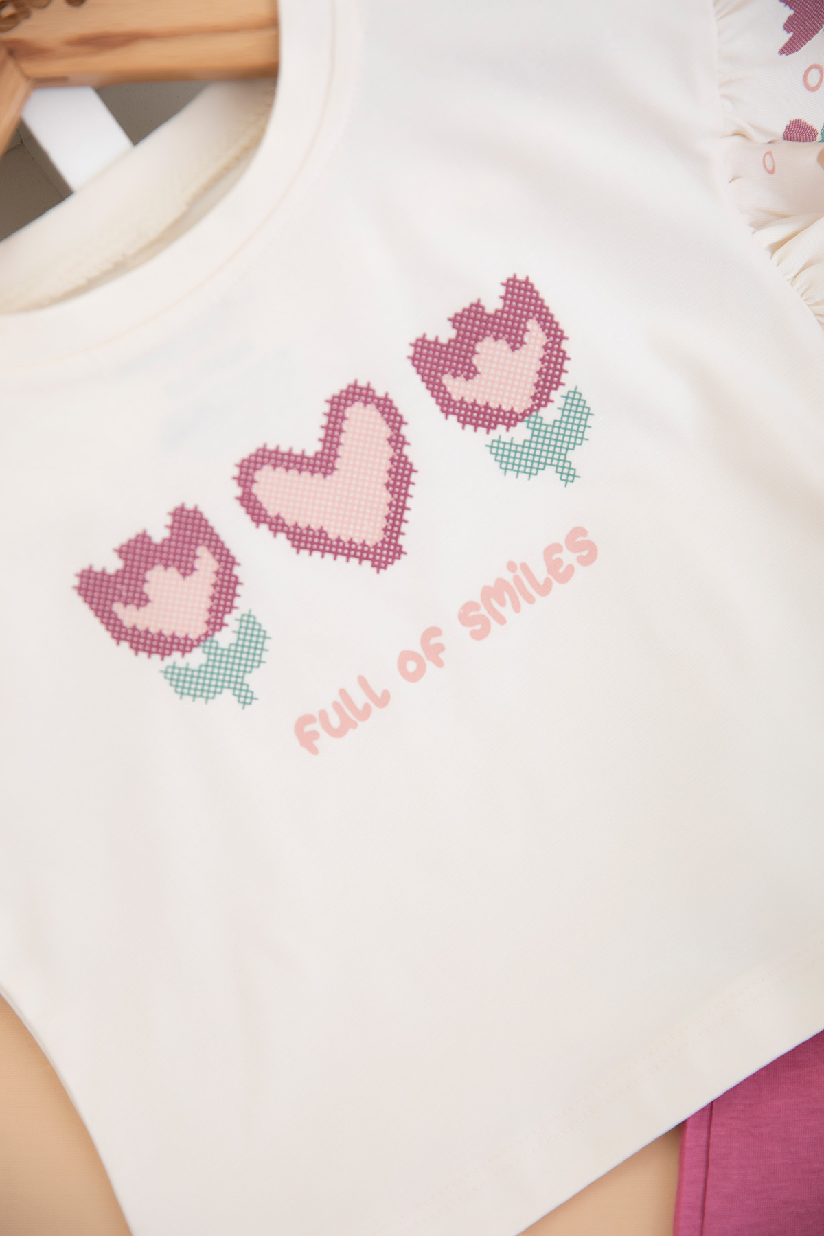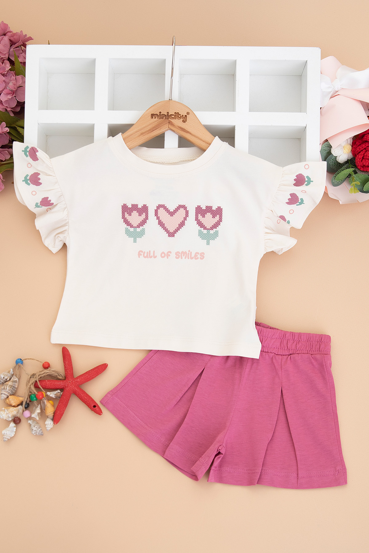 Kız Bebek Kalp Baskılı Şortlu Takım - 26546 (9-24 Ay)