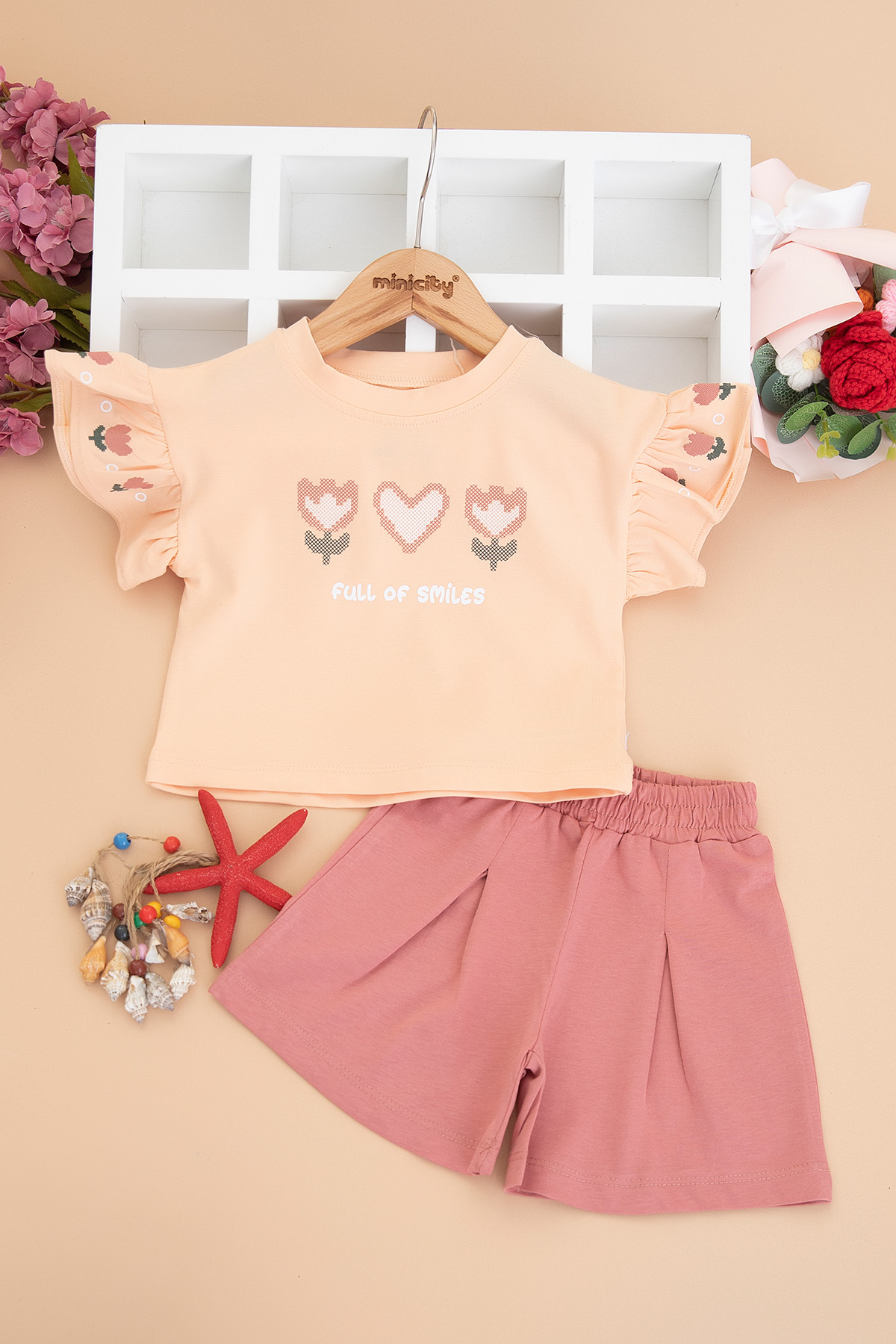Kız Bebek Kalp Baskılı Şortlu Takım - 26546 (9-24 Ay)