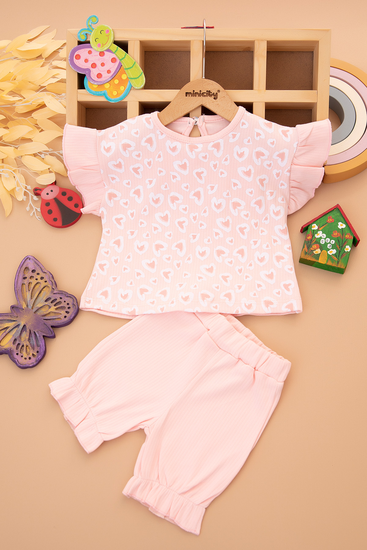 Kız Bebek Kalp Baskılı Şortlu Takım - 2659 (6-24 Ay)