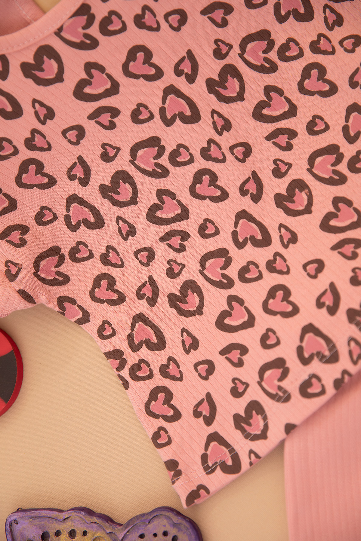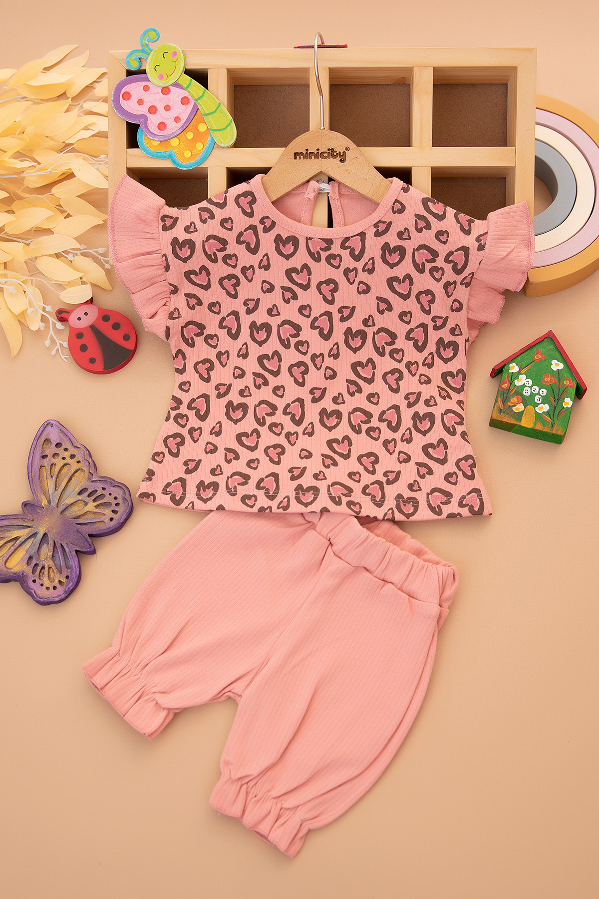 Kız Bebek Kalp Baskılı Şortlu Takım - 2659 (6-24 Ay)