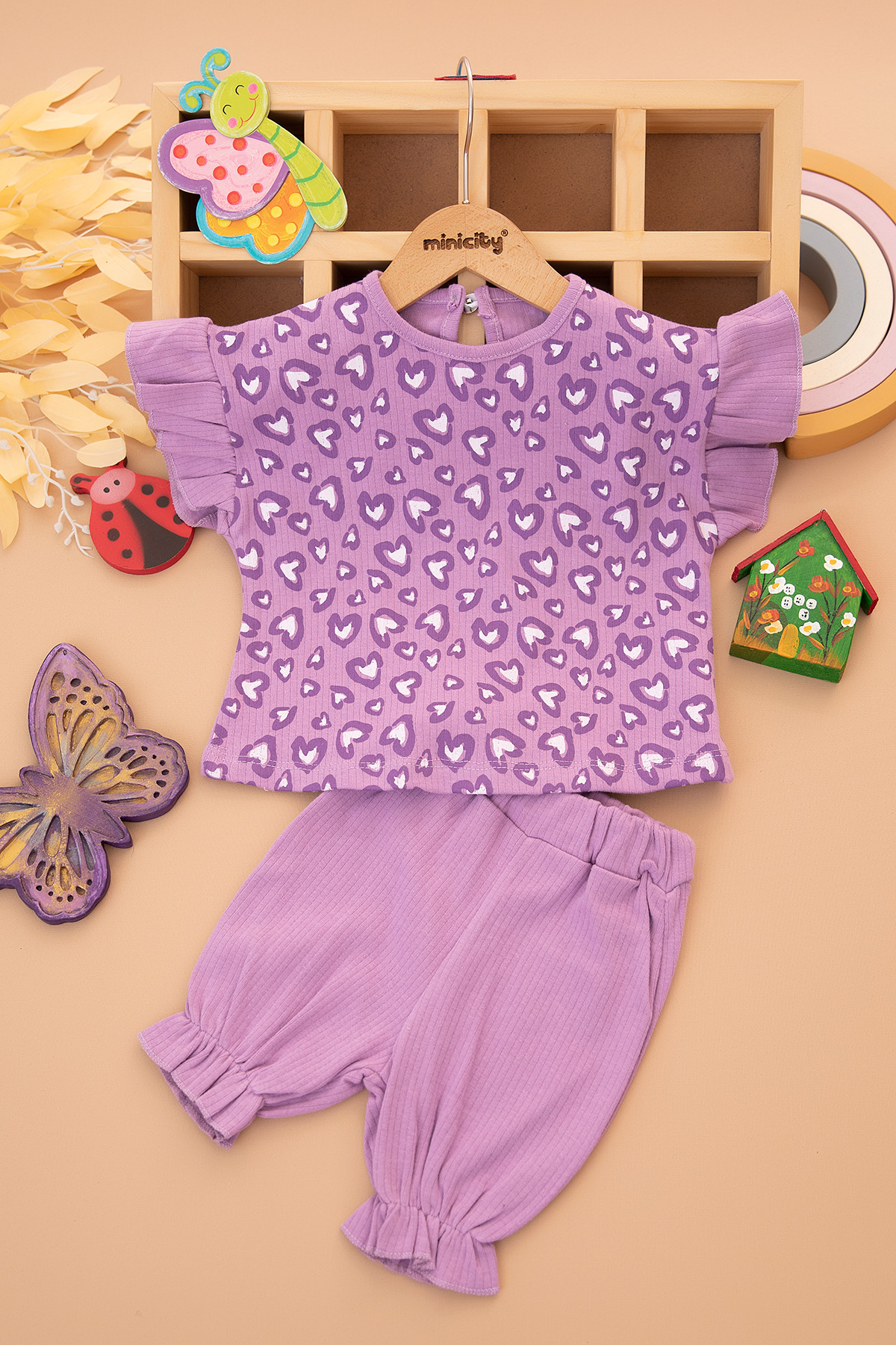 Kız Bebek Kalp Baskılı Şortlu Takım - 2659 (6-24 Ay)