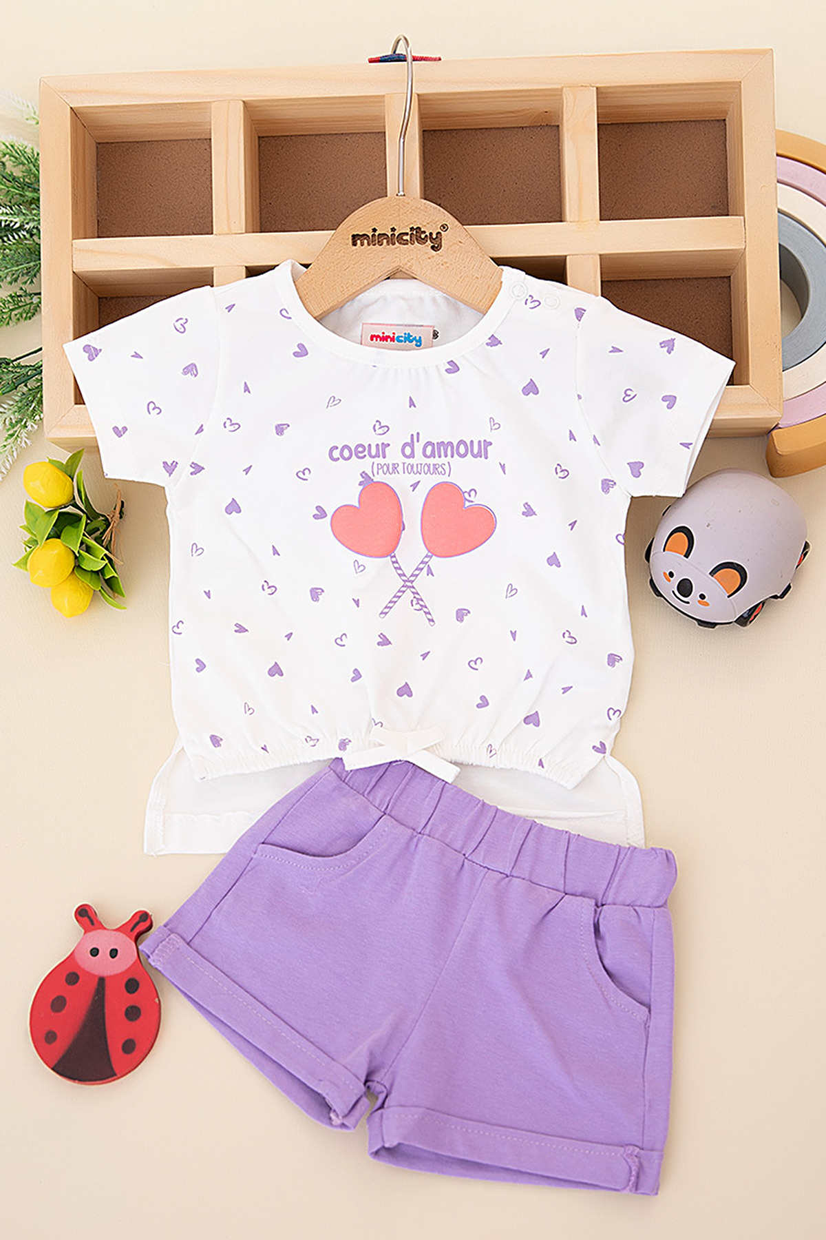 Kız Bebek Kalp Baskılı Takım - 24311 (9-24 Ay)