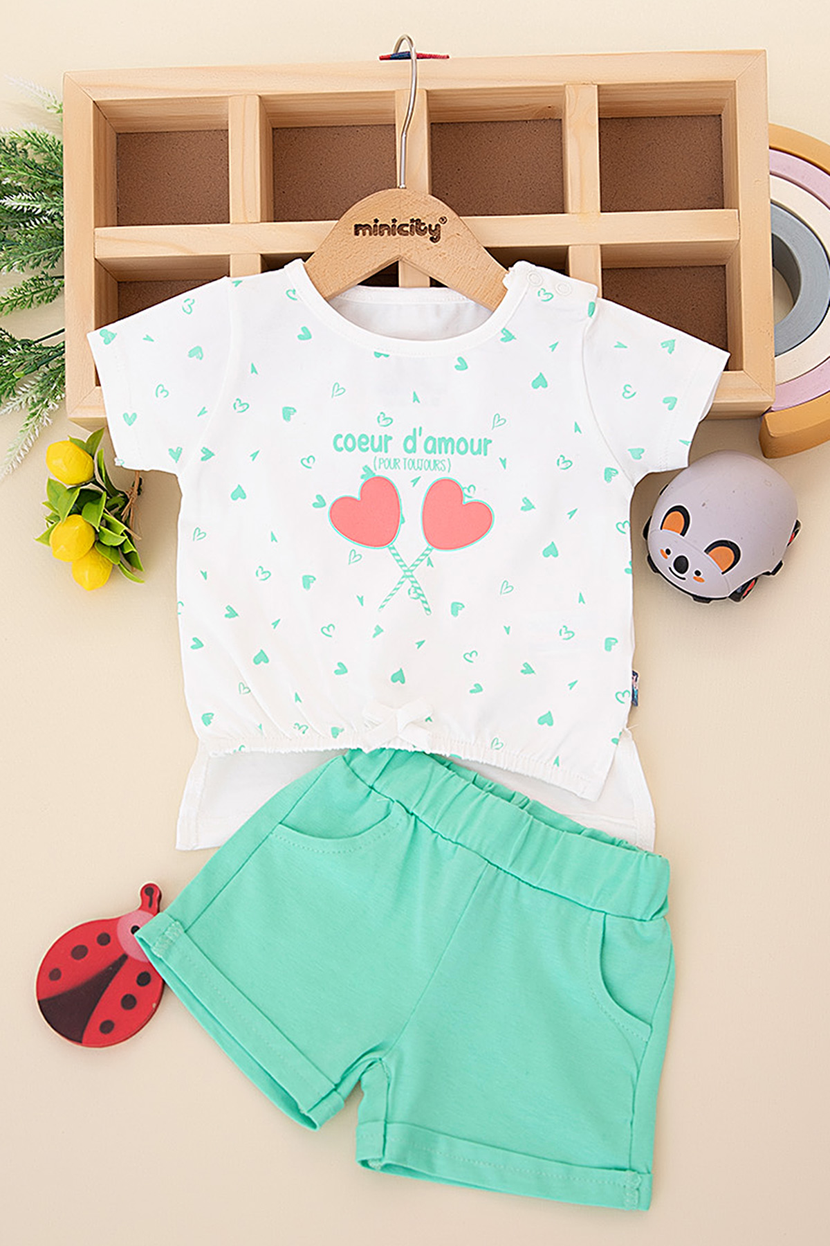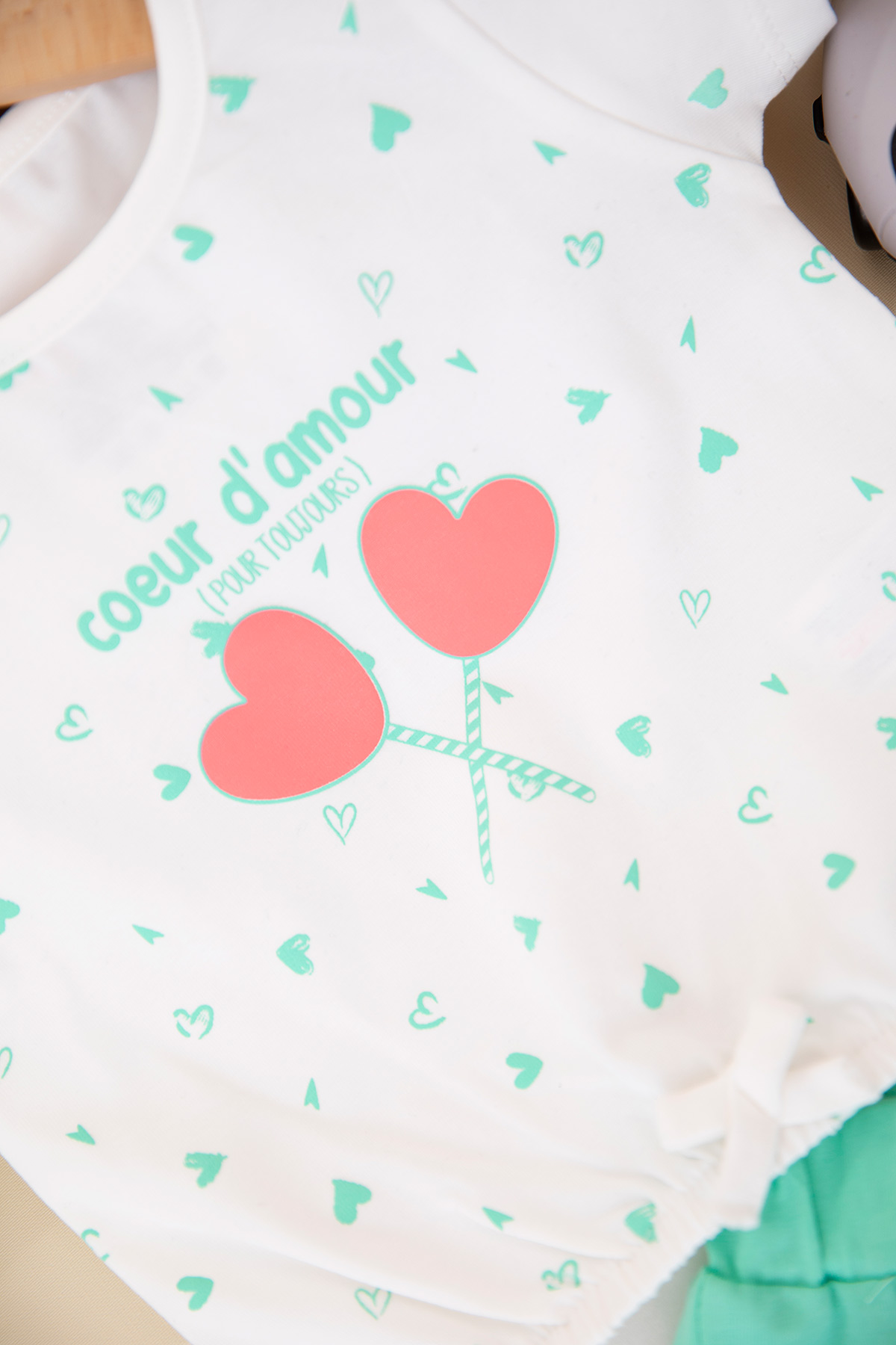 Kız Bebek Kalp Baskılı Takım - 24311 (9-24 Ay)