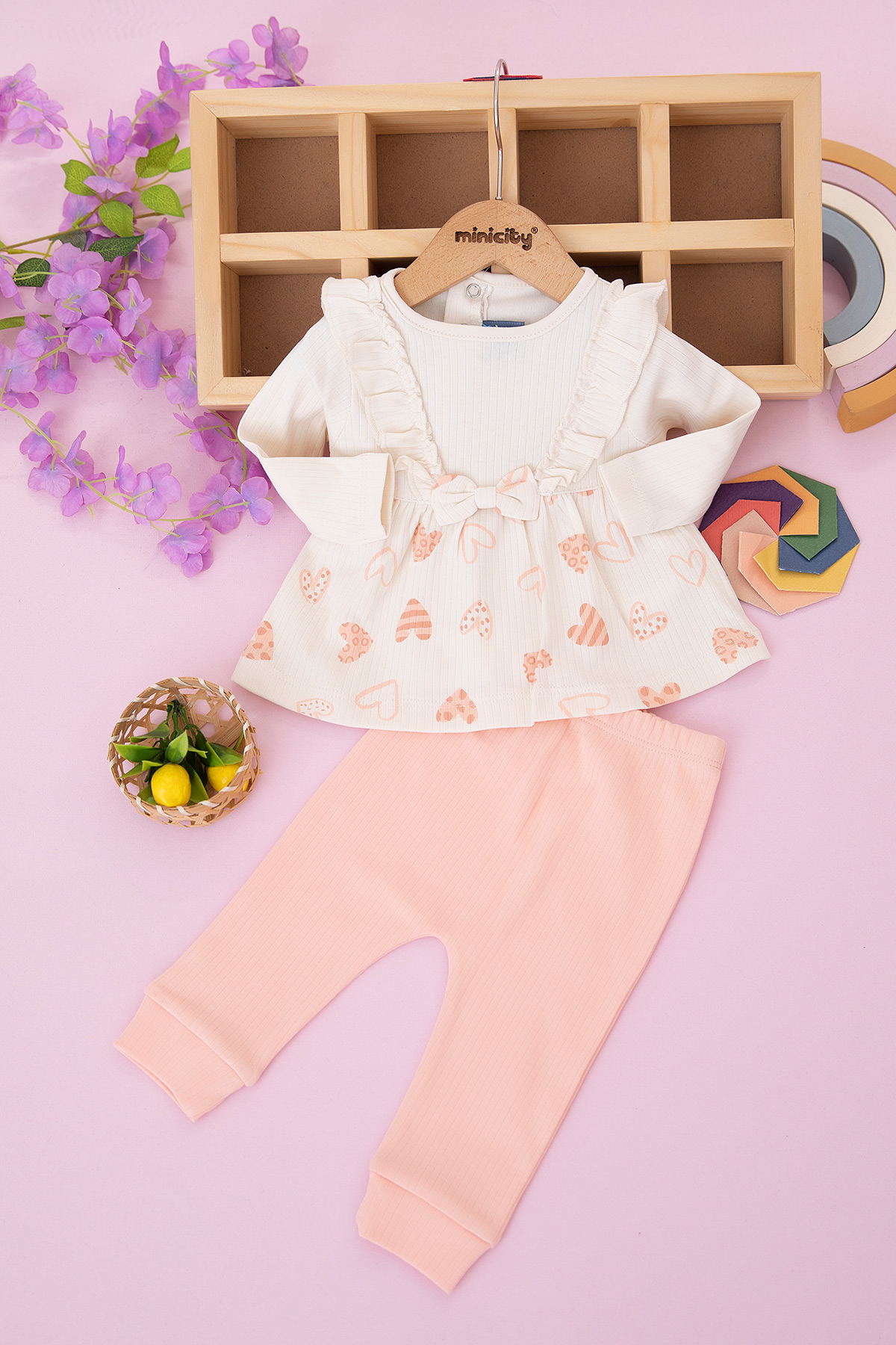Kız Bebek Kalp Baskılı Takım - NB049 (3-12 Ay)