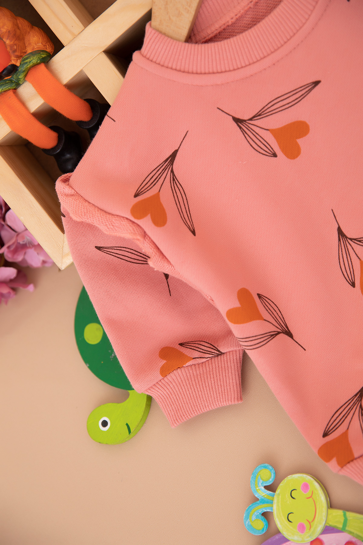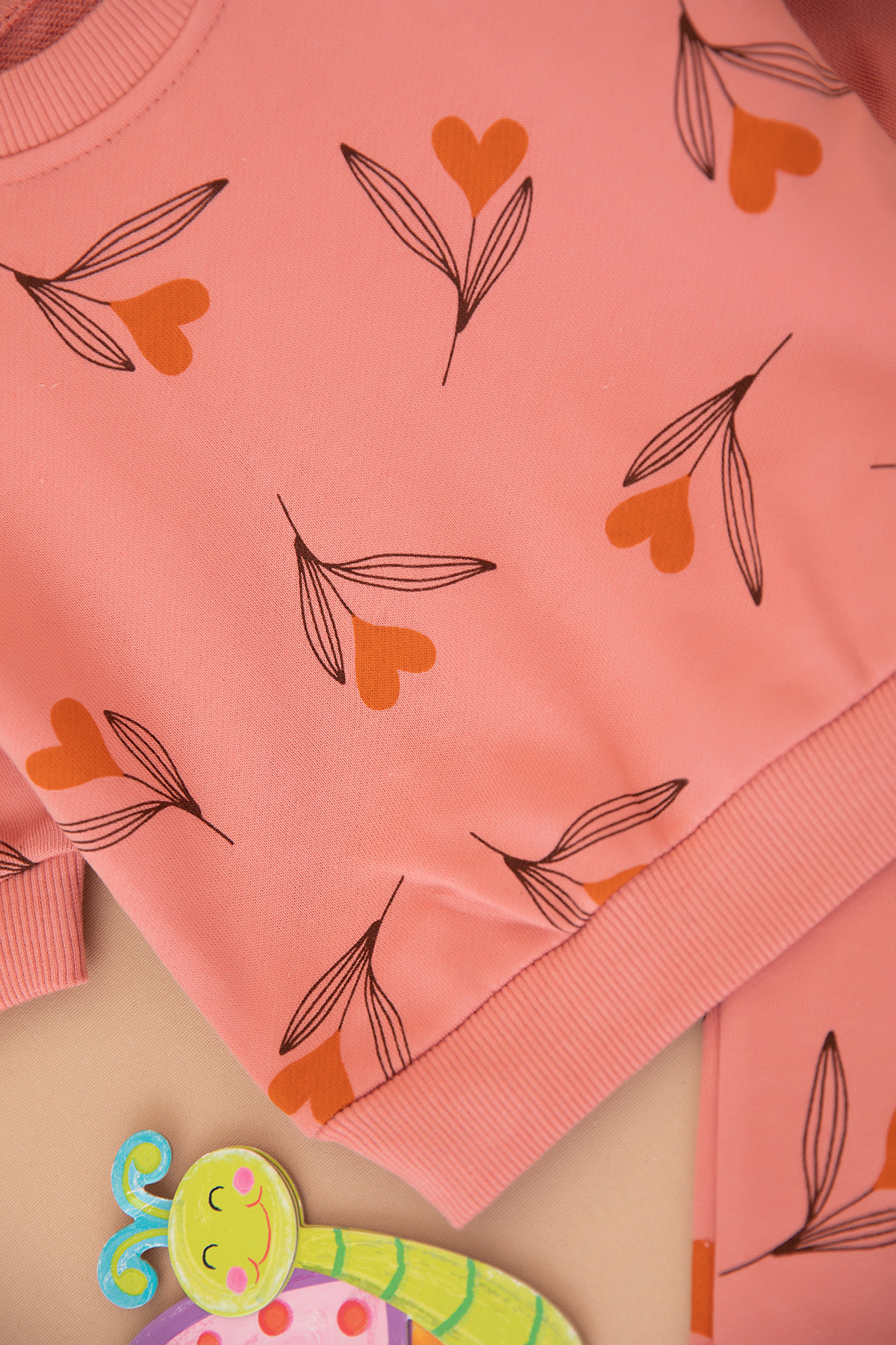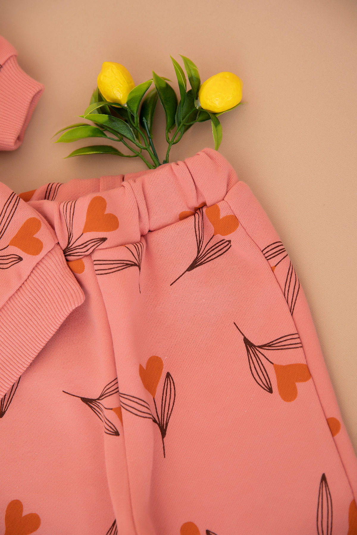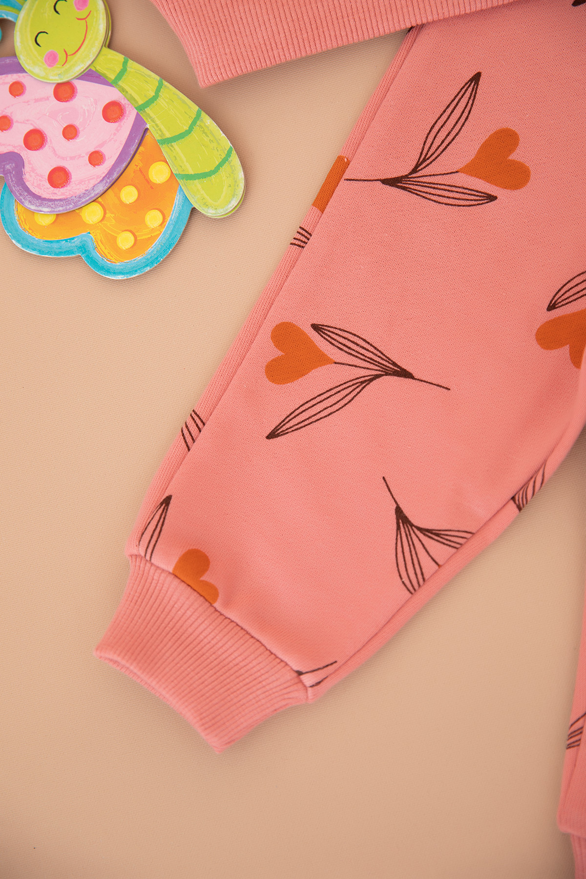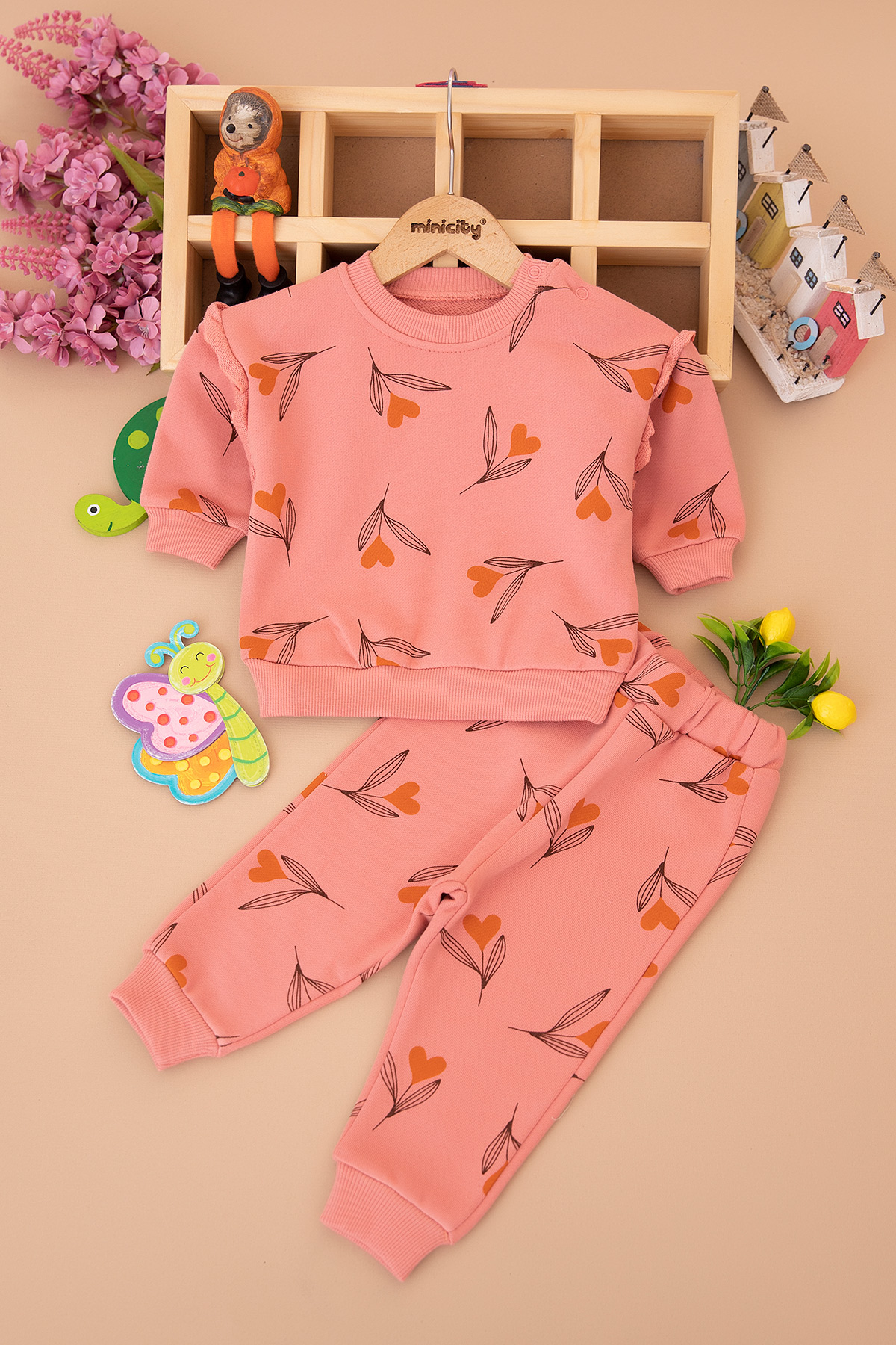 Kız Bebek Kalp Çiçek Baskılı Takım - 2927 (6-24 Ay)
