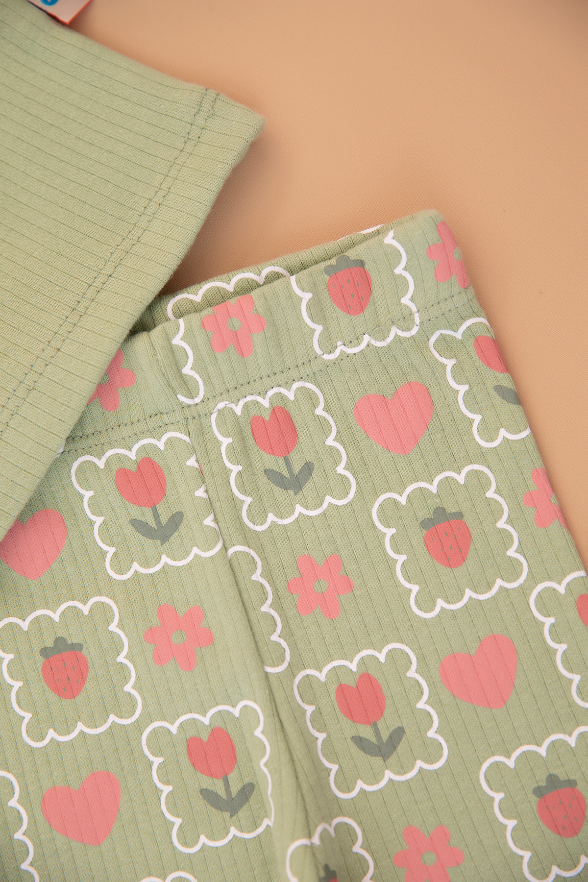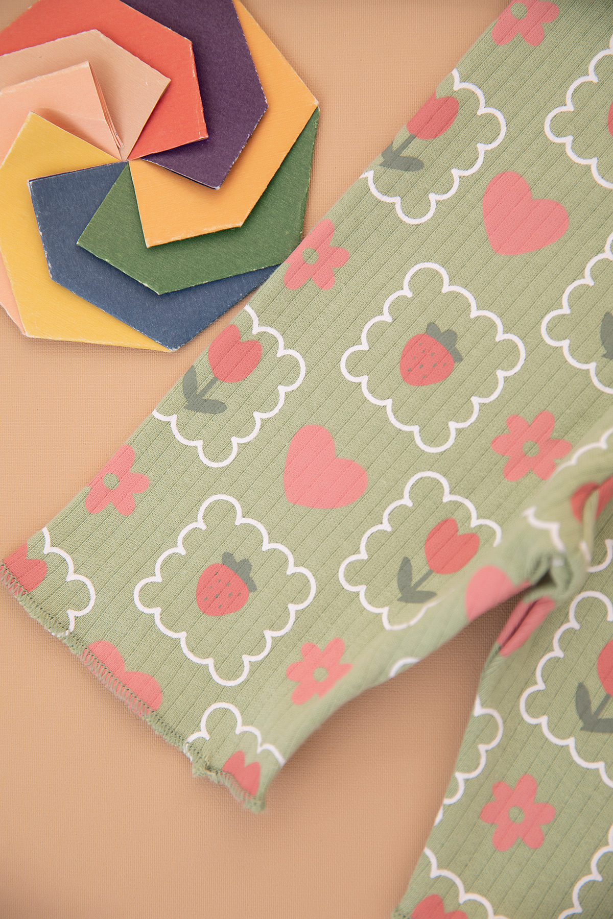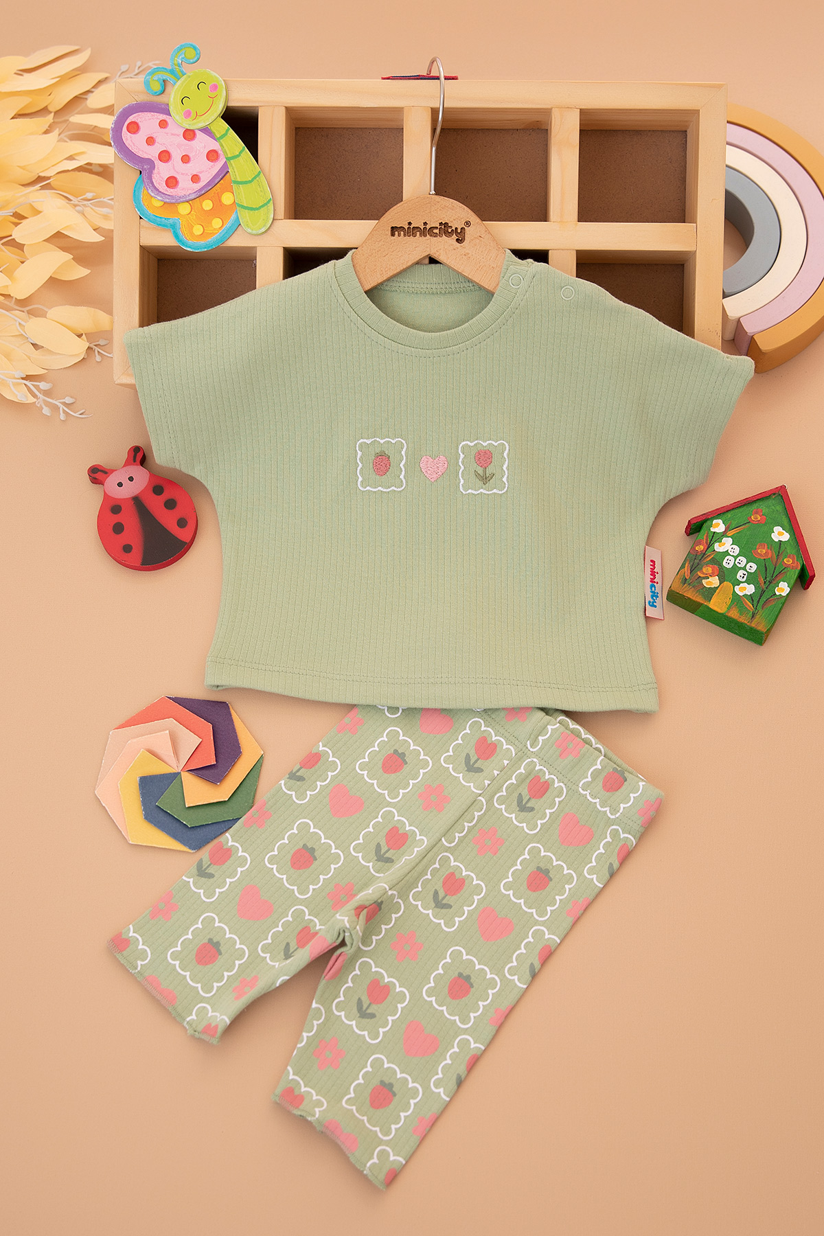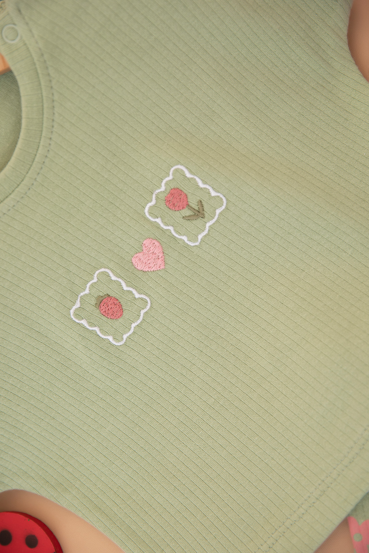 Kız Bebek Kalp Dama Nakışlı Takım - 2665 (6-24 Ay)
