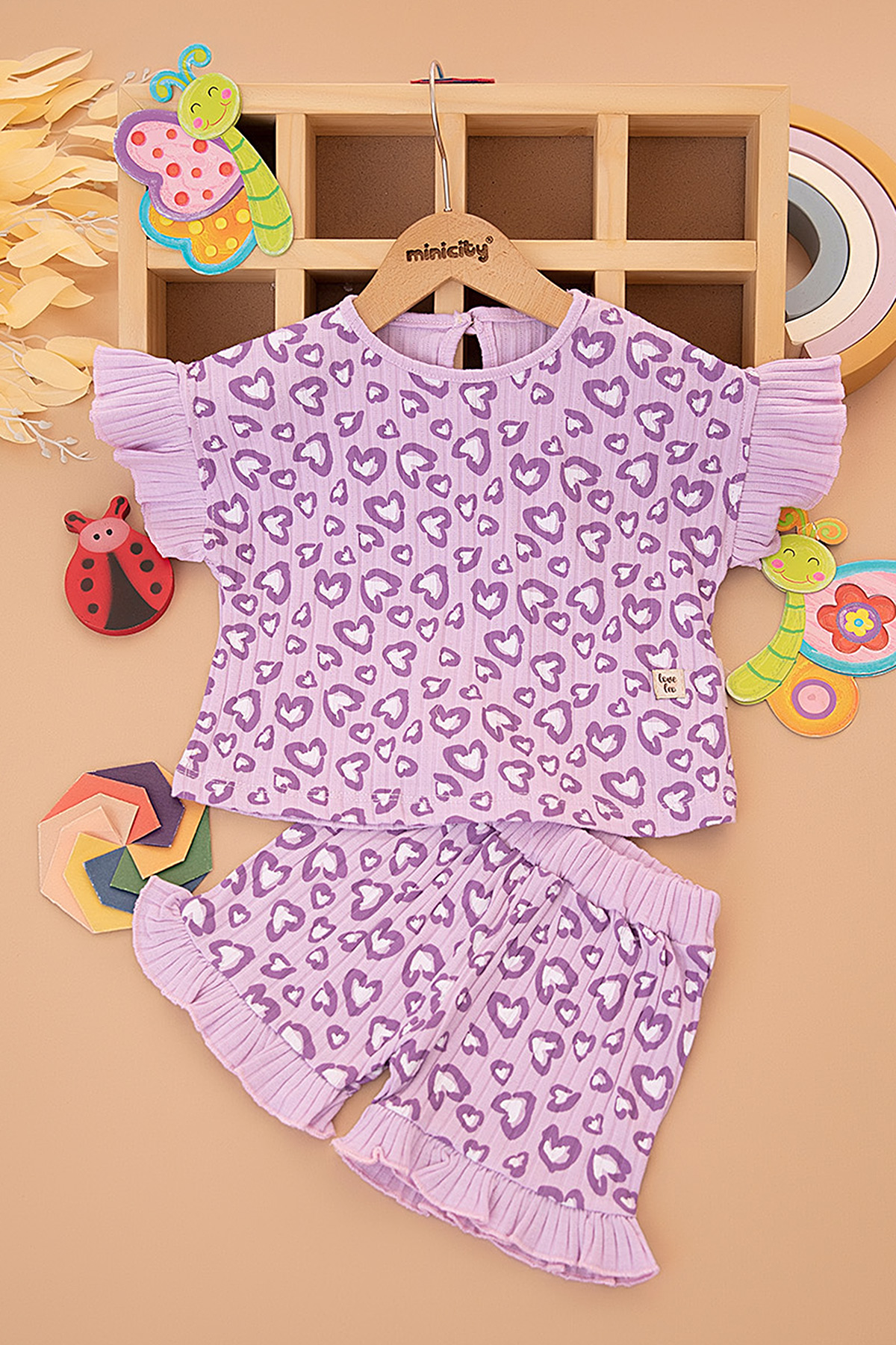 Kız Bebek Kalp Leopar Baskılı Takım - 2659 (6-24 Ay)