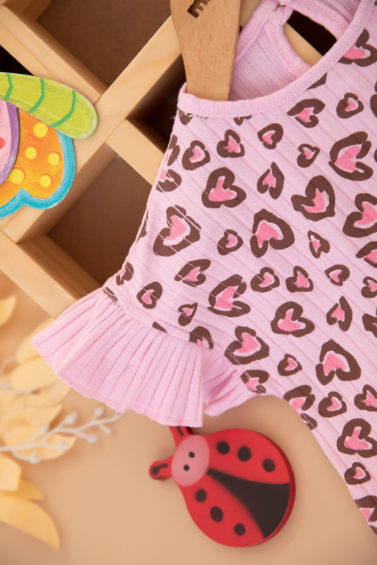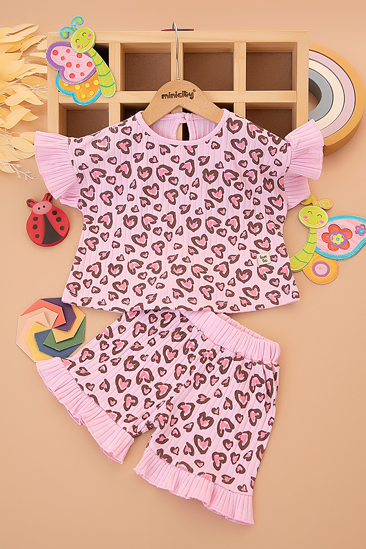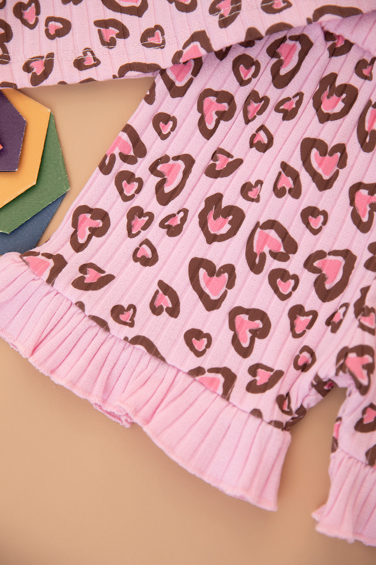 Kız Bebek Kalp Leopar Baskılı Takım - 2659 (6-24 Ay)