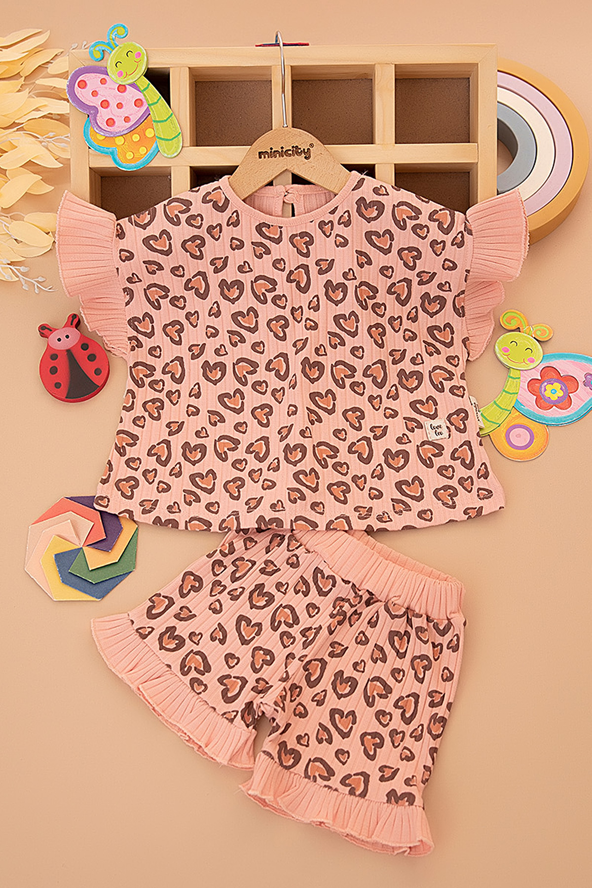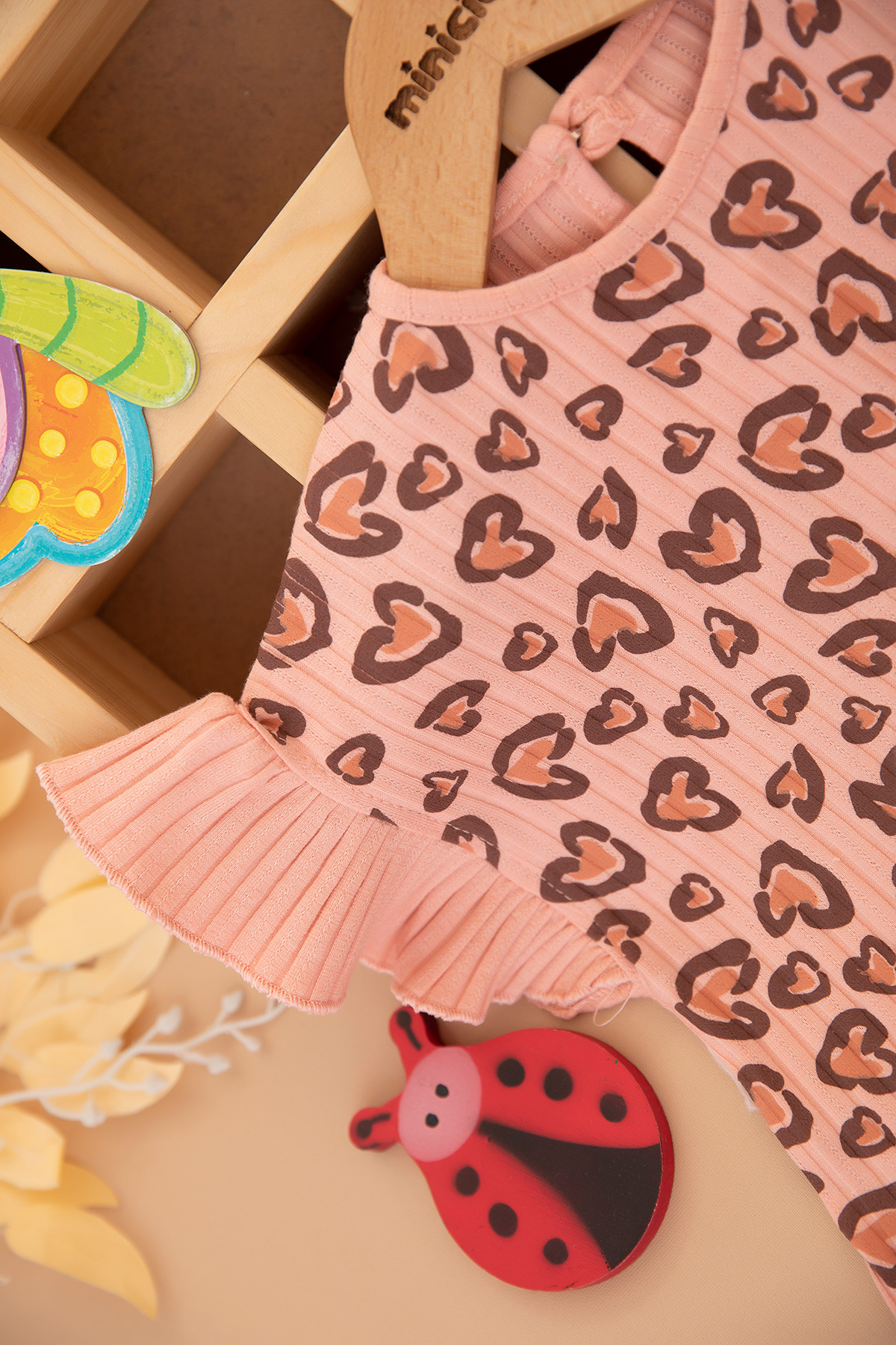 Kız Bebek Kalp Leopar Baskılı Takım - 2659 (6-24 Ay)