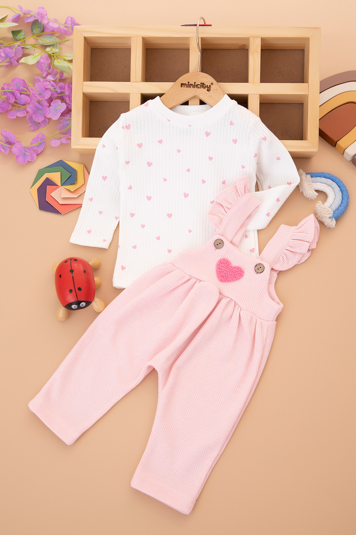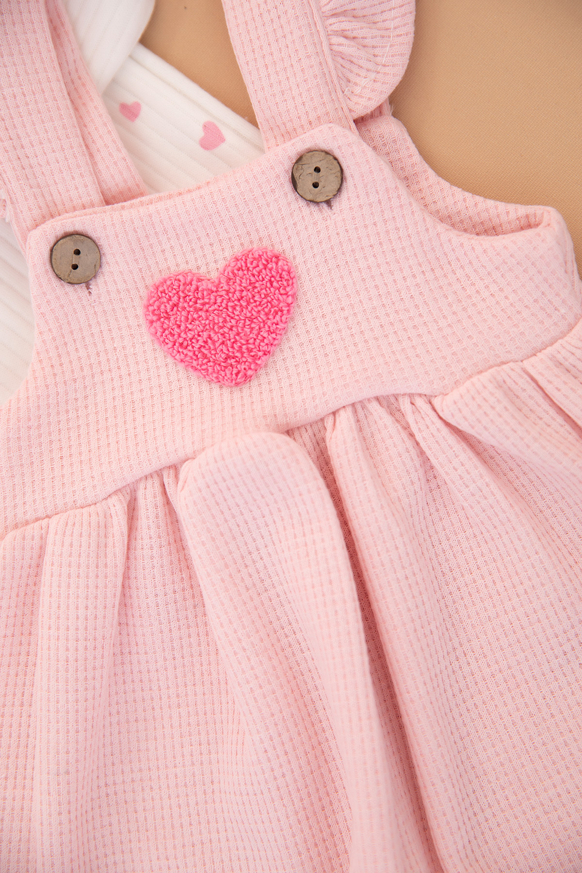 Kız Bebek Kalp Nakışlı Baskılı Badili Tulum - 1011 (6-24 Ay)
