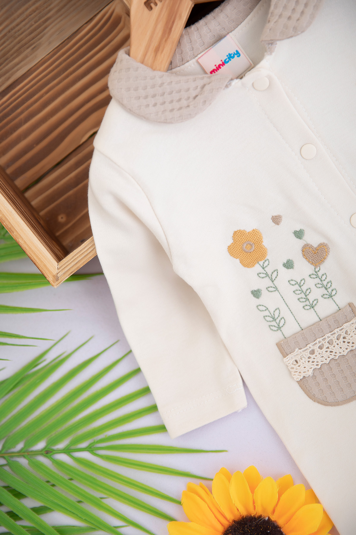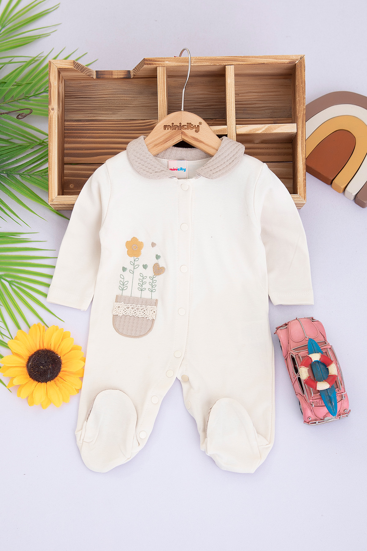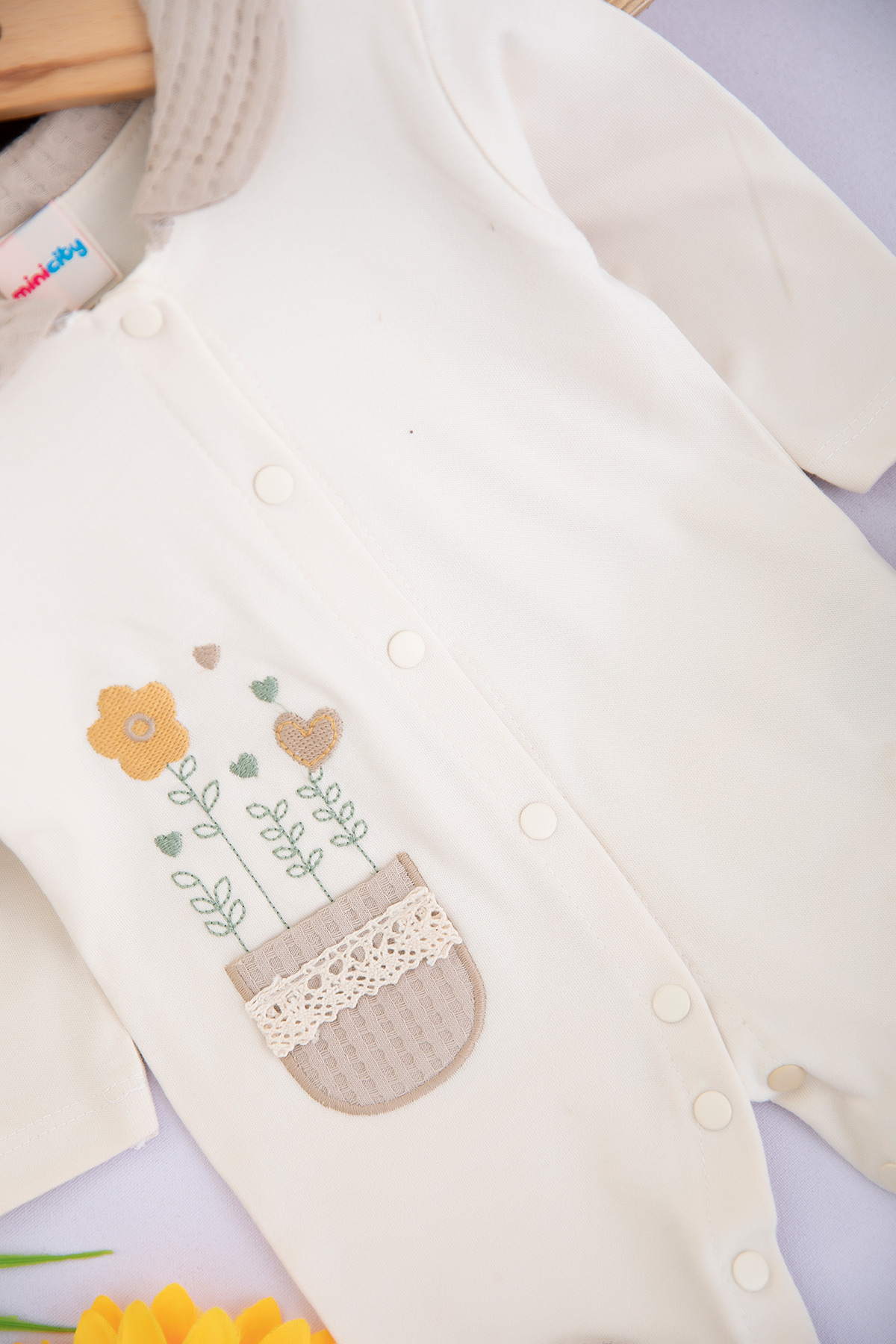 Kız Bebek Kalp Nakışlı Penye Tulum - 1009 (0-9 Ay)