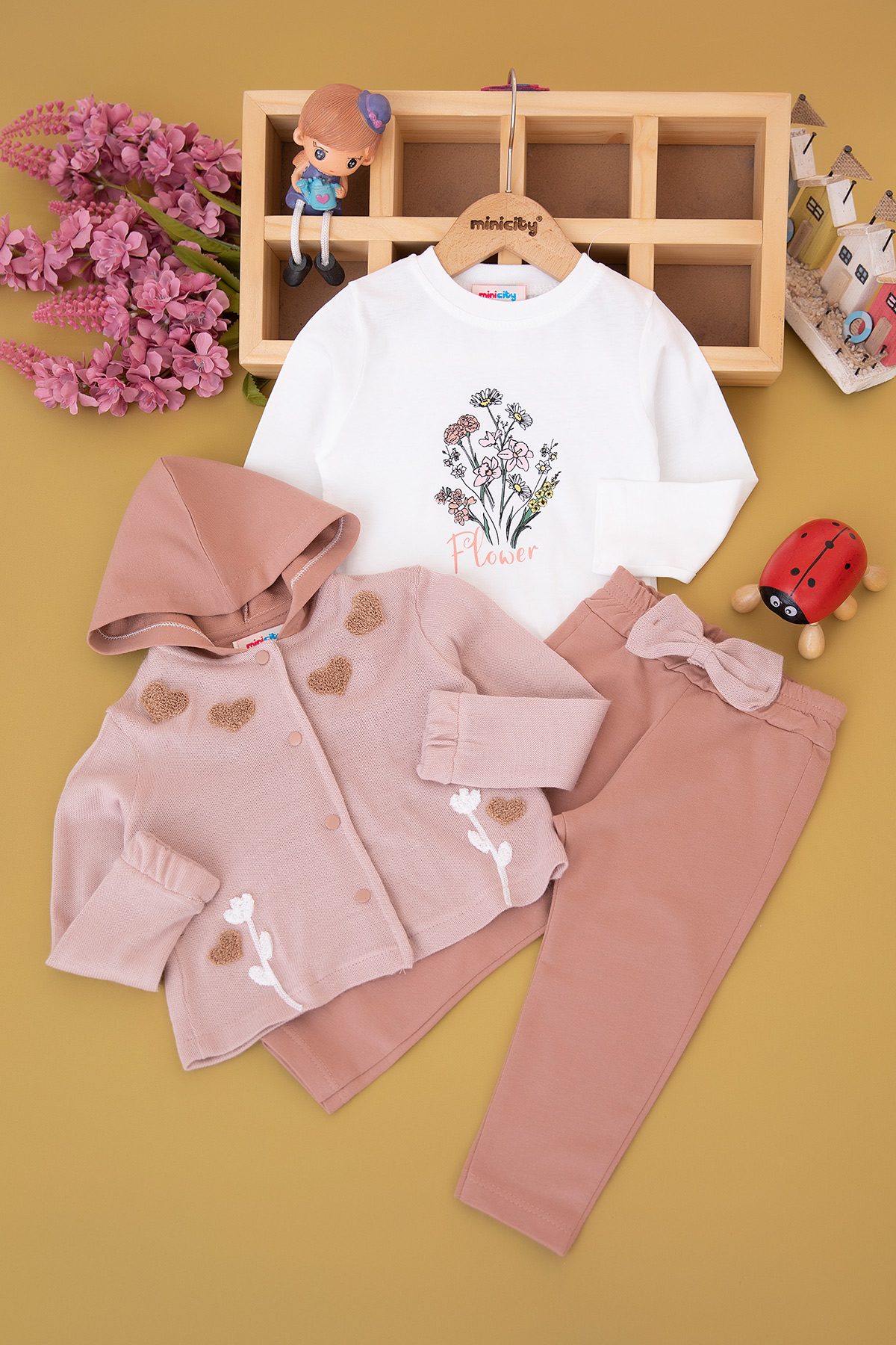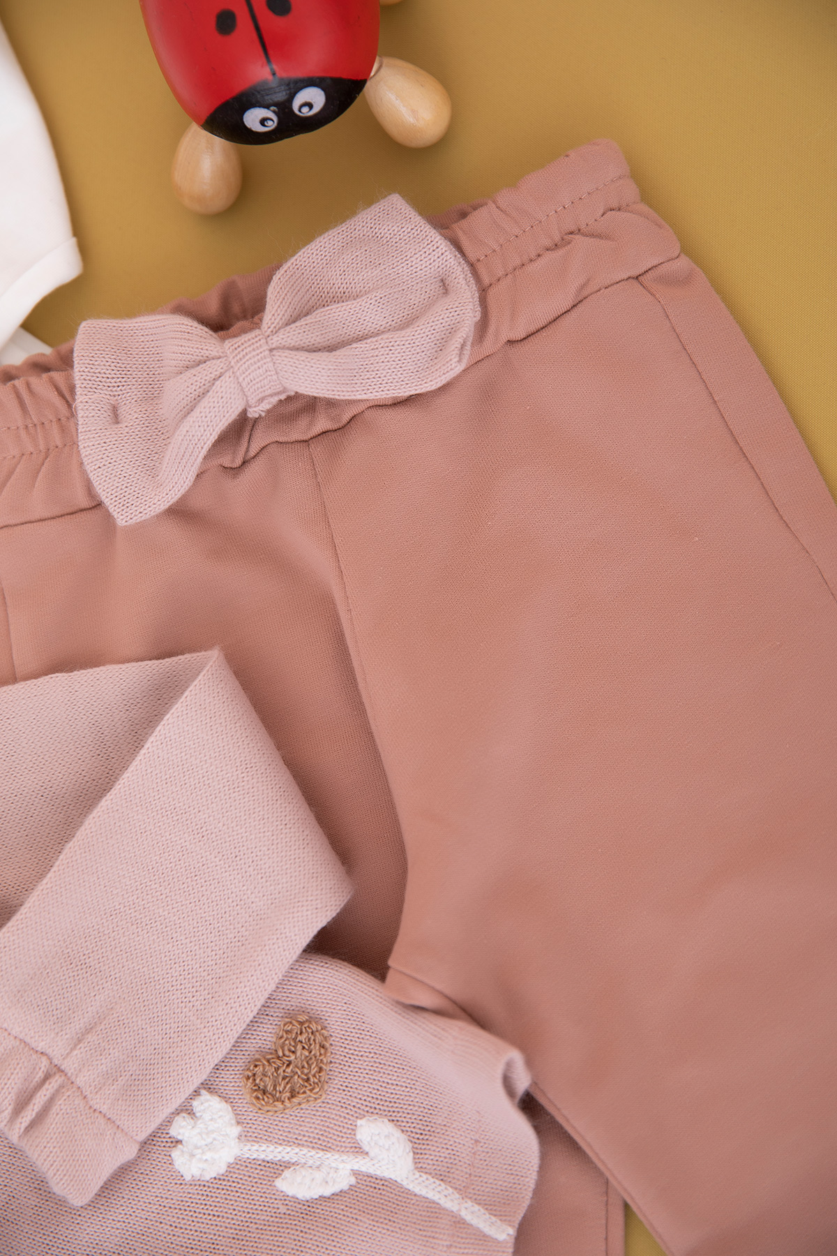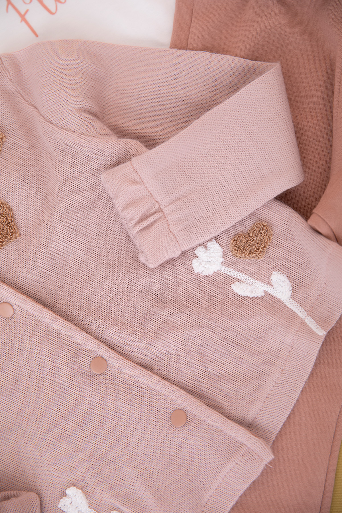 Kız Bebek Kalp Nakışlı Triko Hırkalı Takım - 90032 (6-24 Ay)