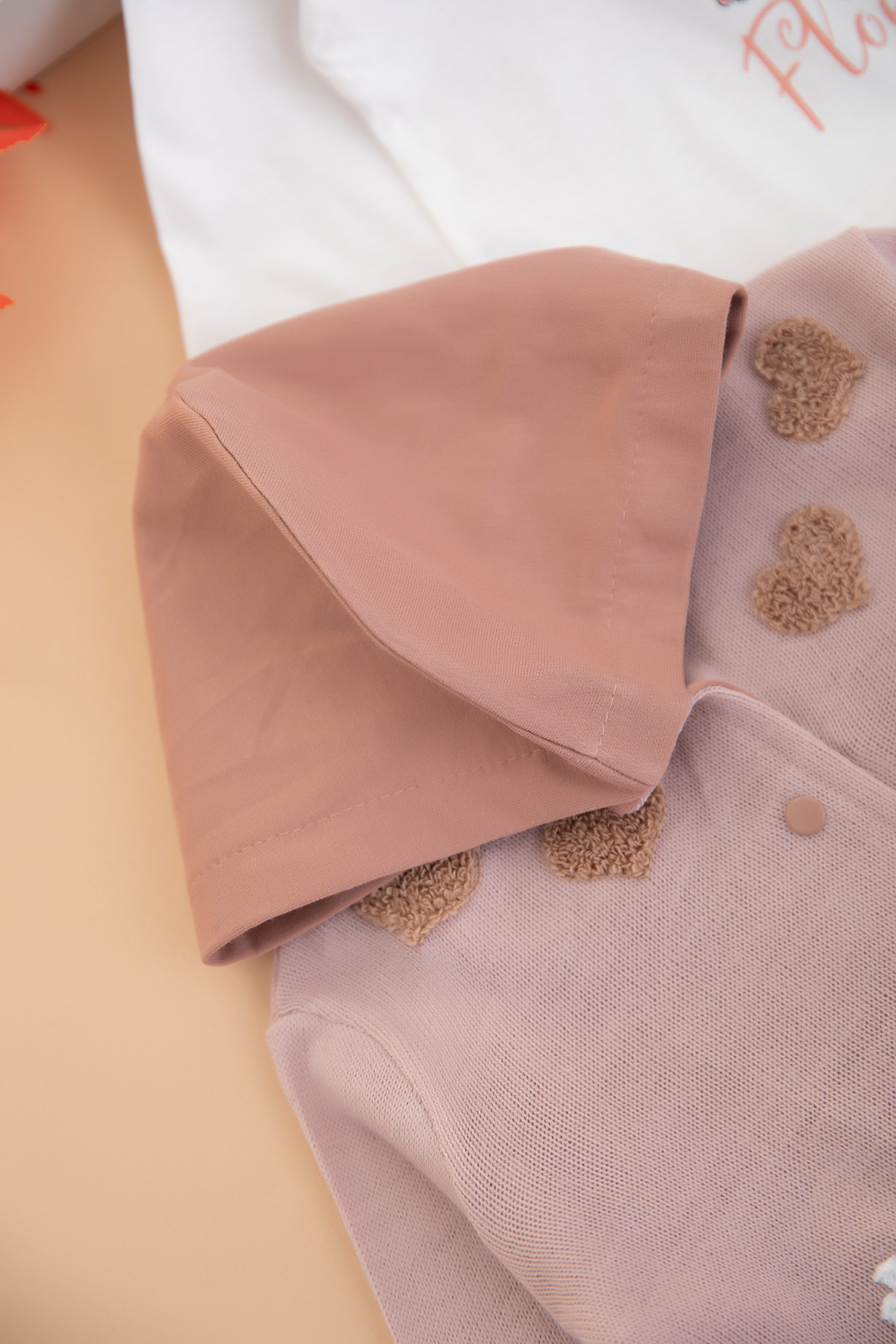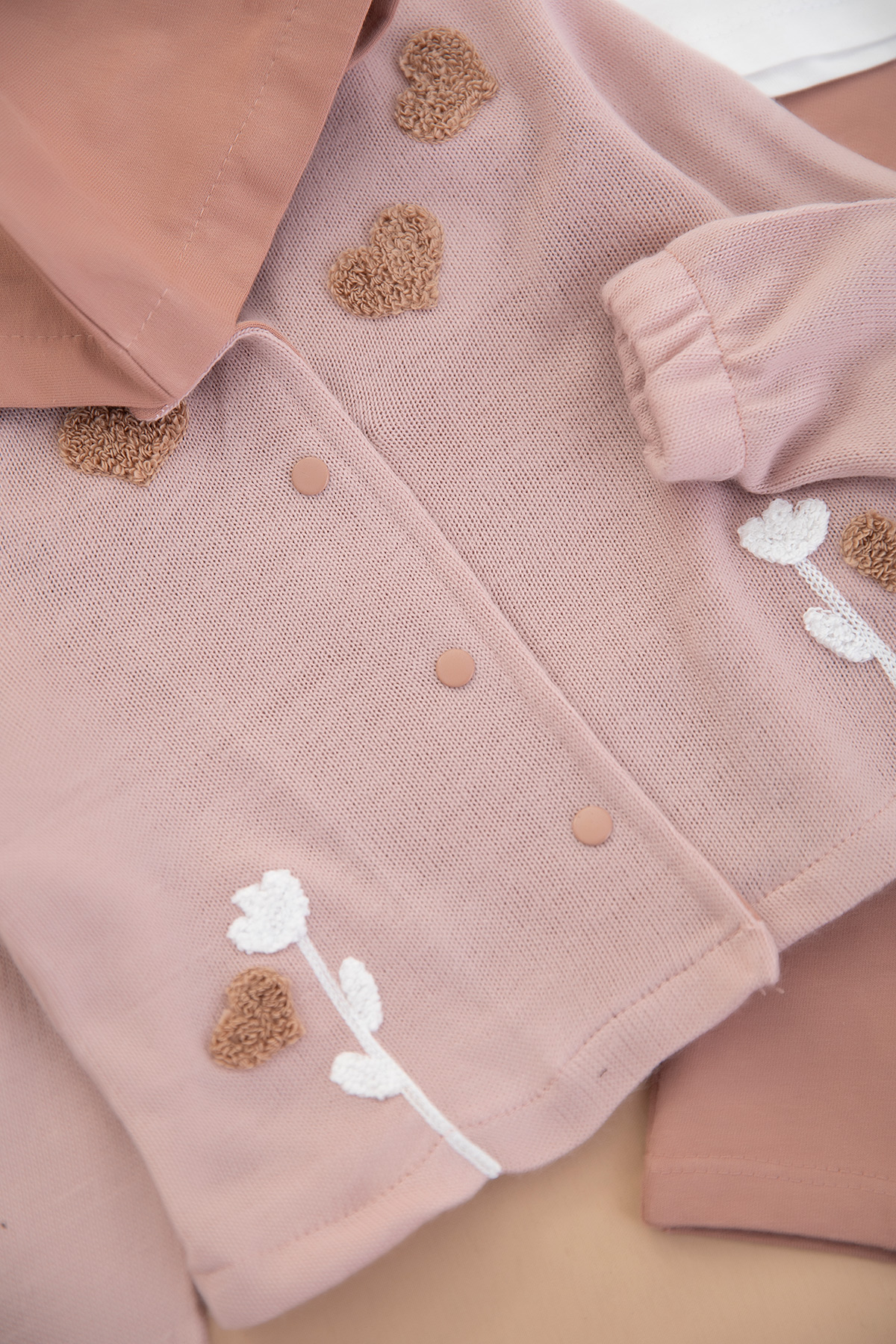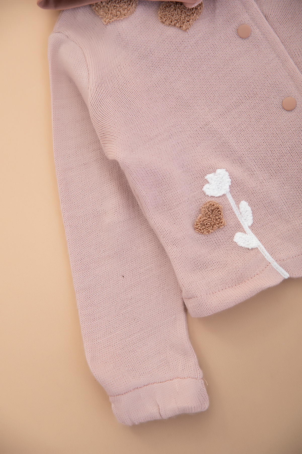 Kız Bebek Kalp Nakışlı Triko Hırkalı Takım - 90032 (6-24 Ay)