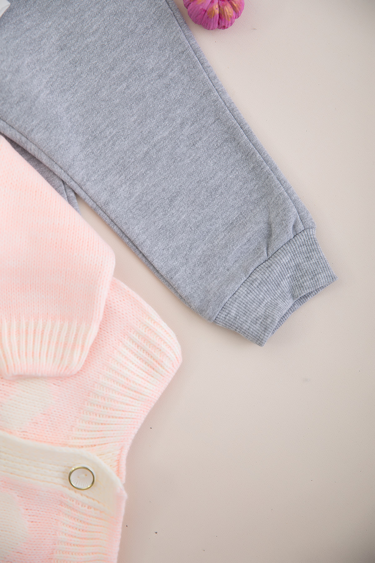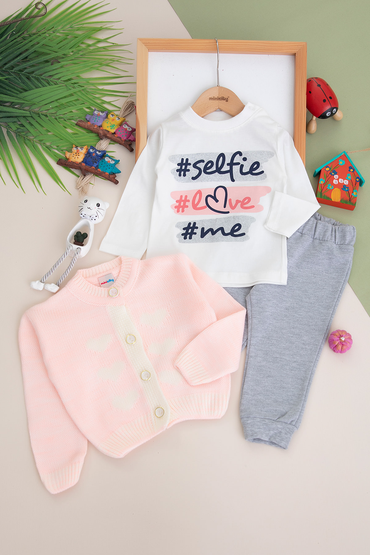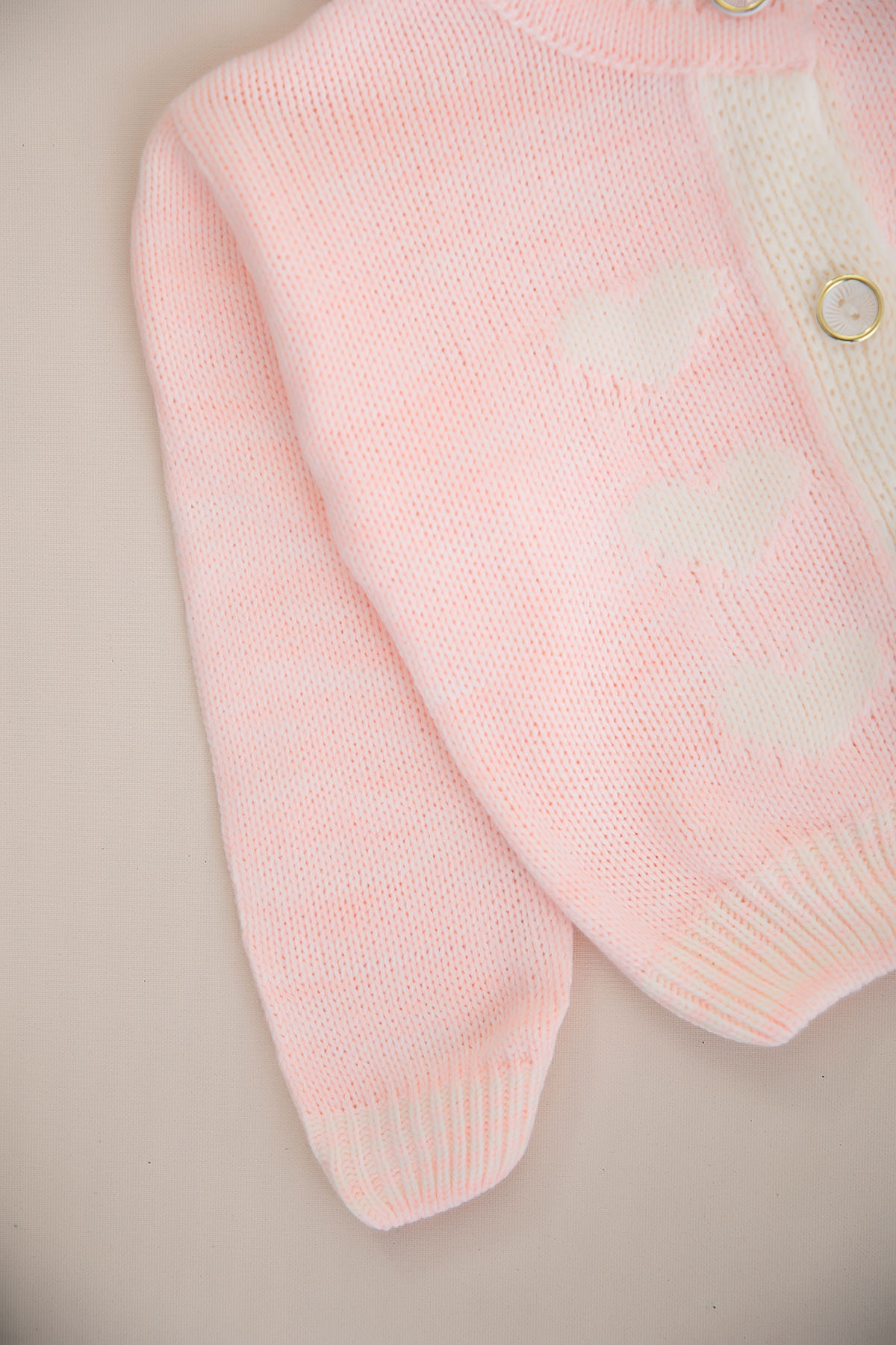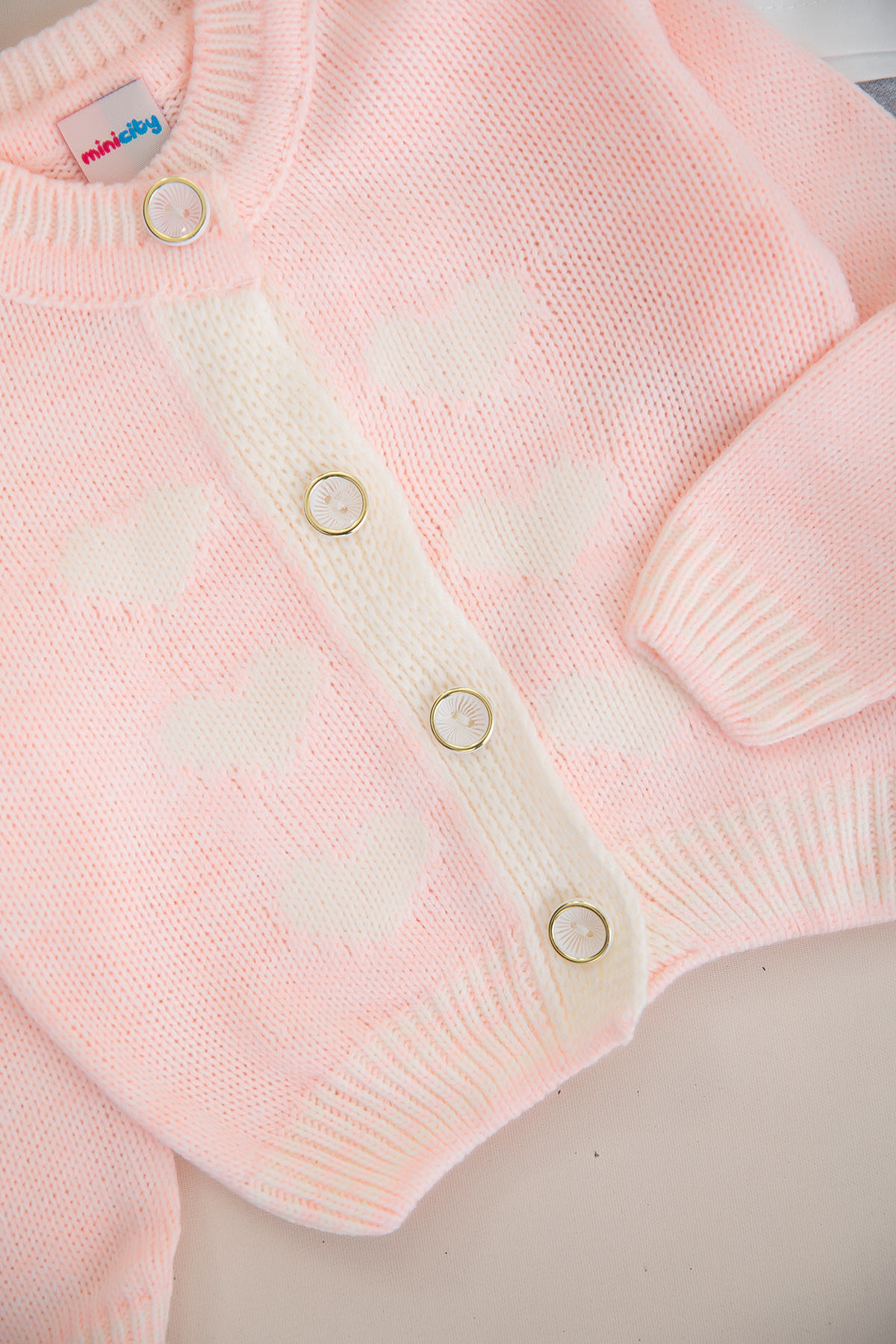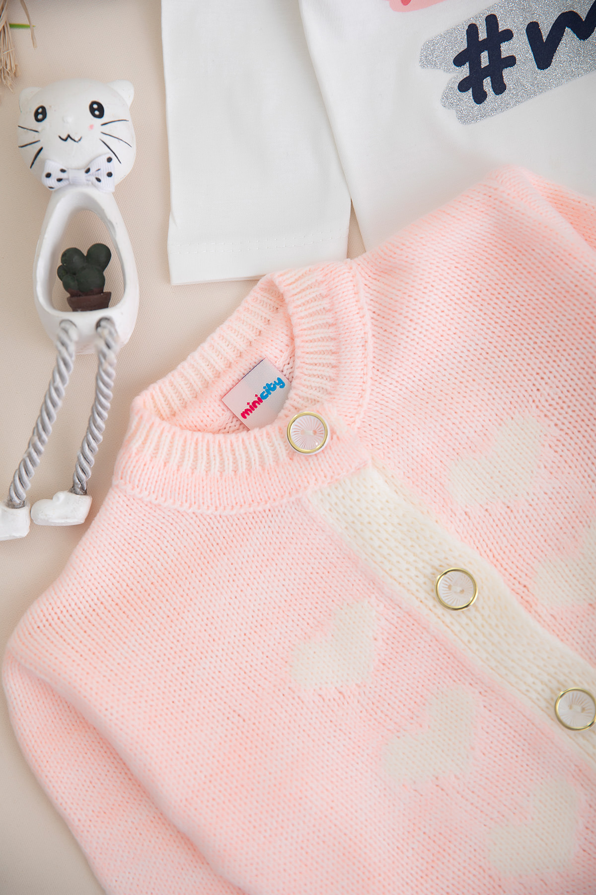 Kız Bebek Kalp Örmeli Triko Üçlü Takım - 13789 (6-24 Ay)