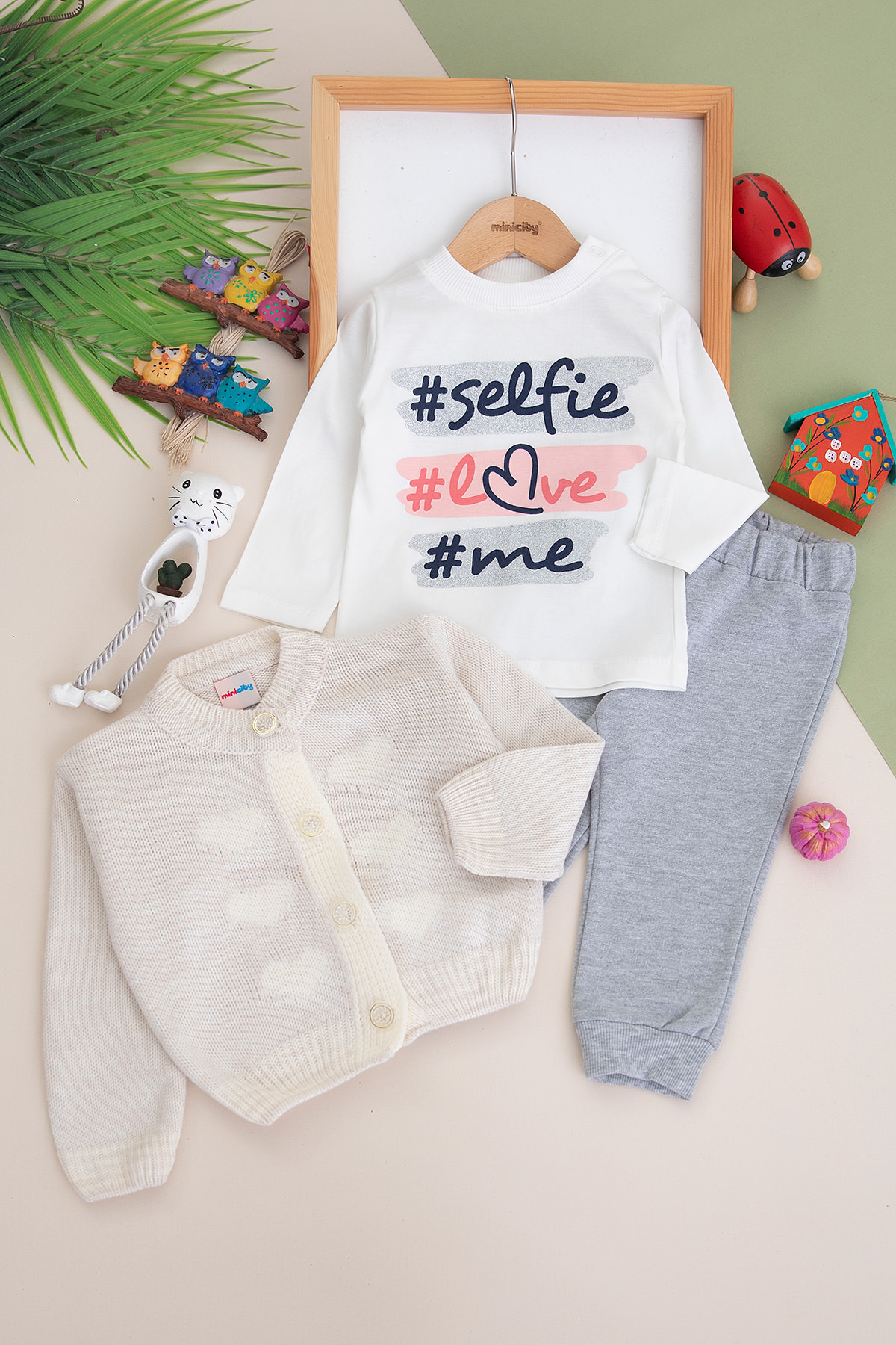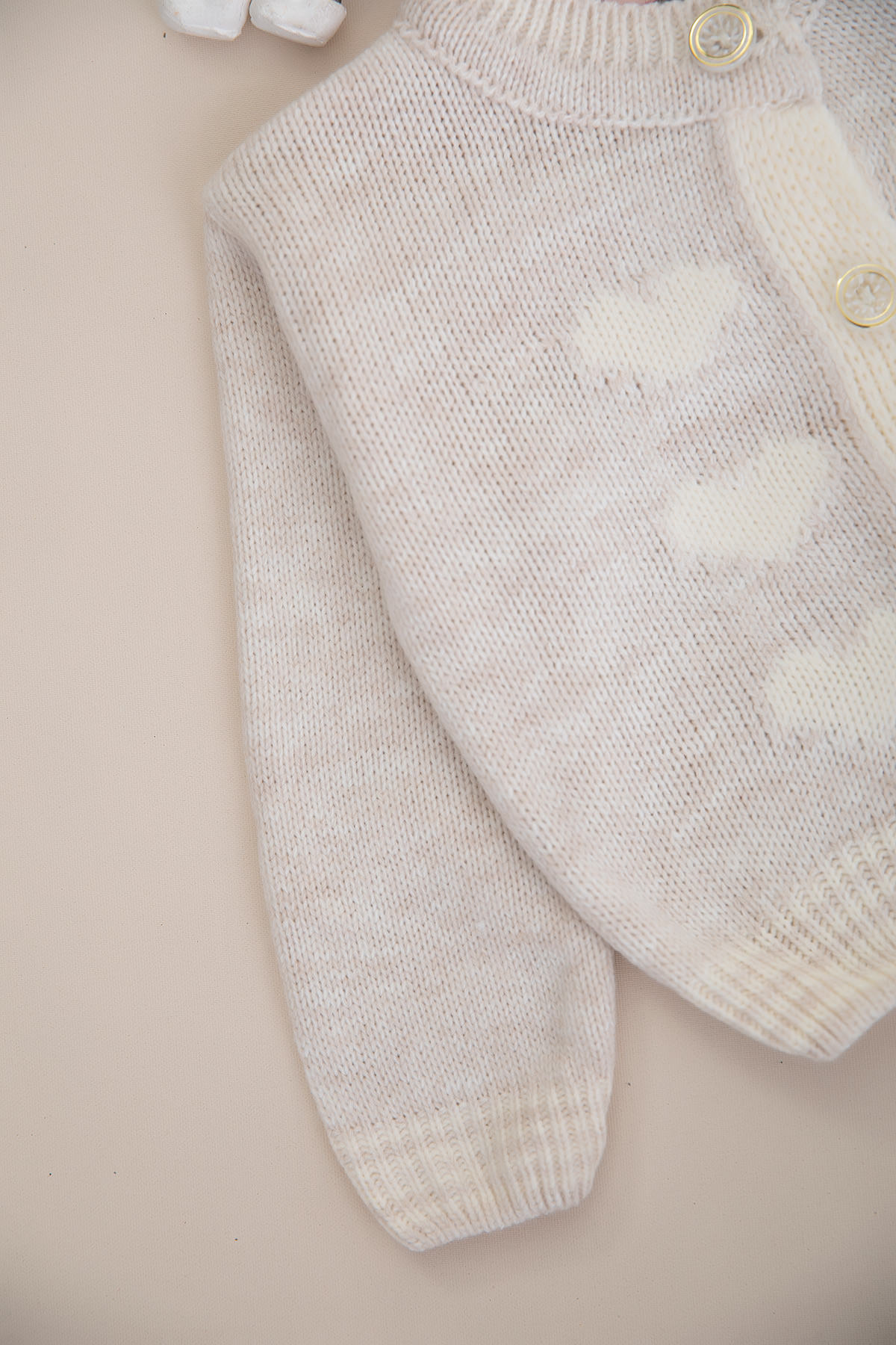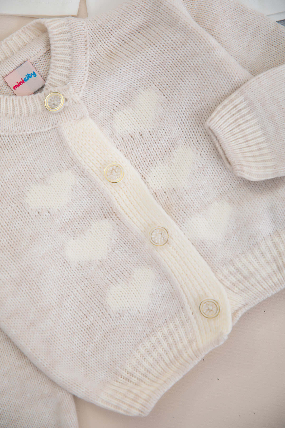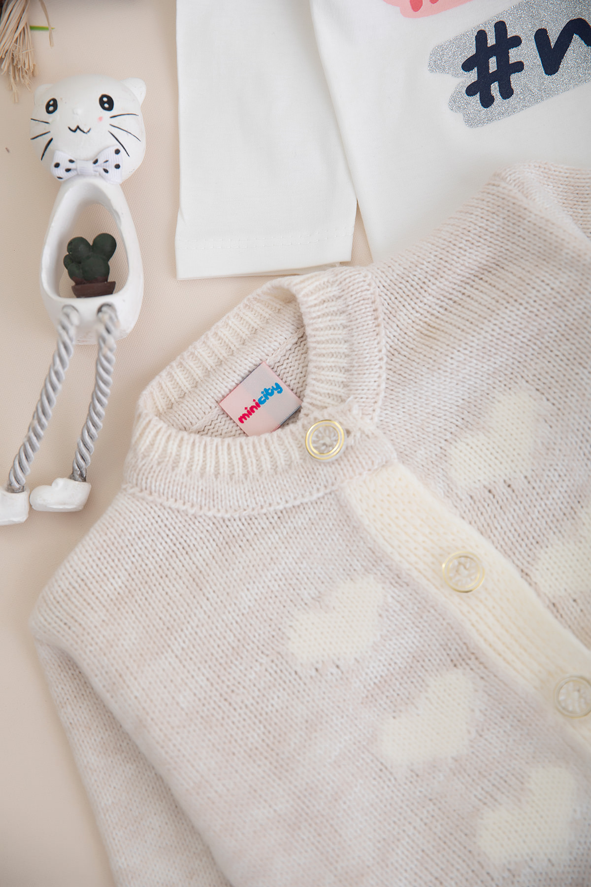 Kız Bebek Kalp Örmeli Triko Üçlü Takım - 13789 (6-24 Ay)