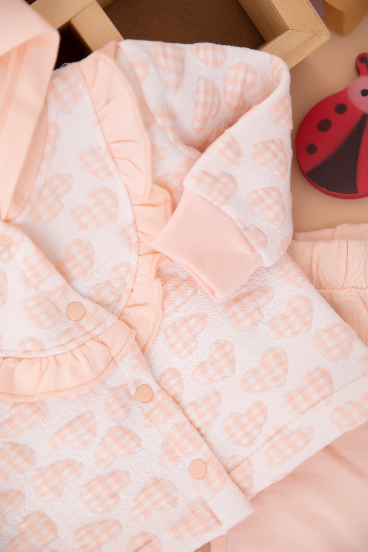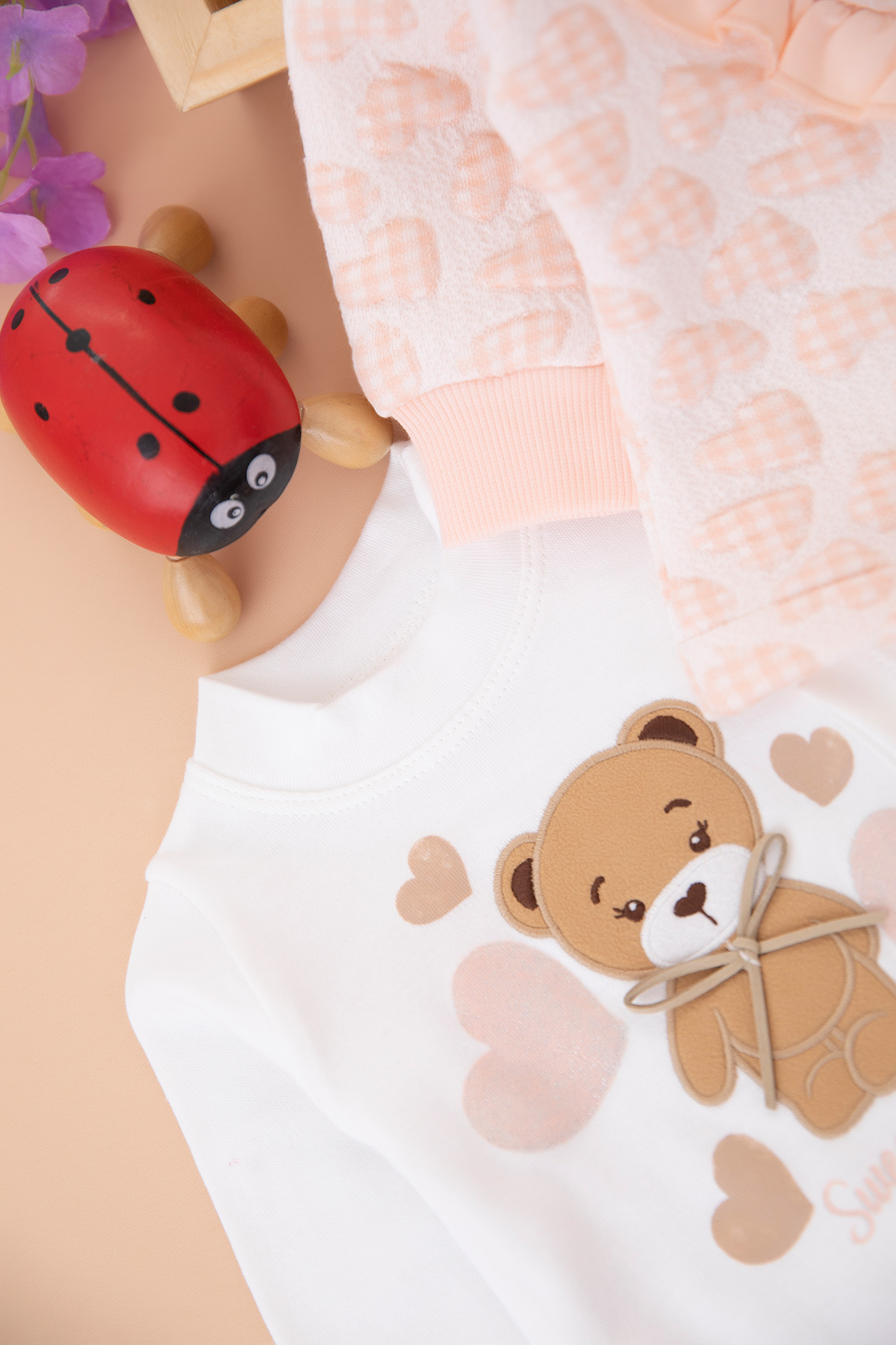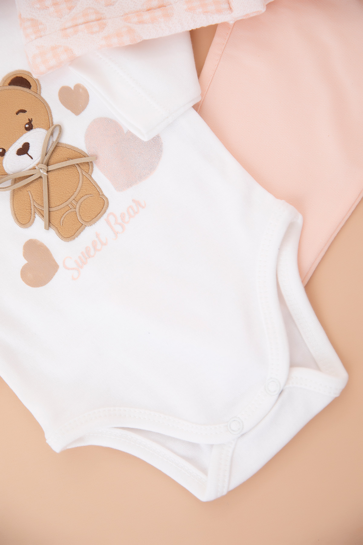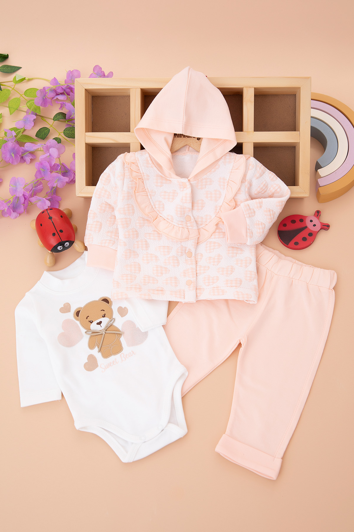 Kız Bebek Kalpli Ayı Üçlü Takım - 7037 (3-12 Ay)
