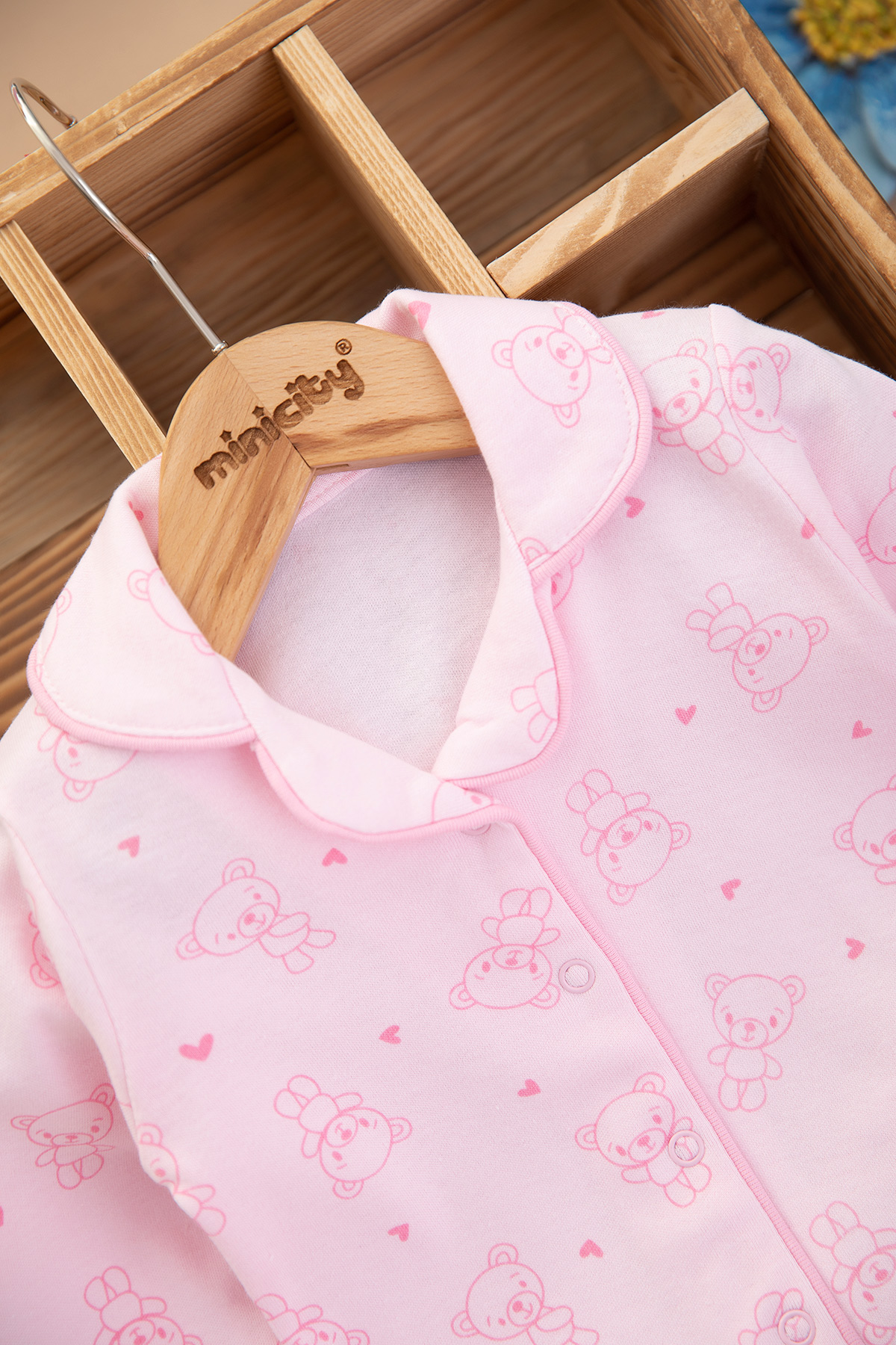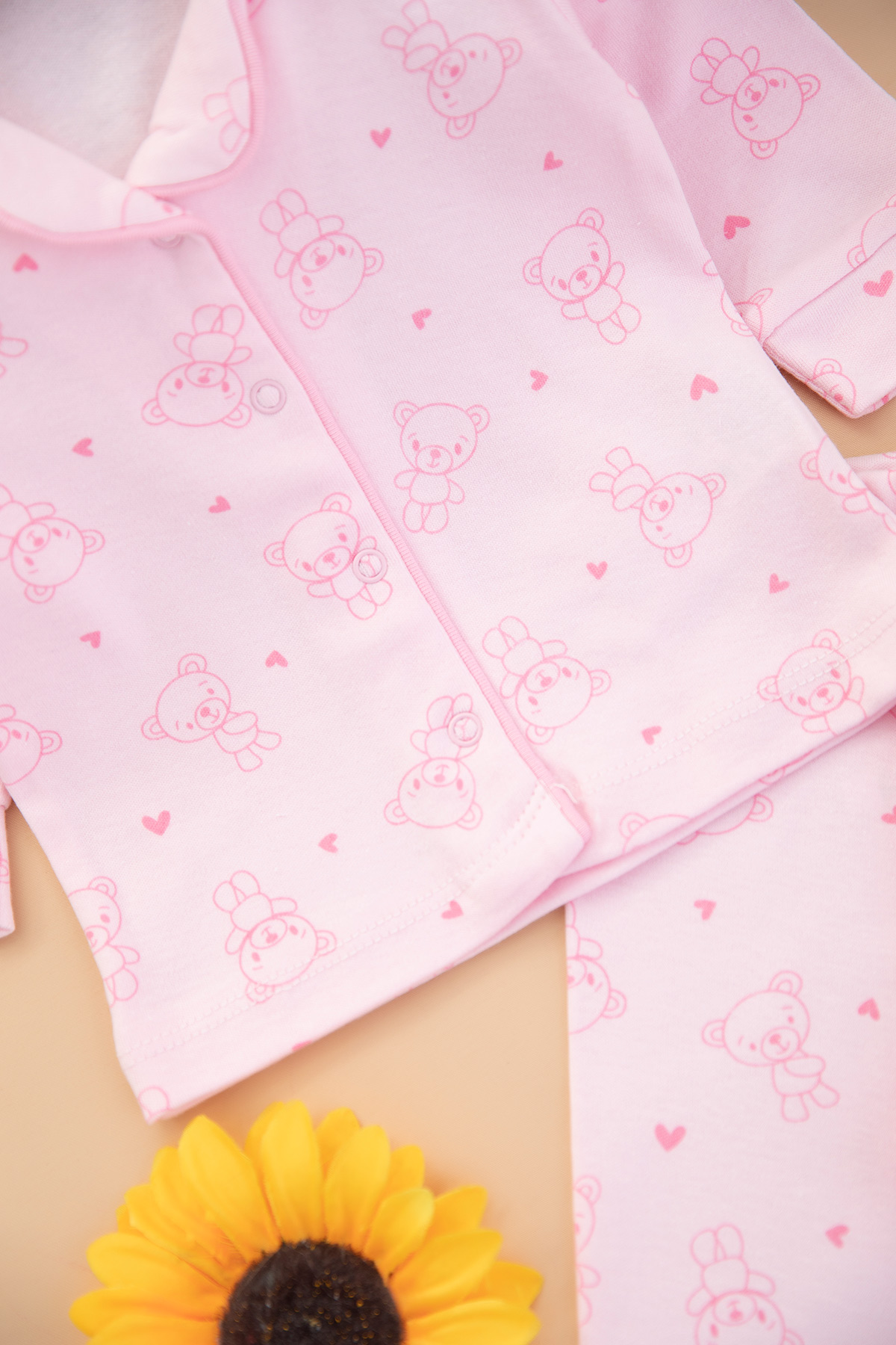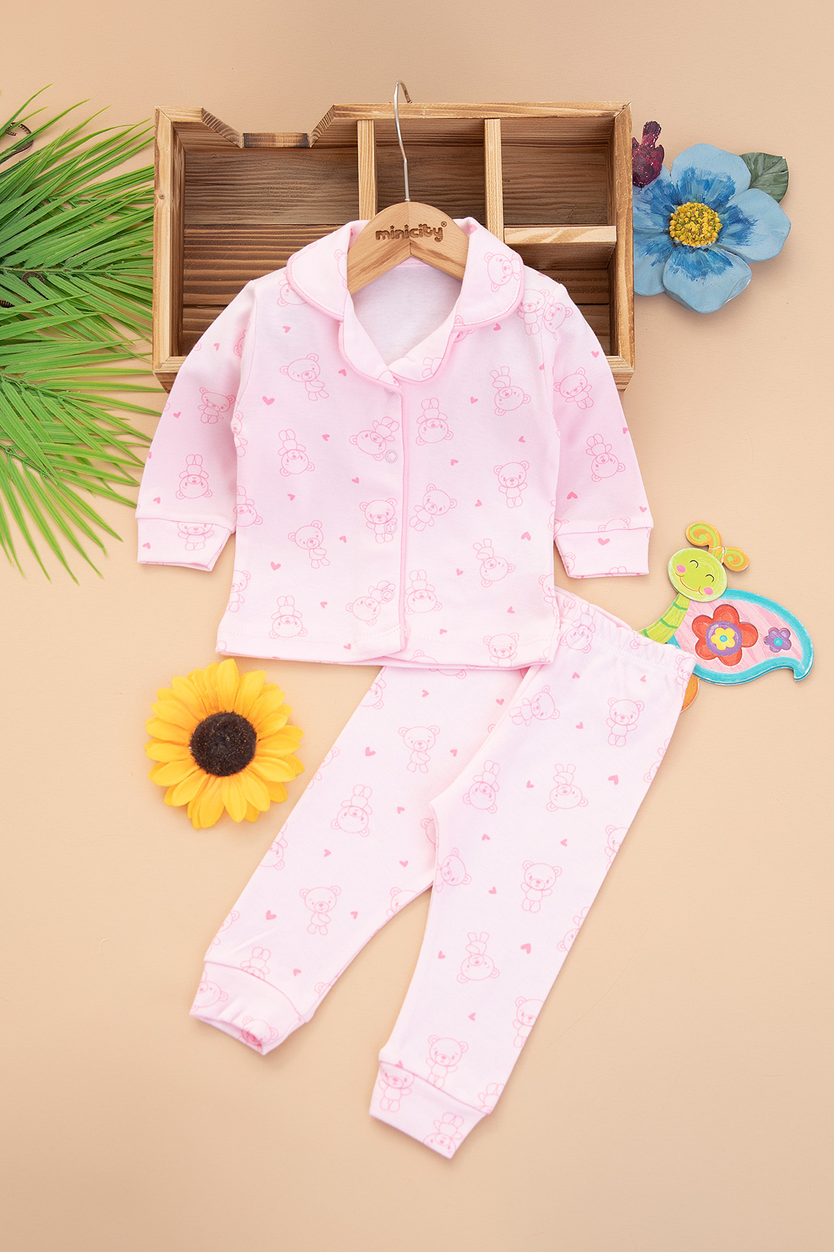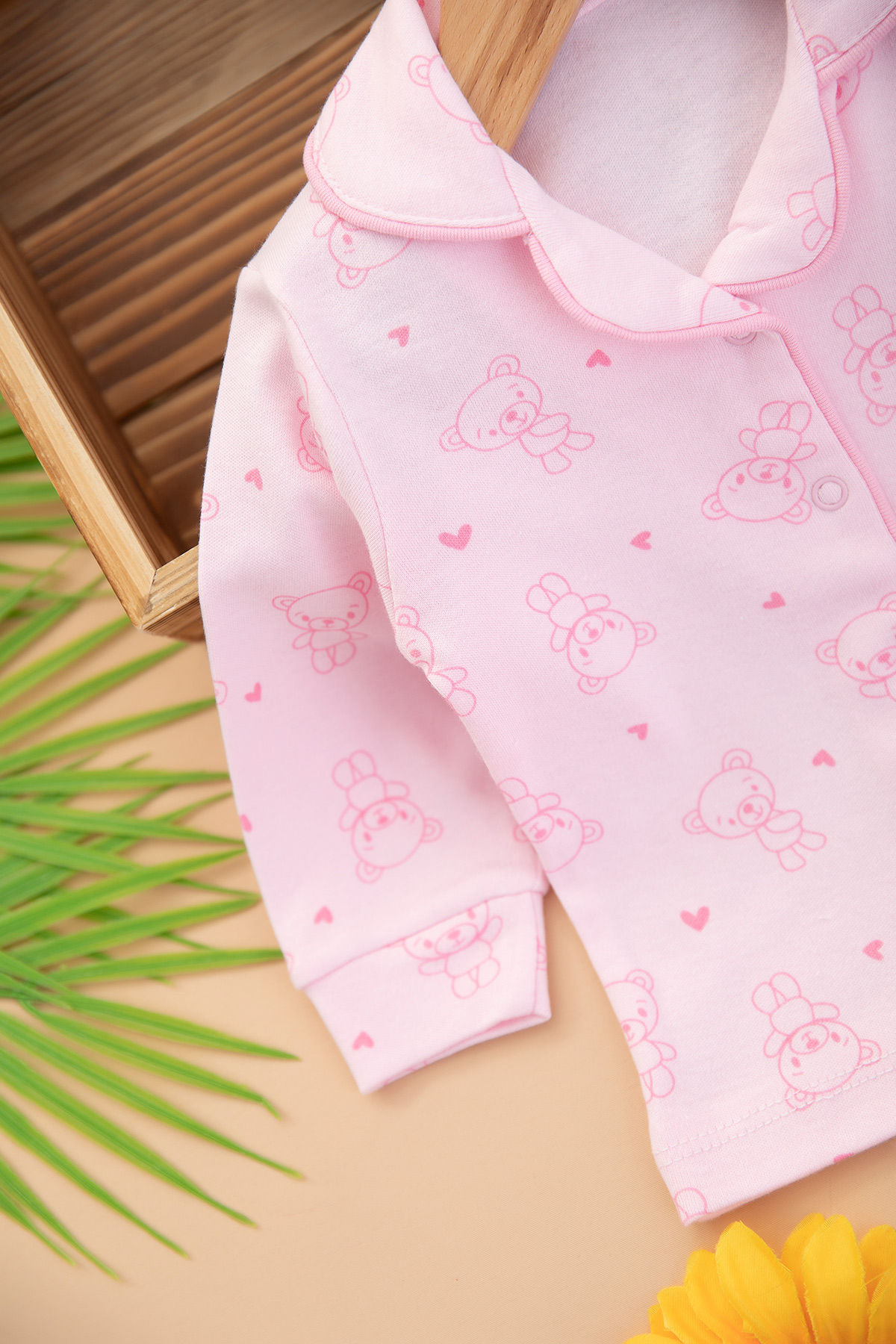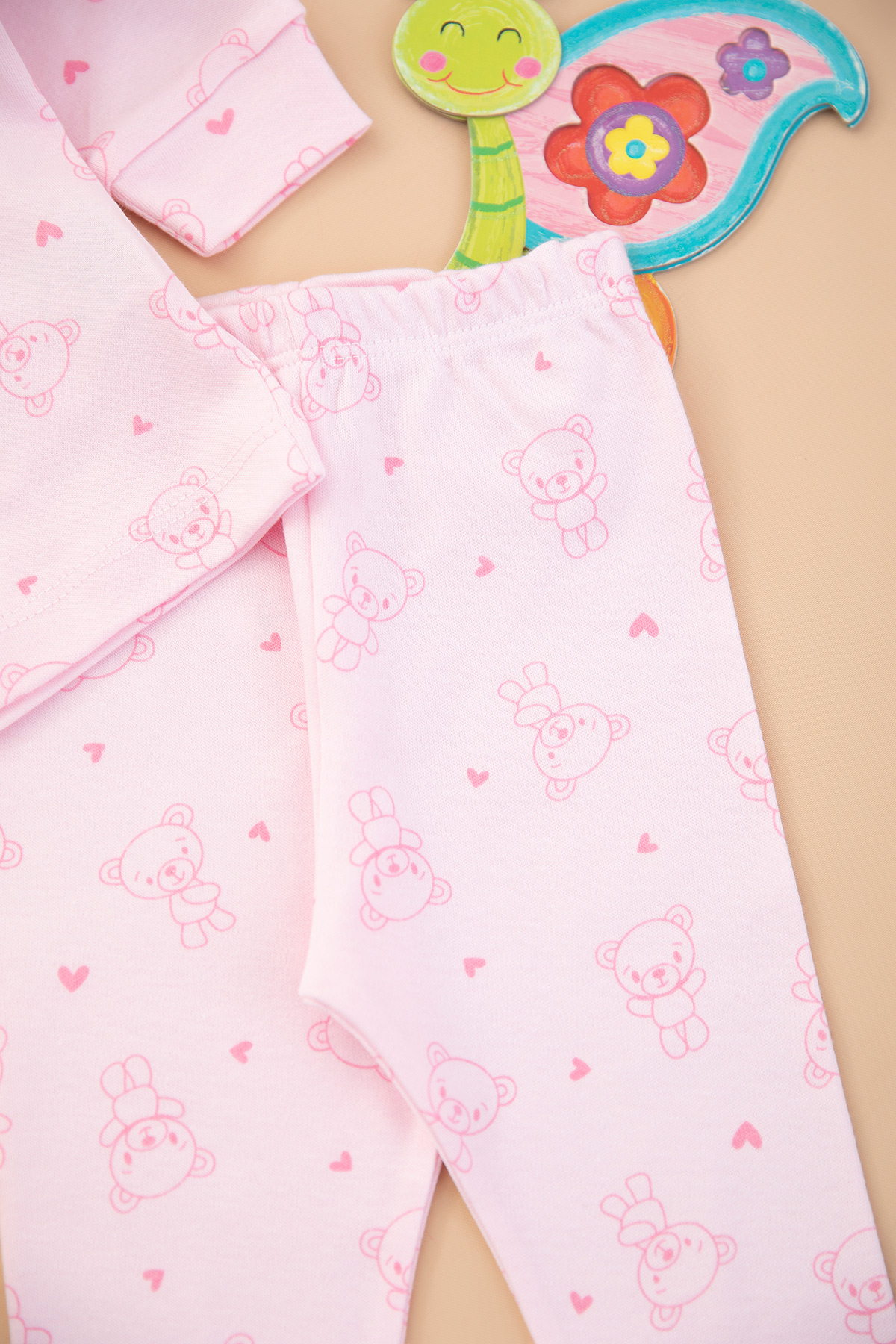 Kız Bebek Kalpli Ayıcık Pijama Takımı - 2426 (3-12 Ay)