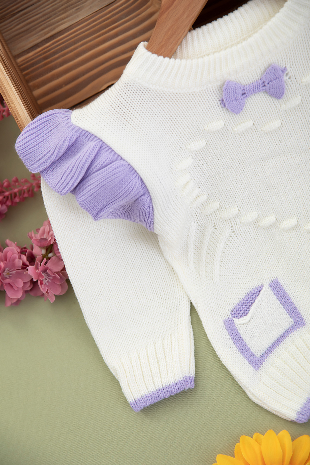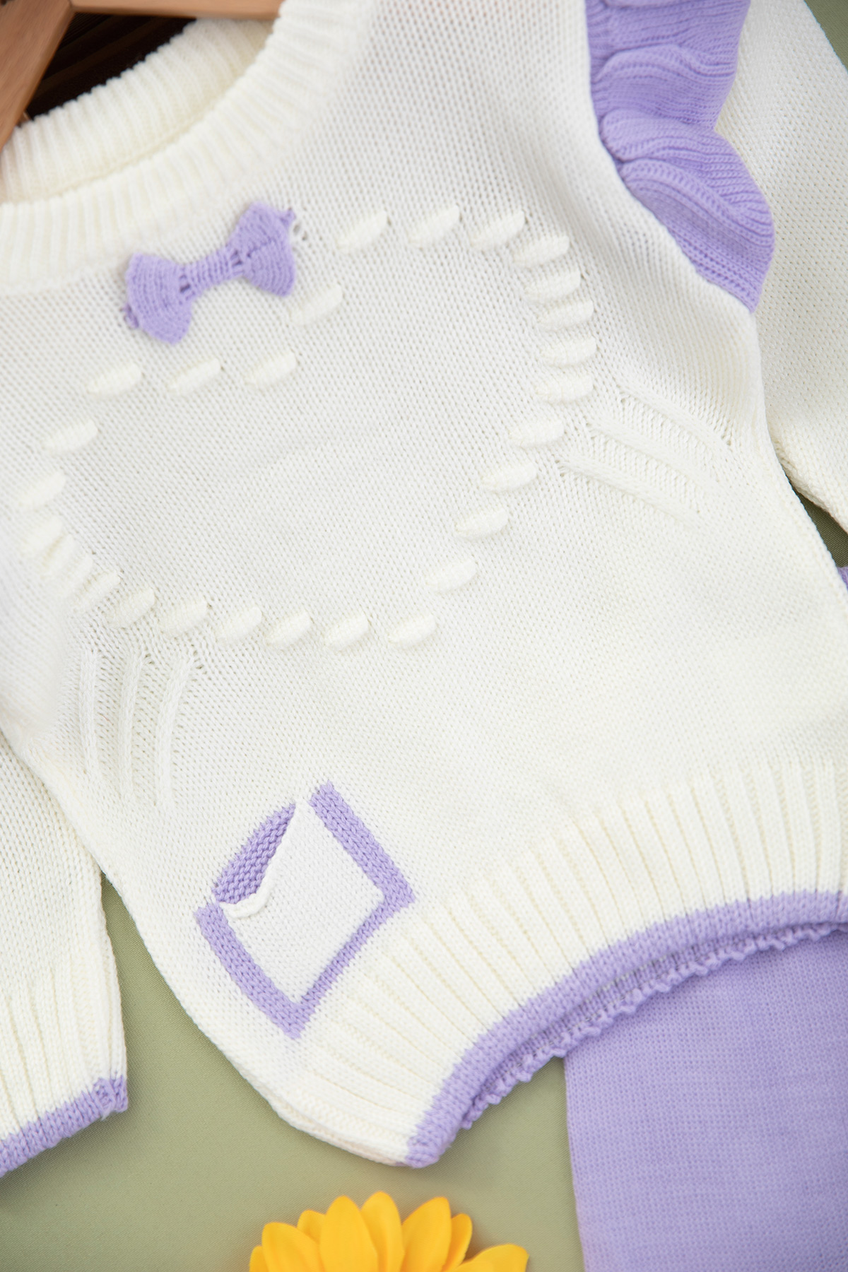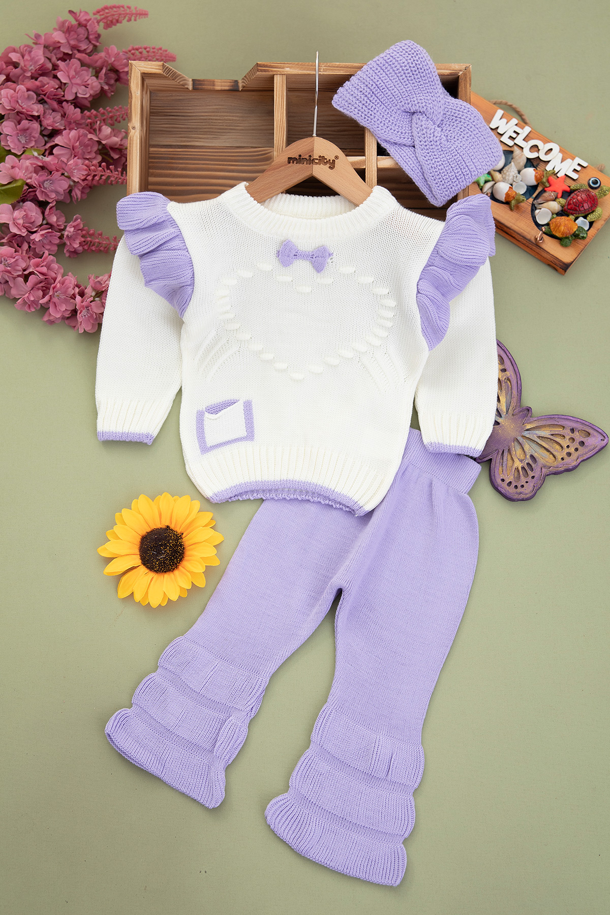 Kız Bebek Kalpli Triko Üçlü Takım - 6416 (3-12 Ay)