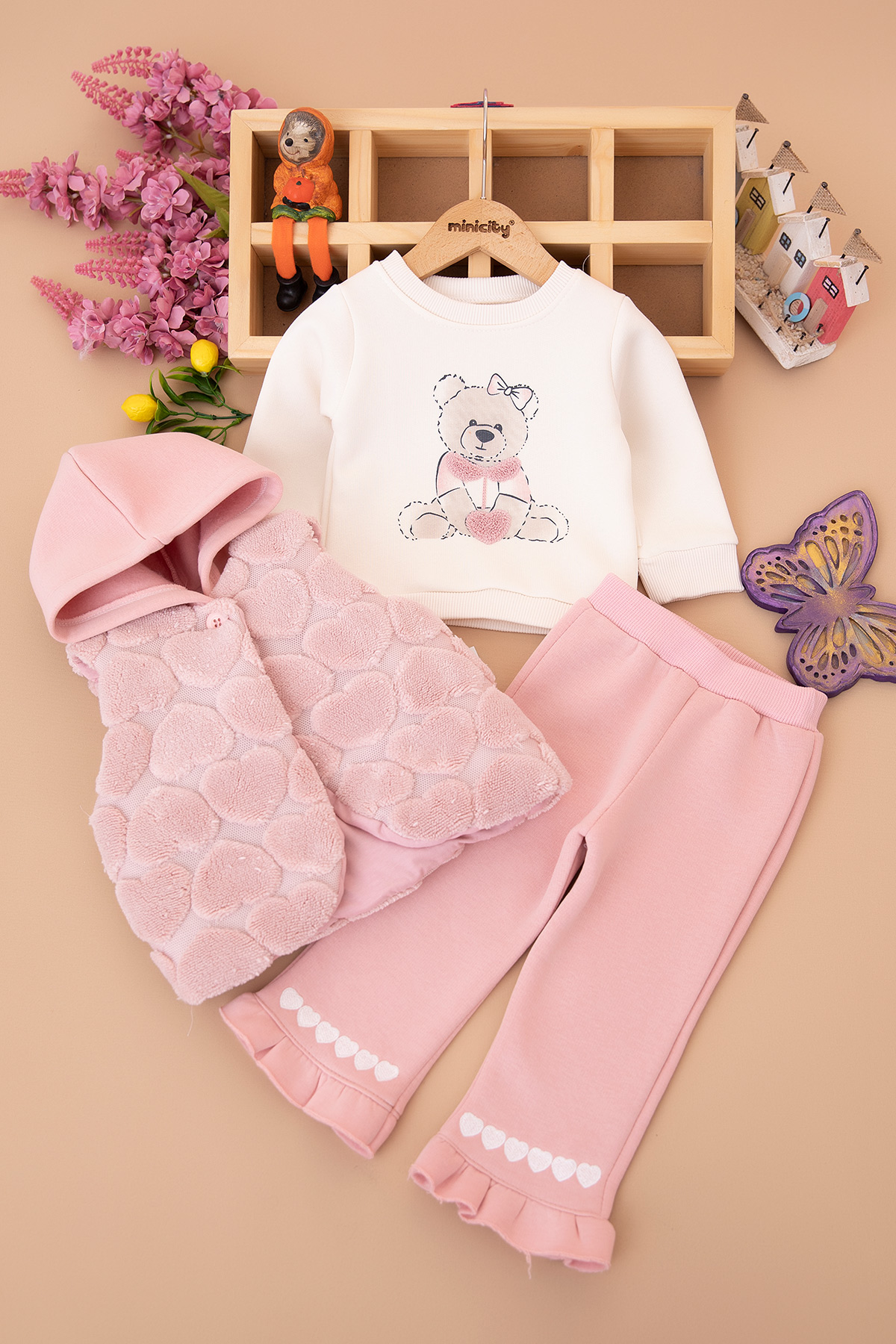 Kız Bebek Kalpli Yelekli Takım - 2606 (9-18 Ay)