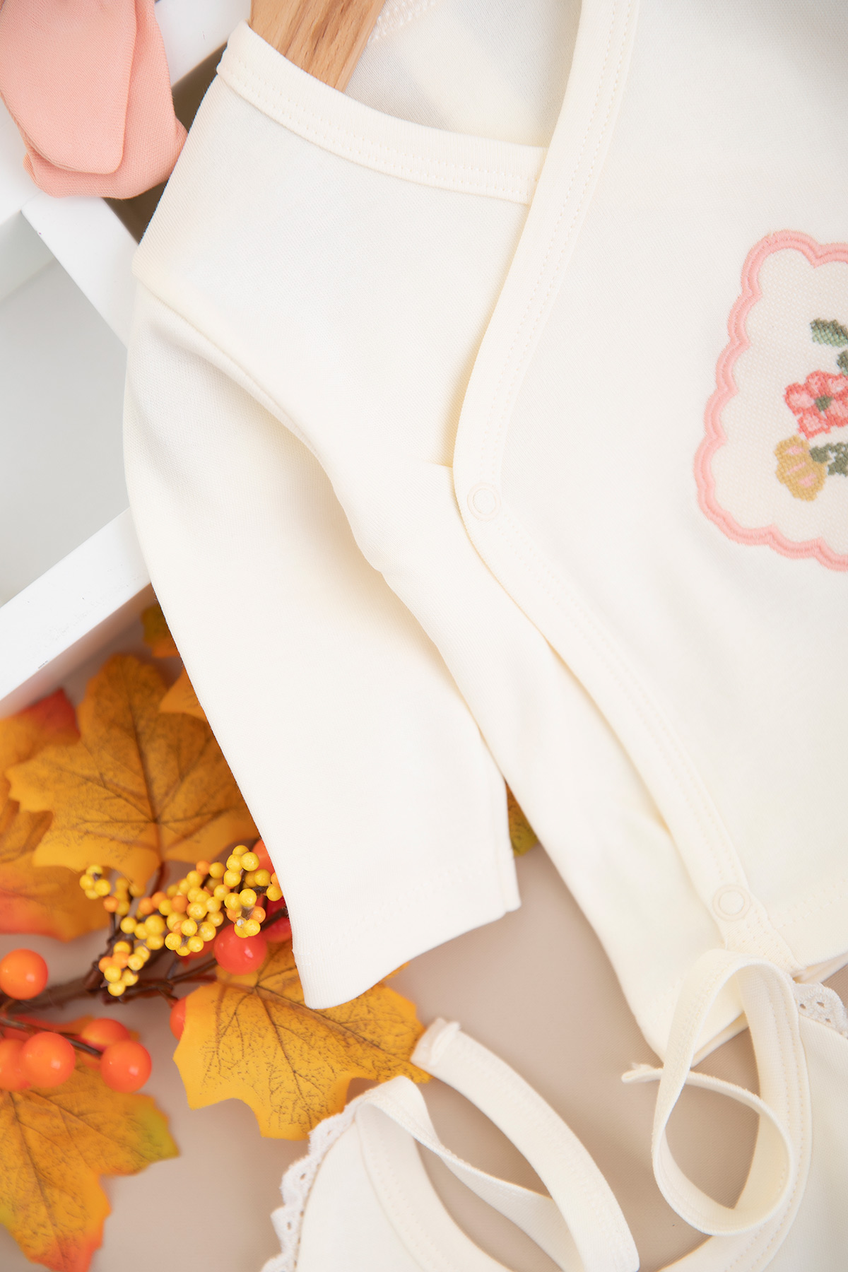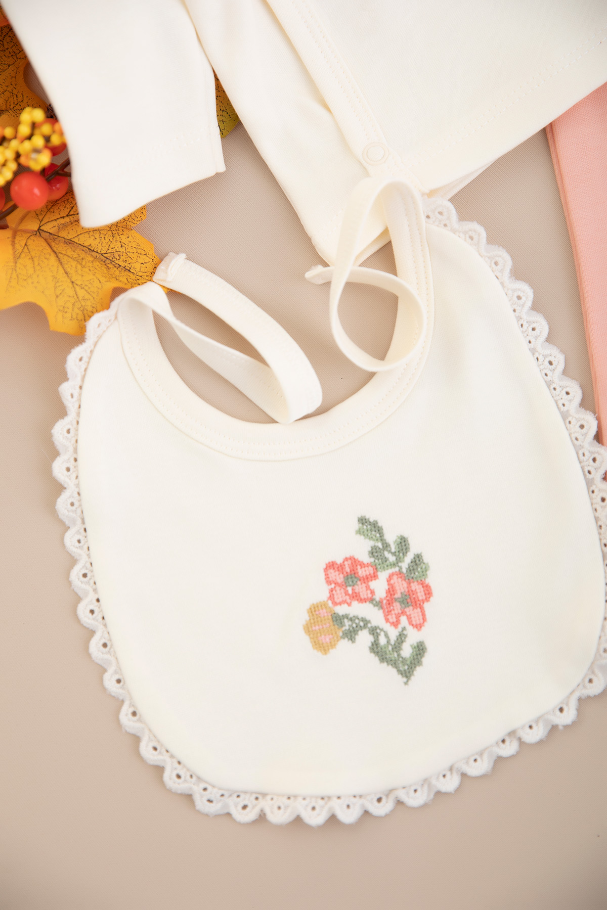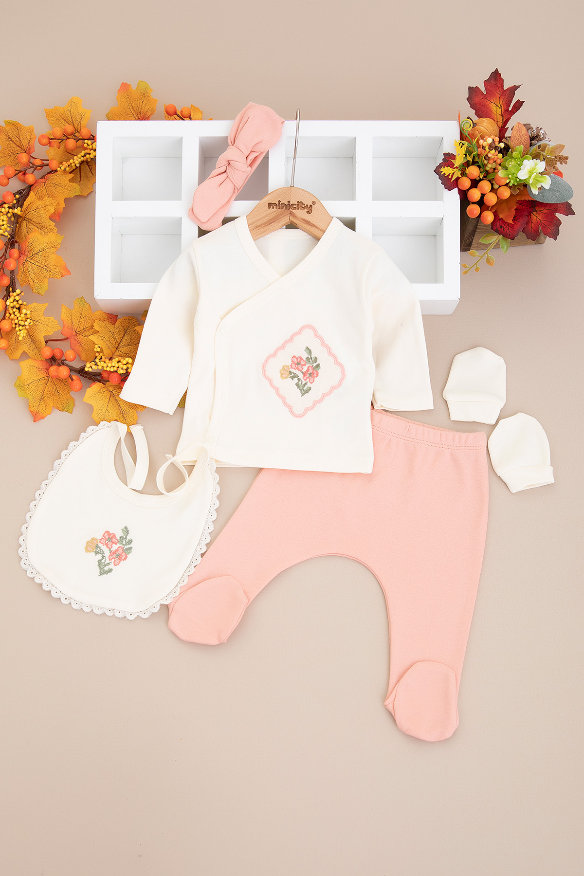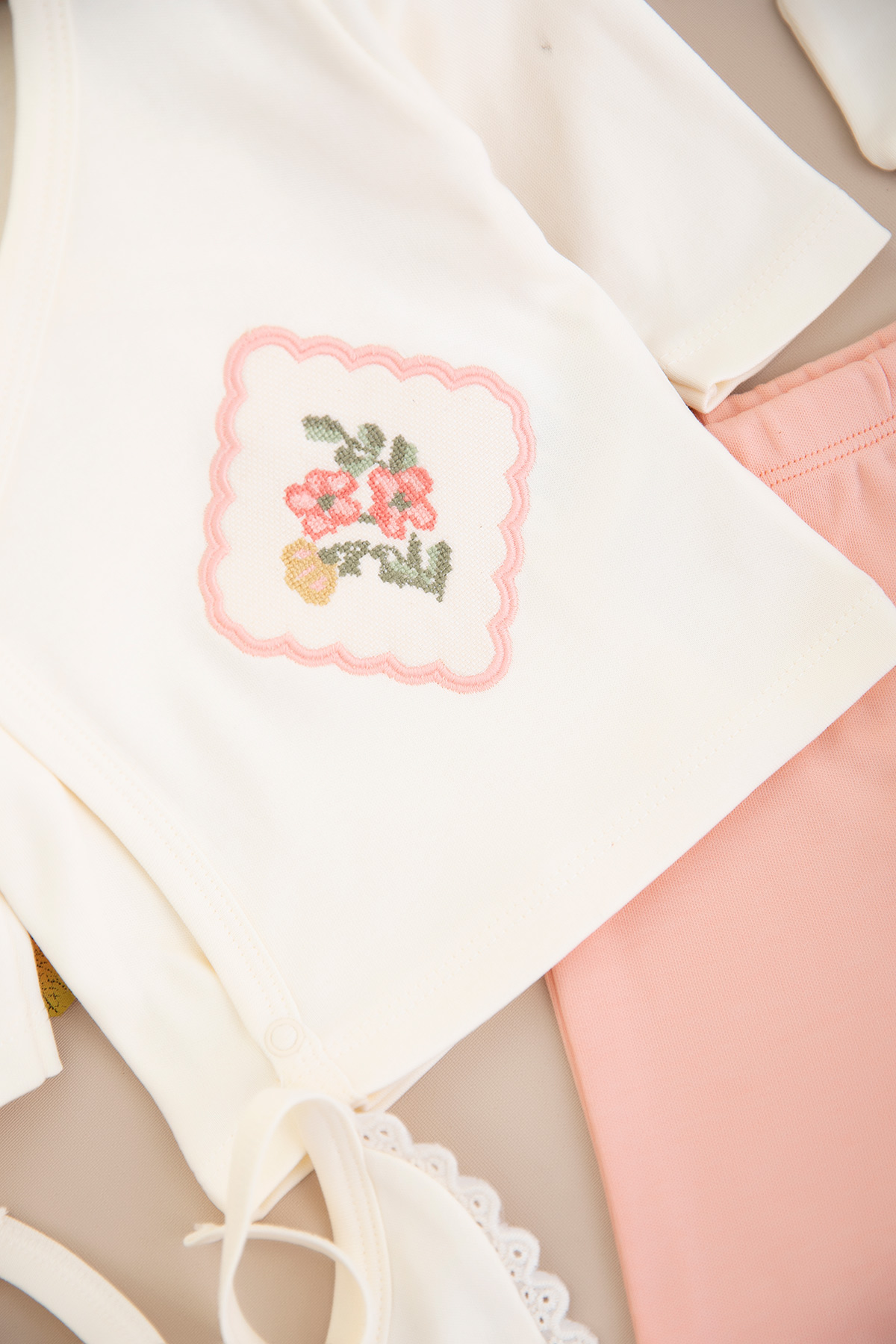 Kız Bebek Kanaviçe Güllü 5`Li Zıbın Seti - 52875 (0-3 Ay)