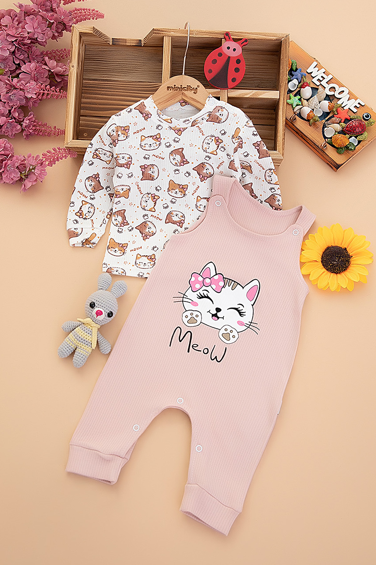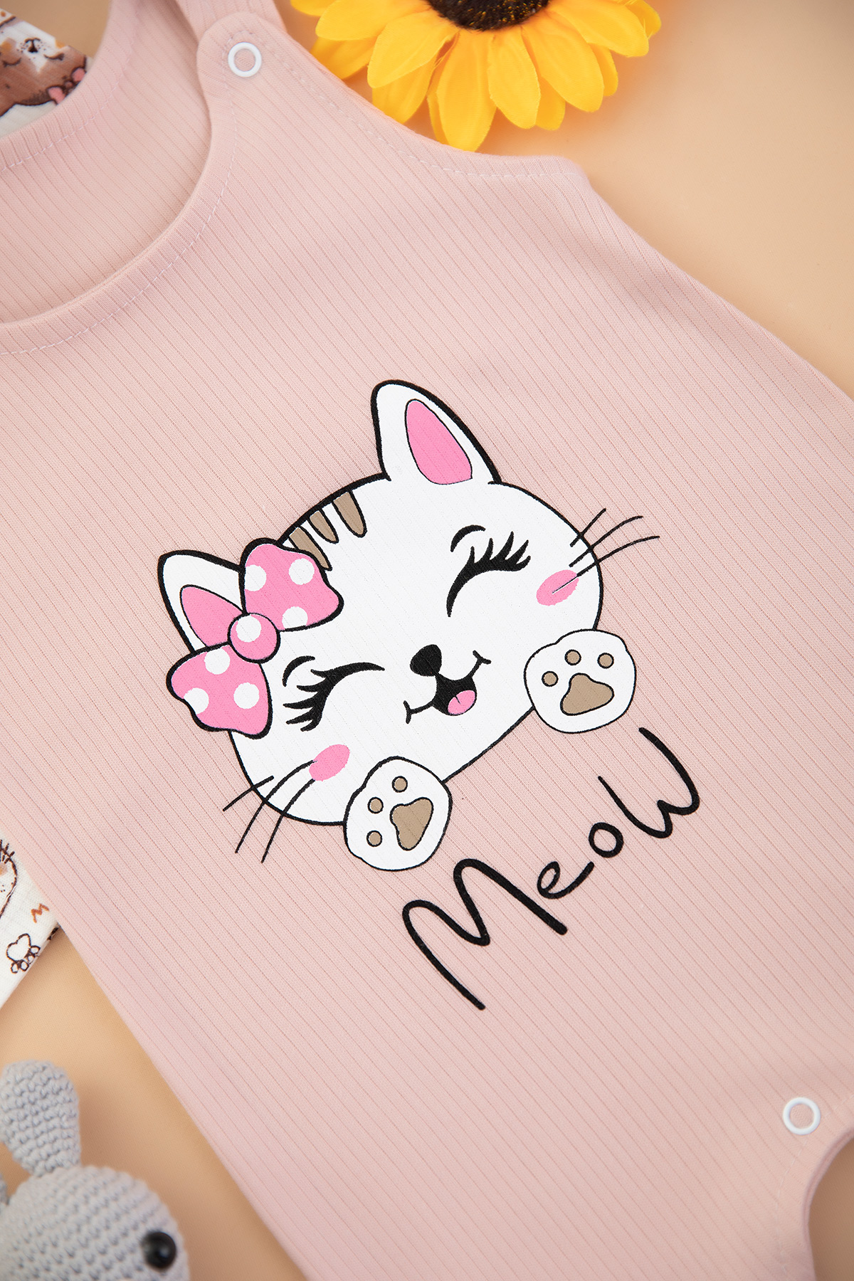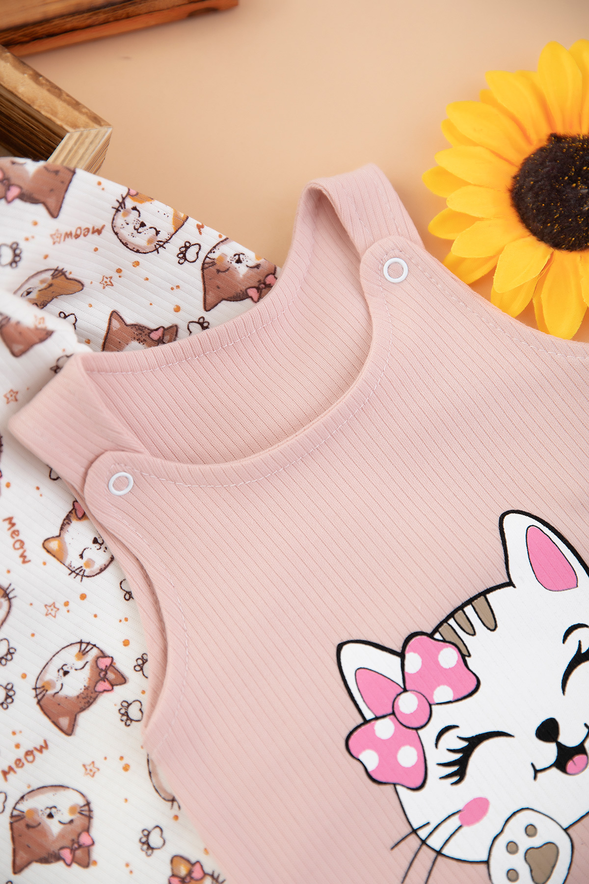 Kız Bebek Kedi Baskılı Badili Bahçıvan - 1160 (0-9 Ay)