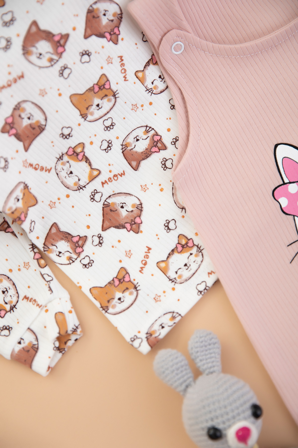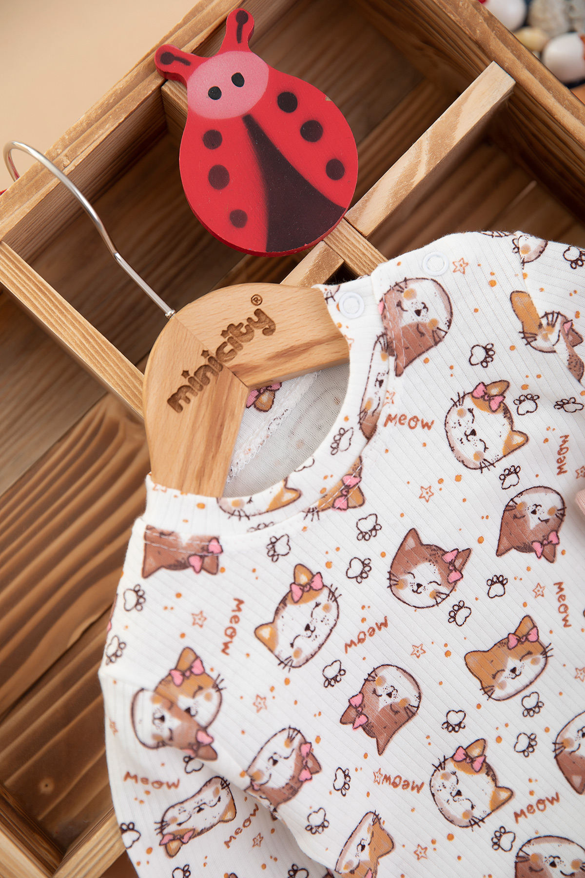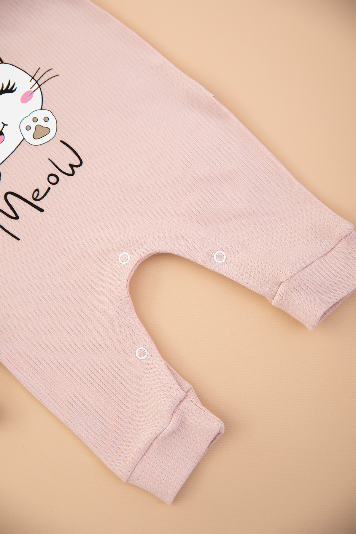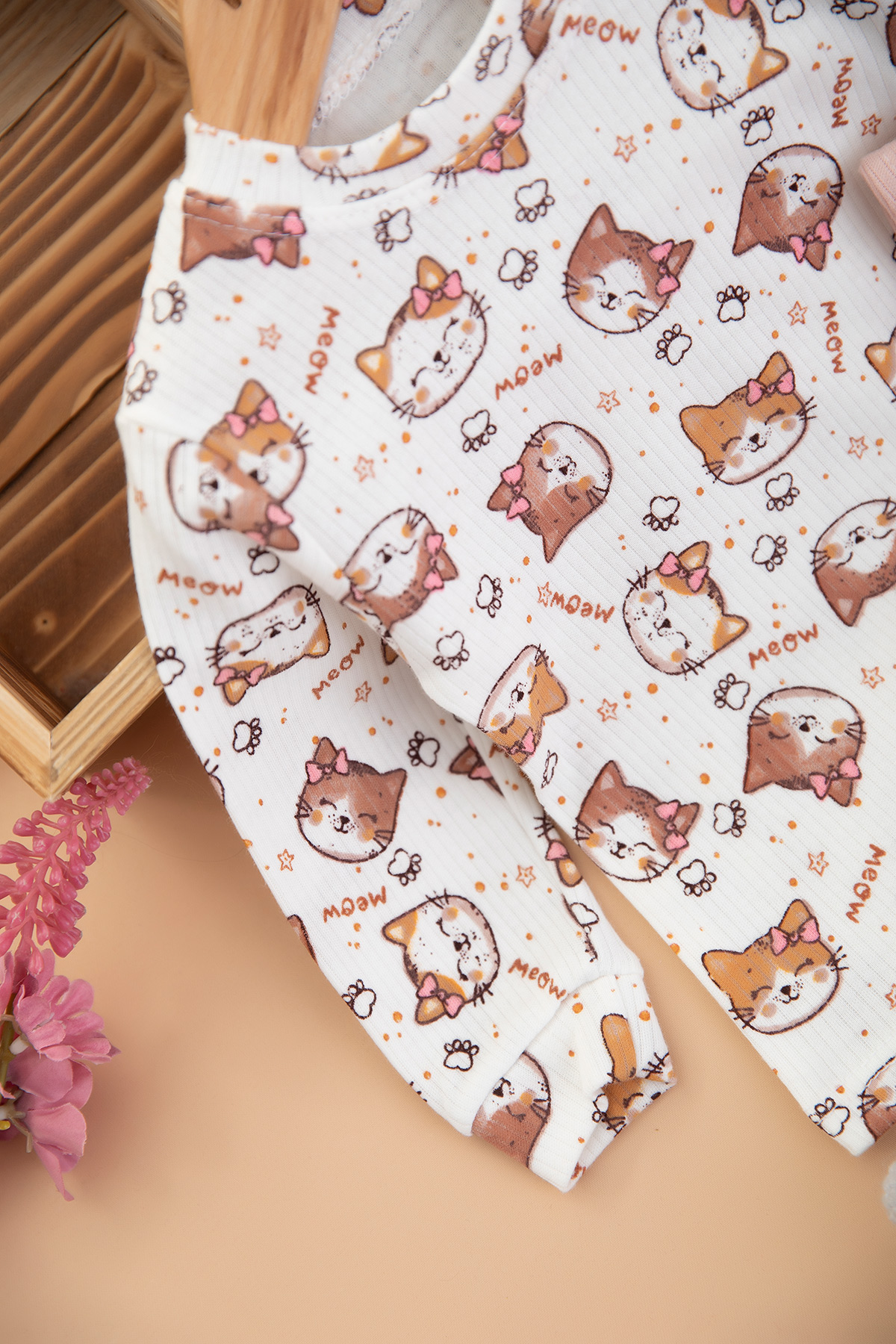 Kız Bebek Kedi Baskılı Badili Bahçıvan - 1160 (0-9 Ay)