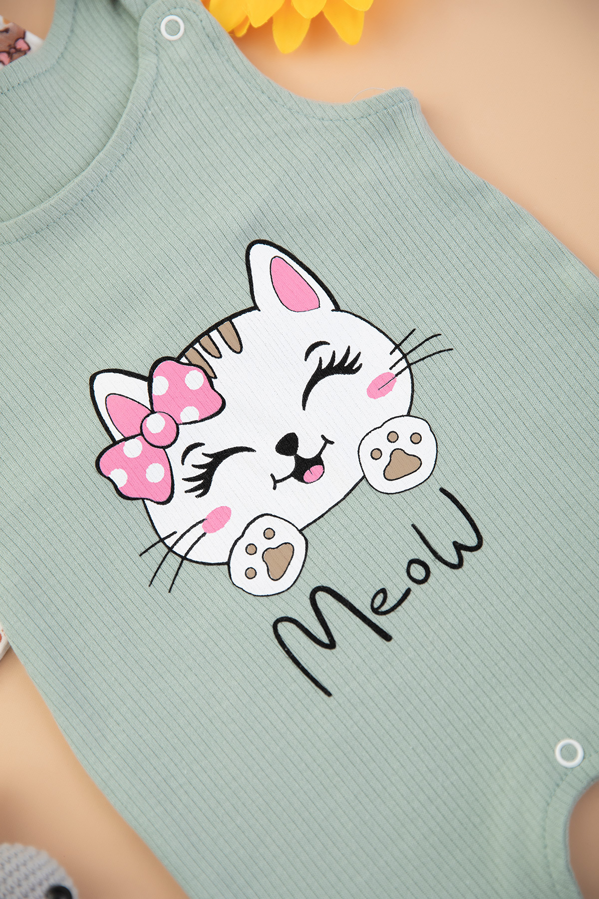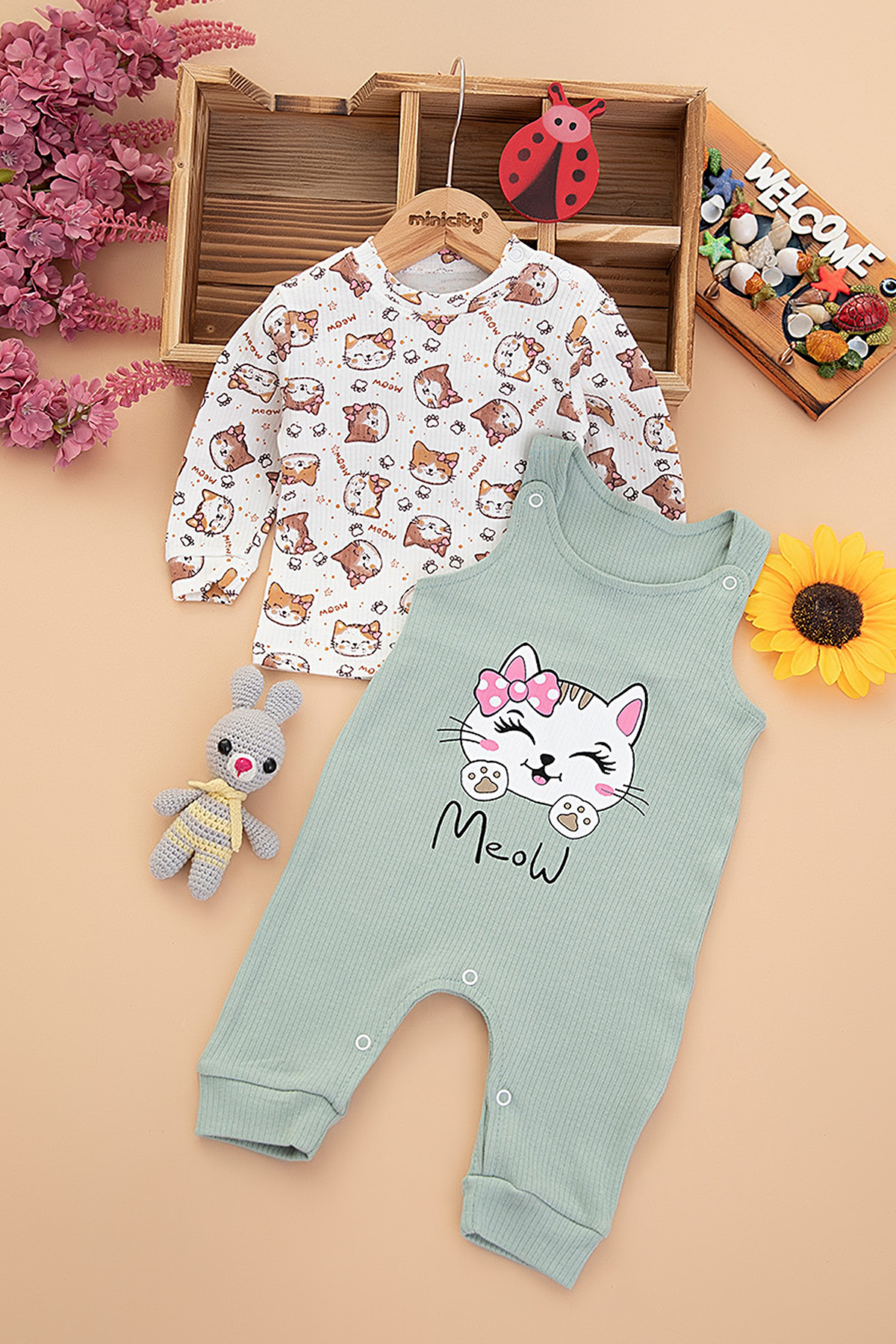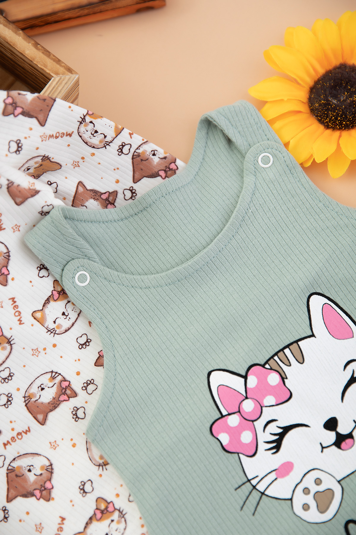 Kız Bebek Kedi Baskılı Badili Bahçıvan - 1160 (0-9 Ay)