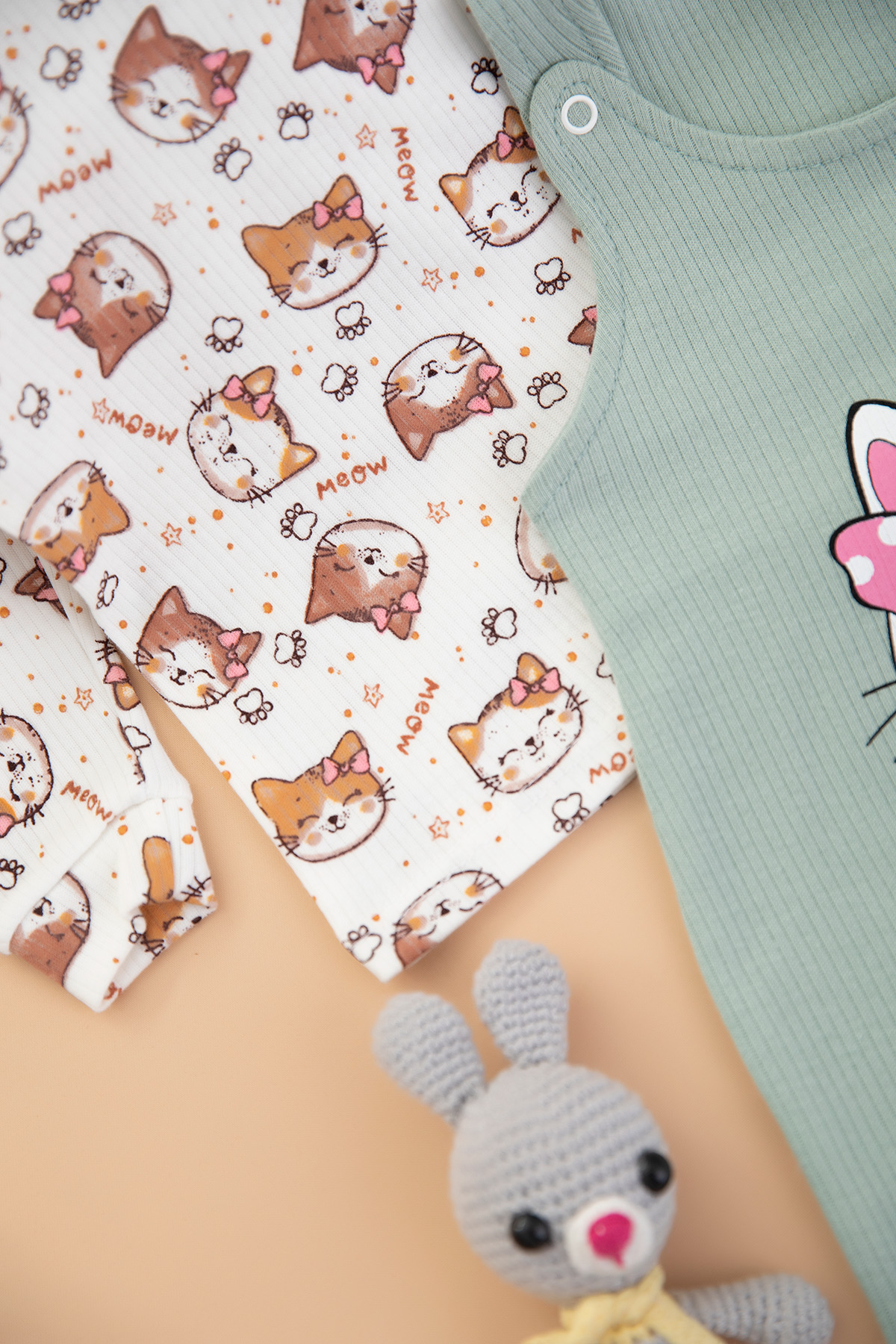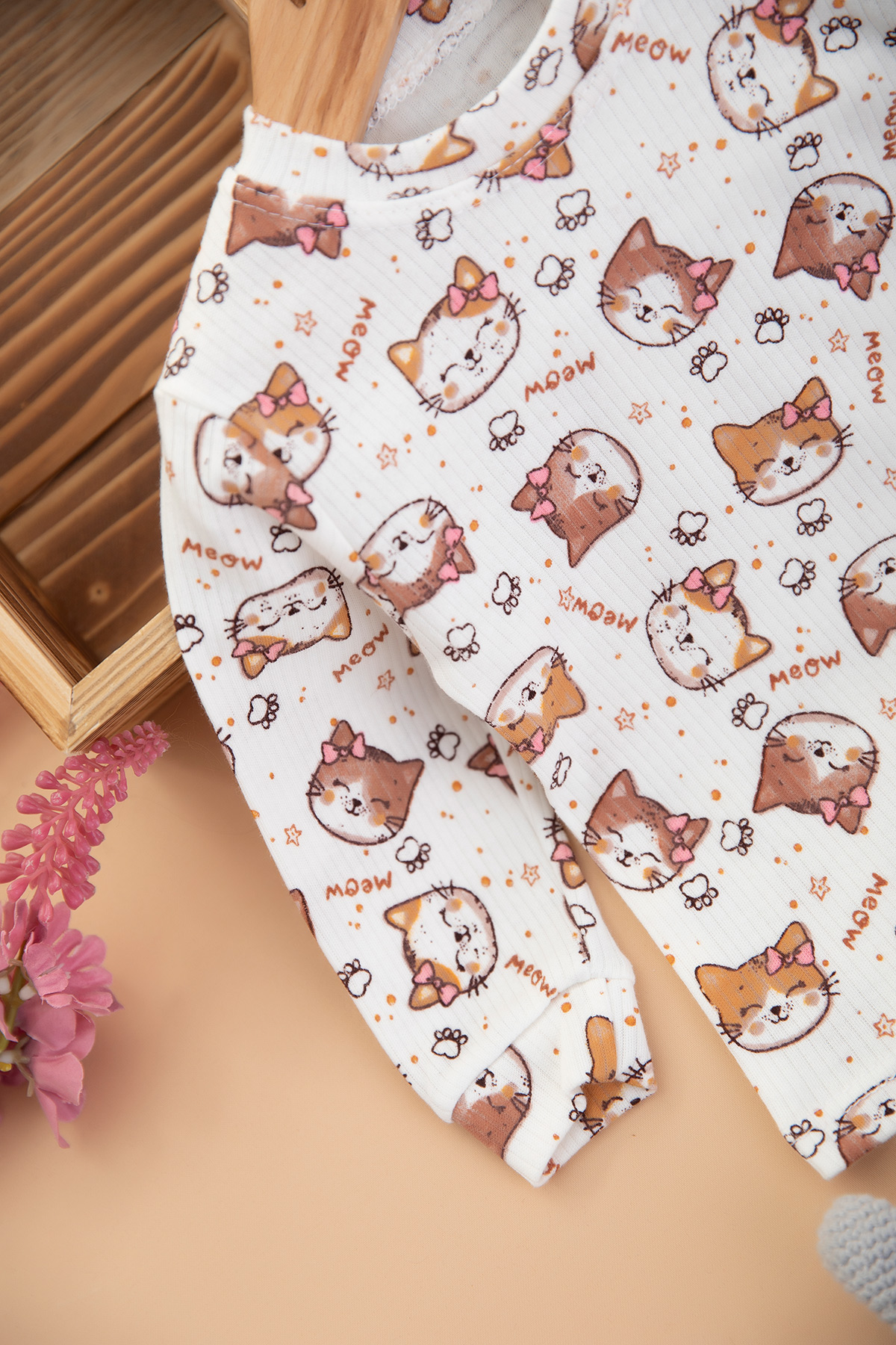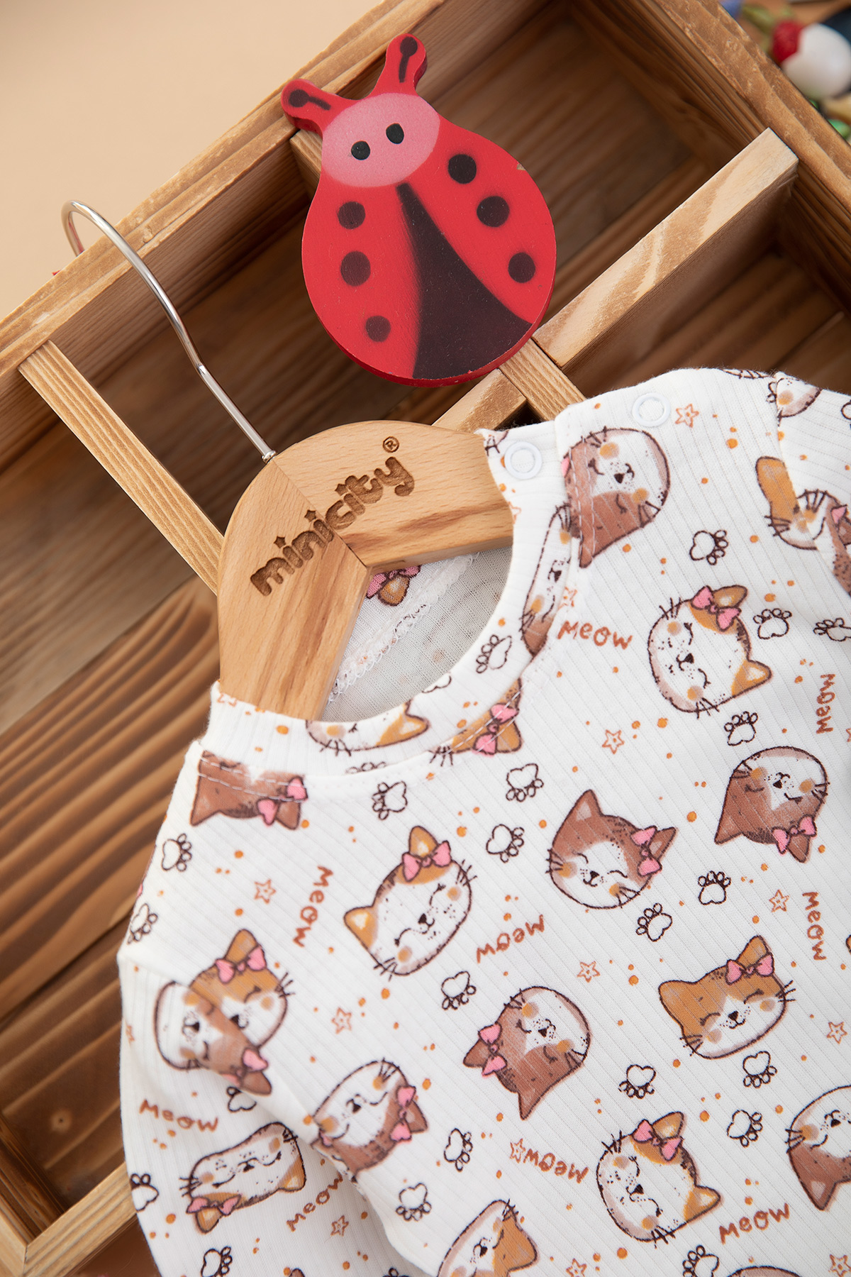 Kız Bebek Kedi Baskılı Badili Bahçıvan - 1160 (0-9 Ay)