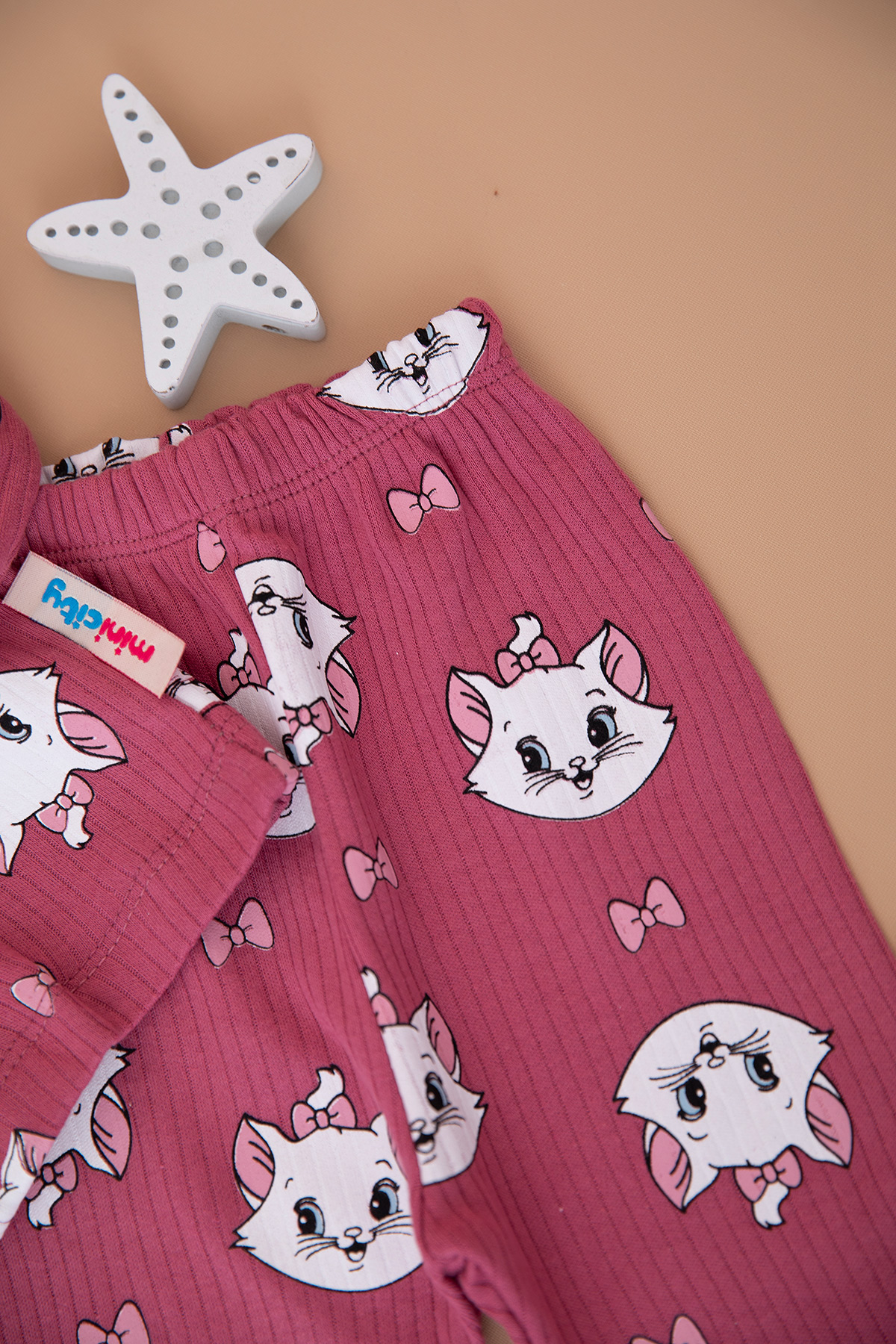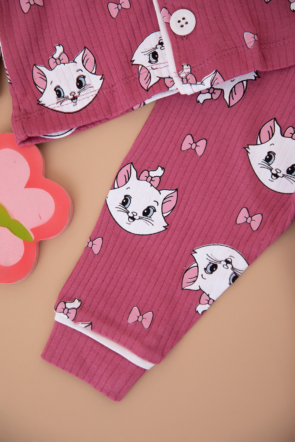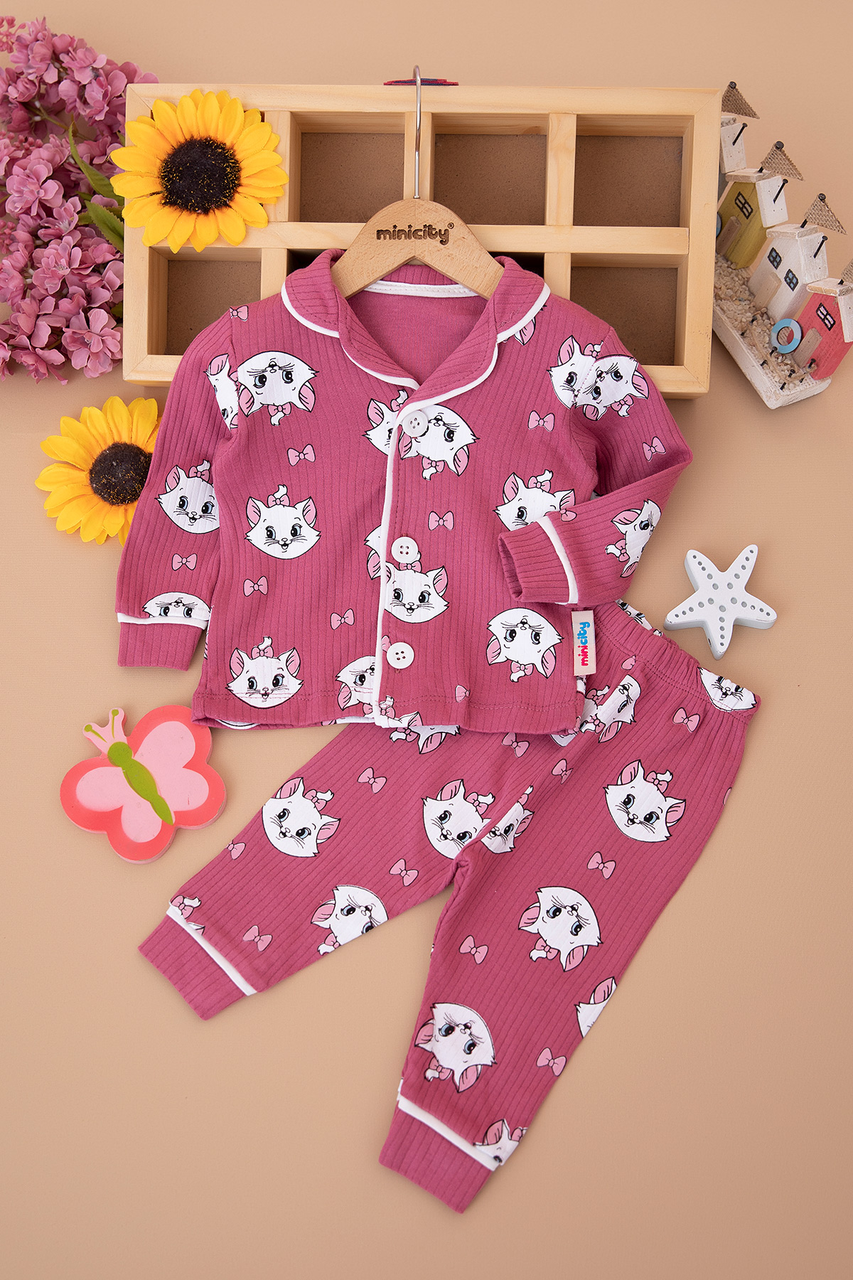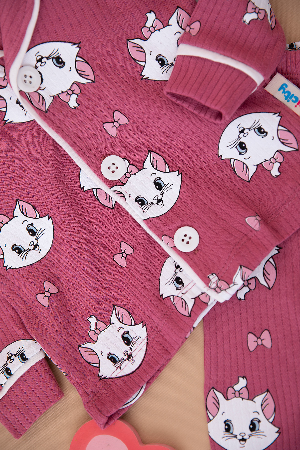 Kız Bebek Kedi Baskılı Fiyonklu Pijama Takım - 1107 (6-24 Ay)
