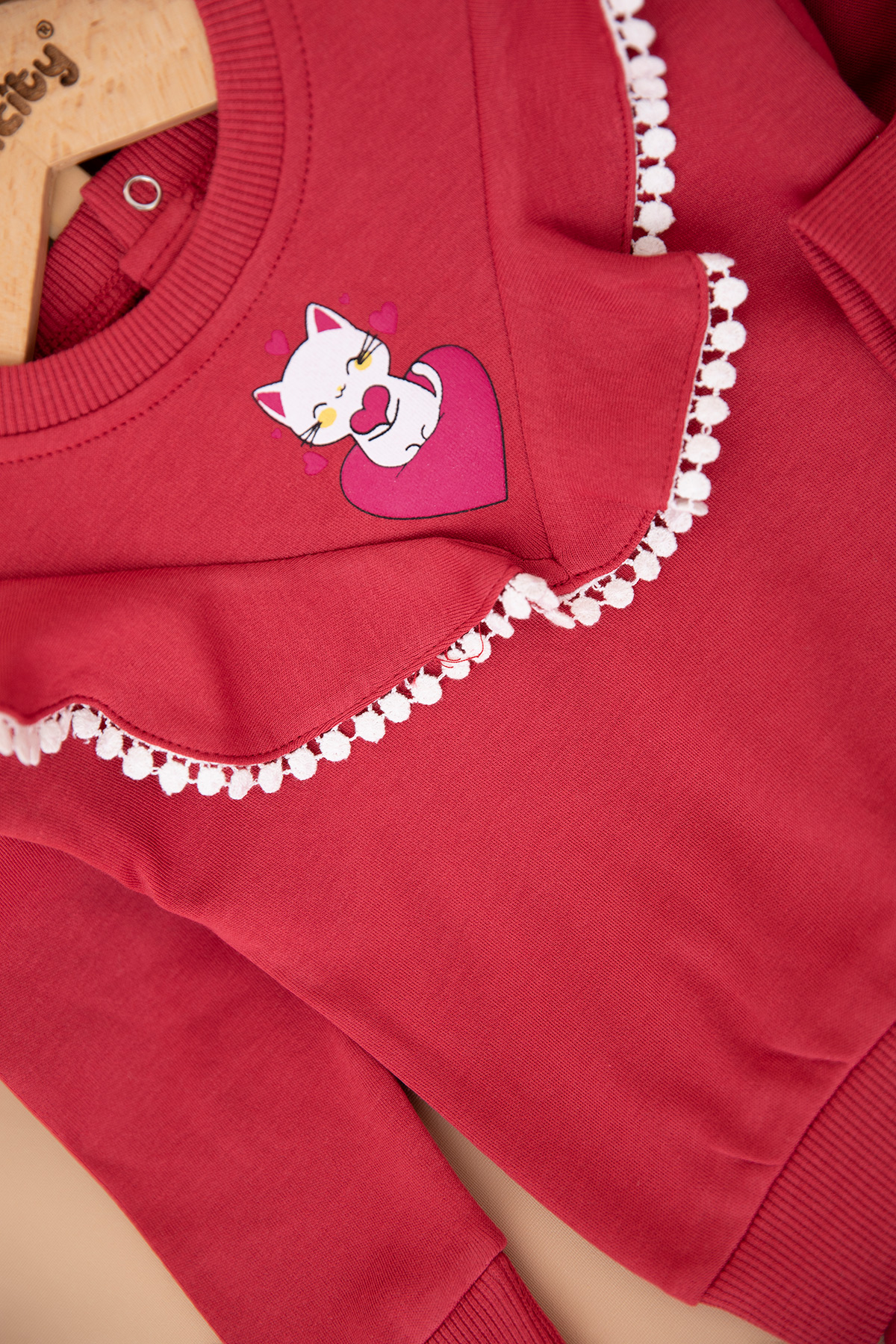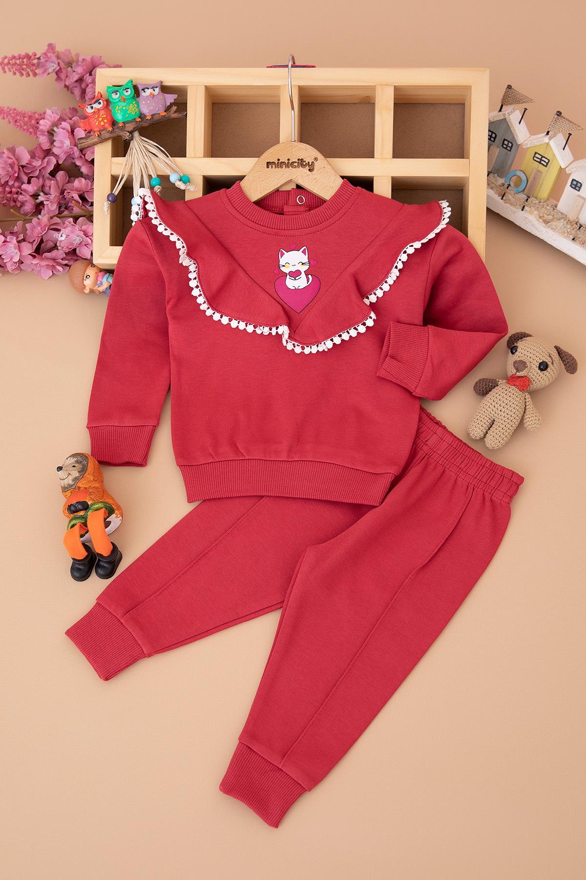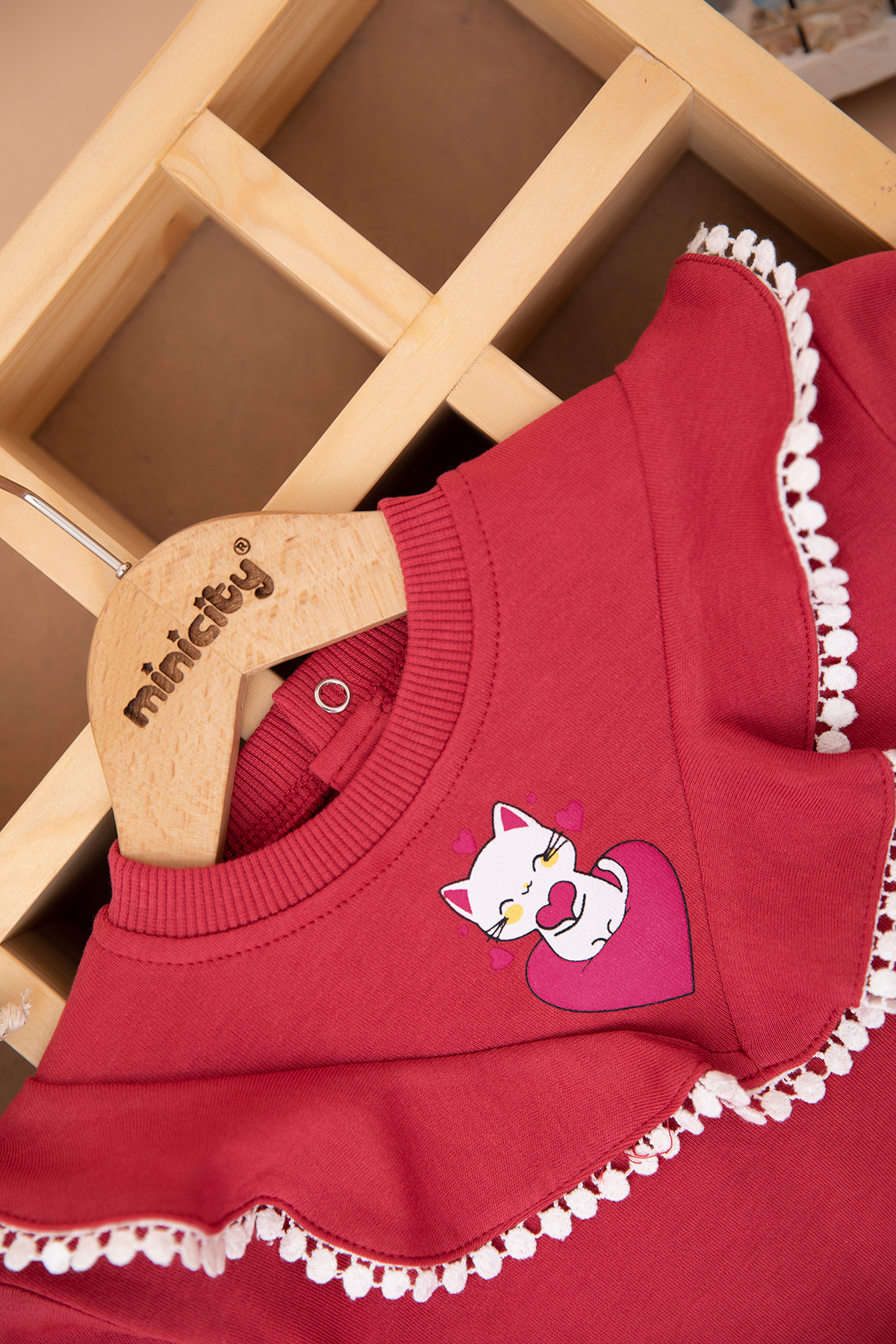Kız Bebek Kedi Baskılı Ponponlu Takım - 25730 (9-24 Ay)