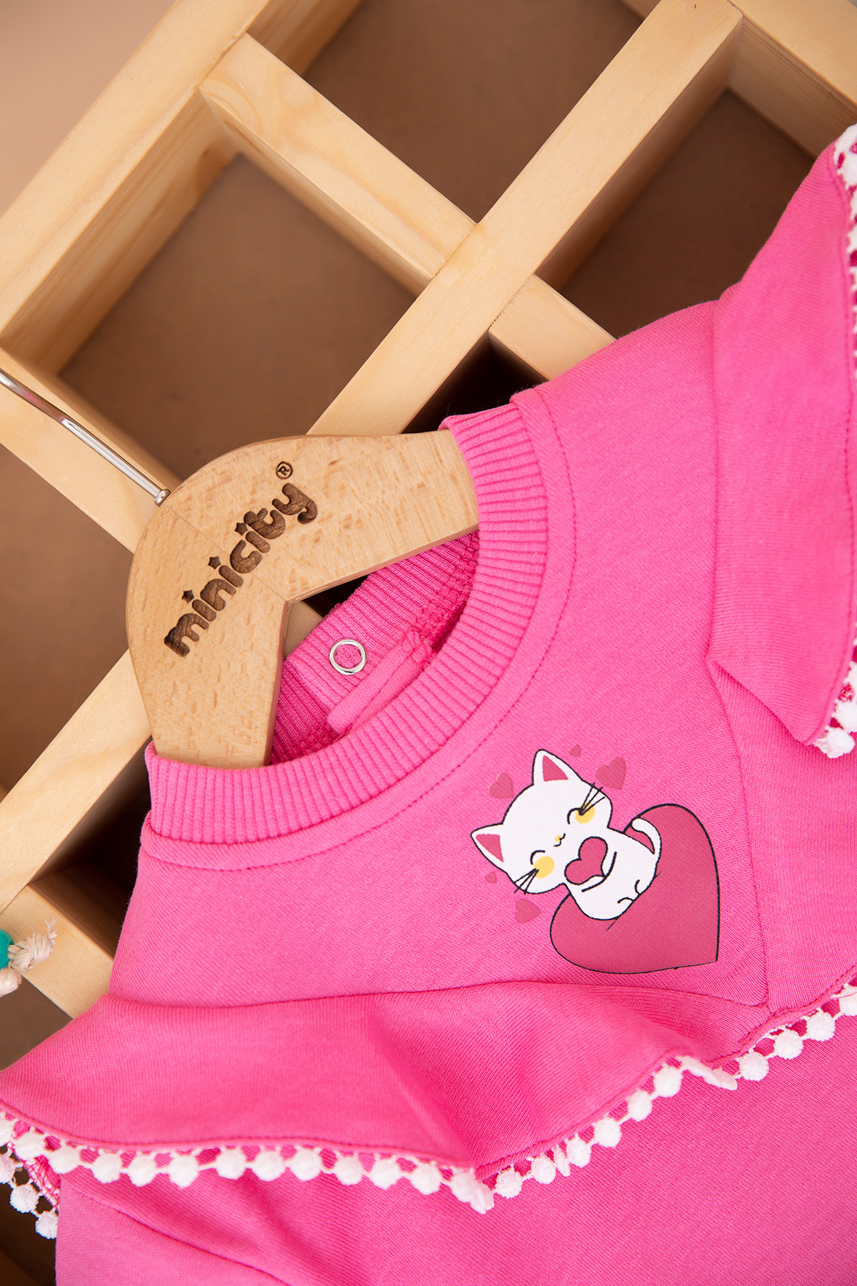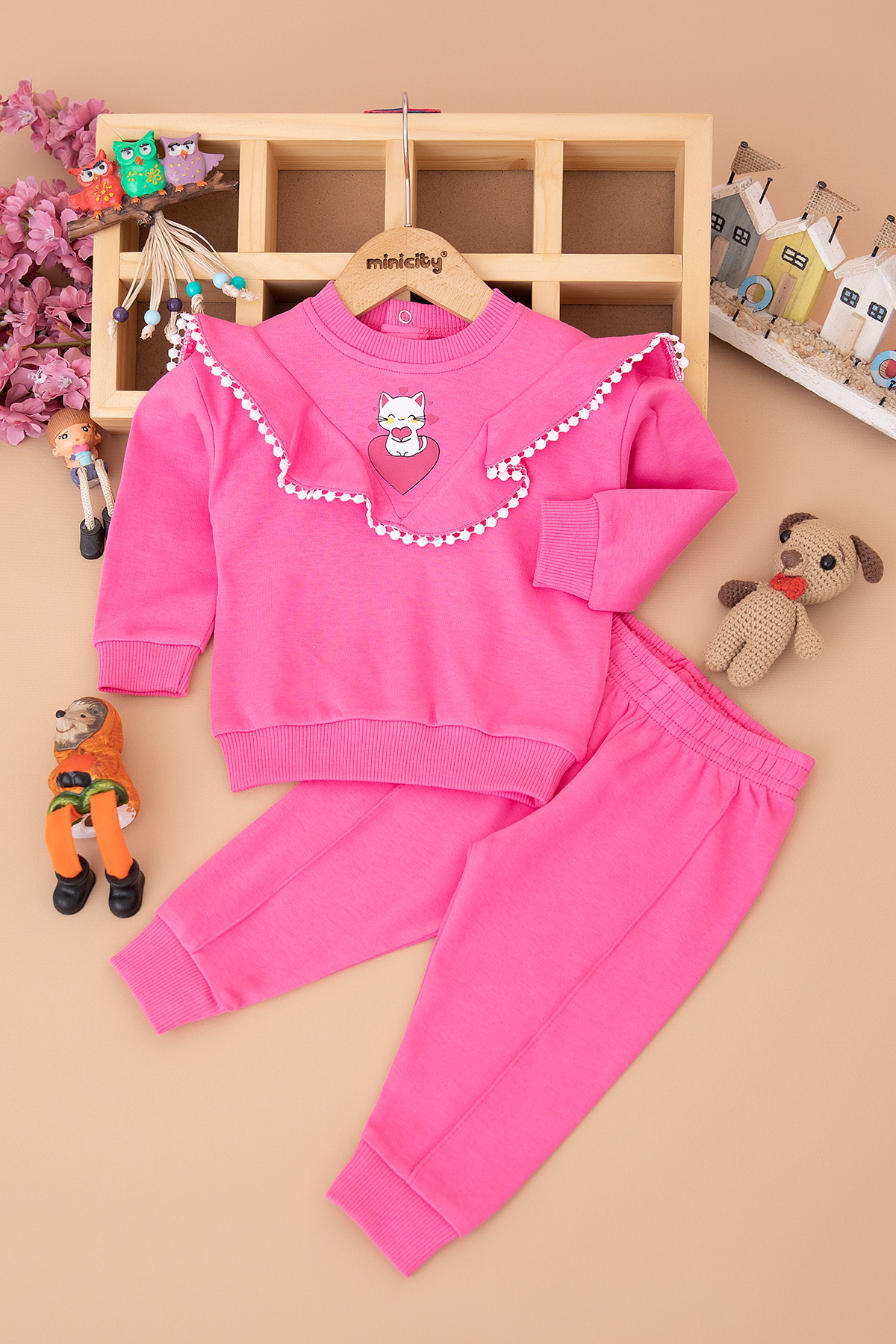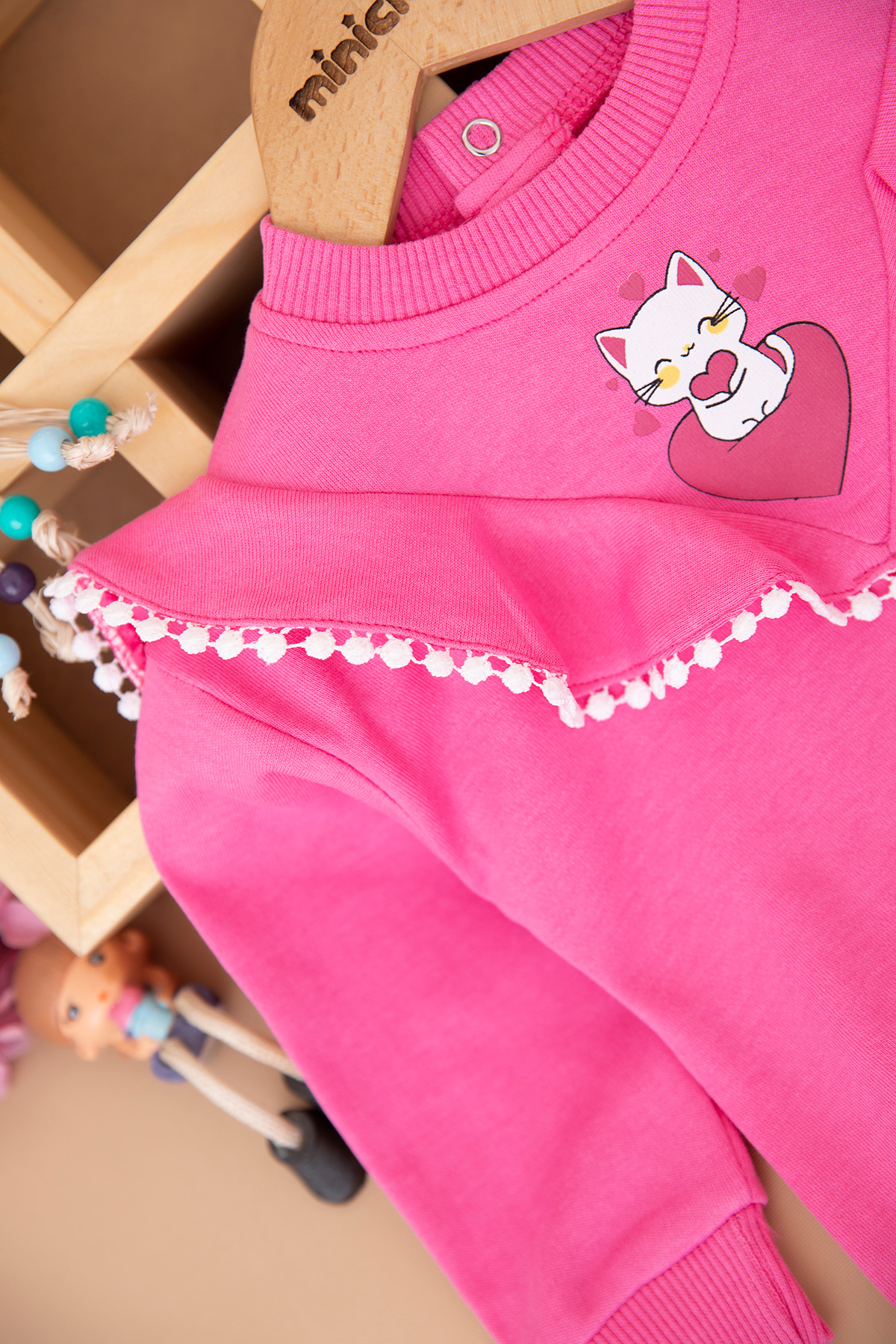 Kız Bebek Kedi Baskılı Ponponlu Takım - 25730 (9-24 Ay)