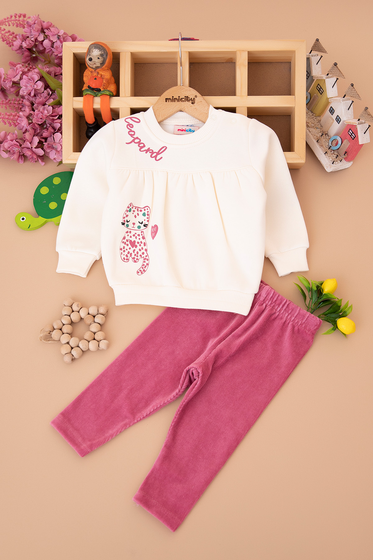 Kız Bebek Kedi Baskılı Üçip Takım - 25868 (9-24 Ay)