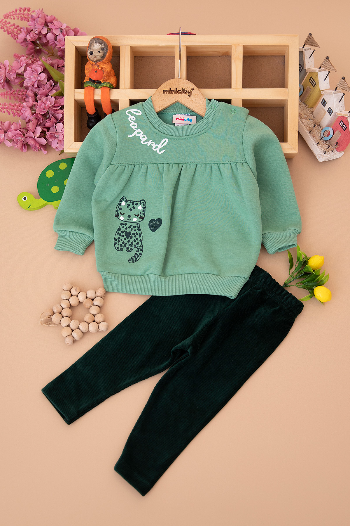 Kız Bebek Kedi Baskılı Üçip Takım - 25868 (9-24 Ay)
