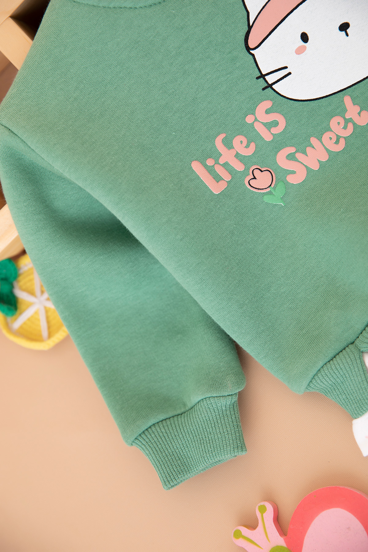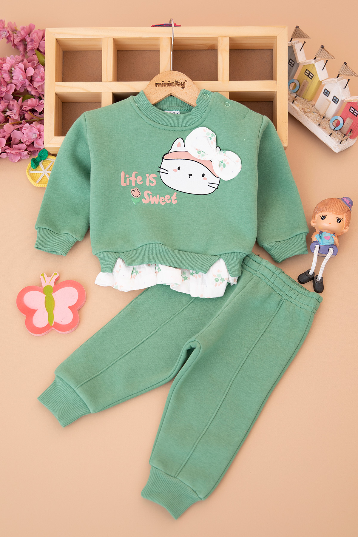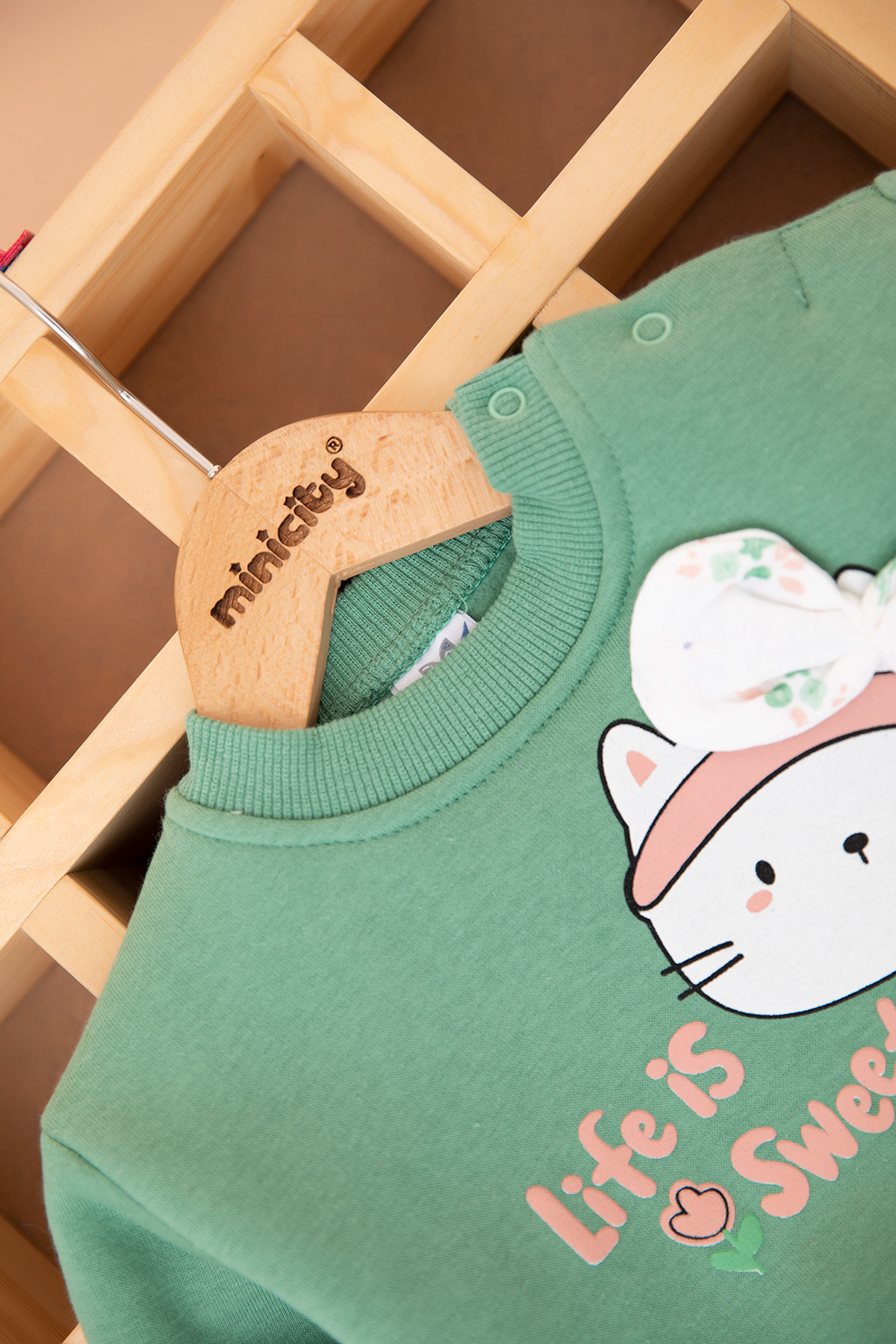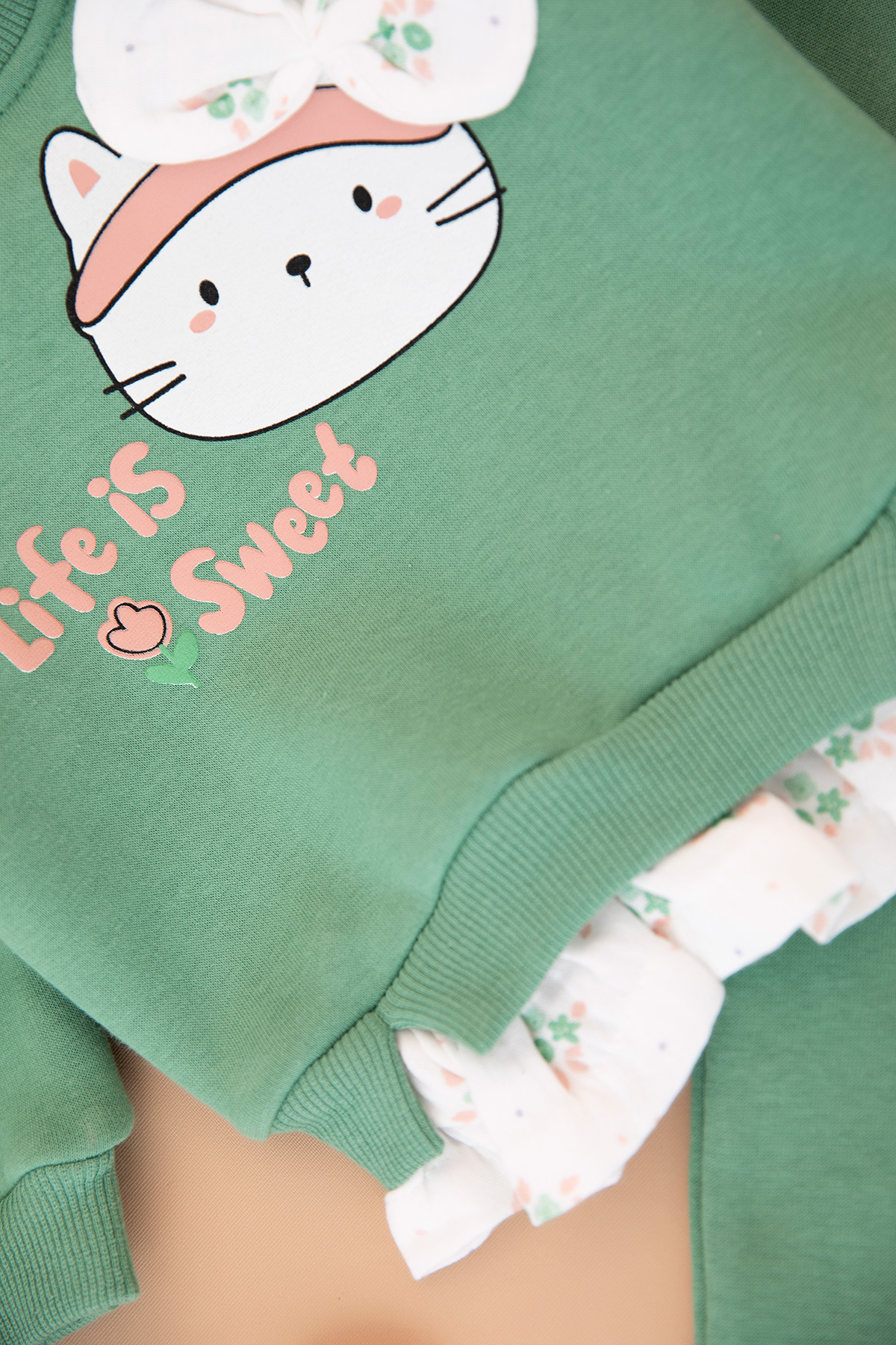 Kız Bebek Kedi Baskılı Üçip Takım - 25880 (9-24 Ay)