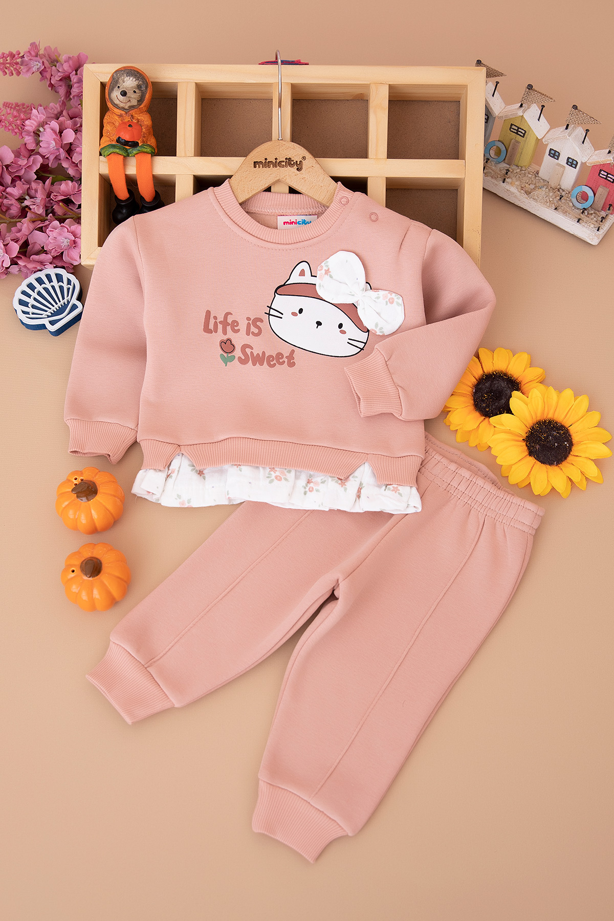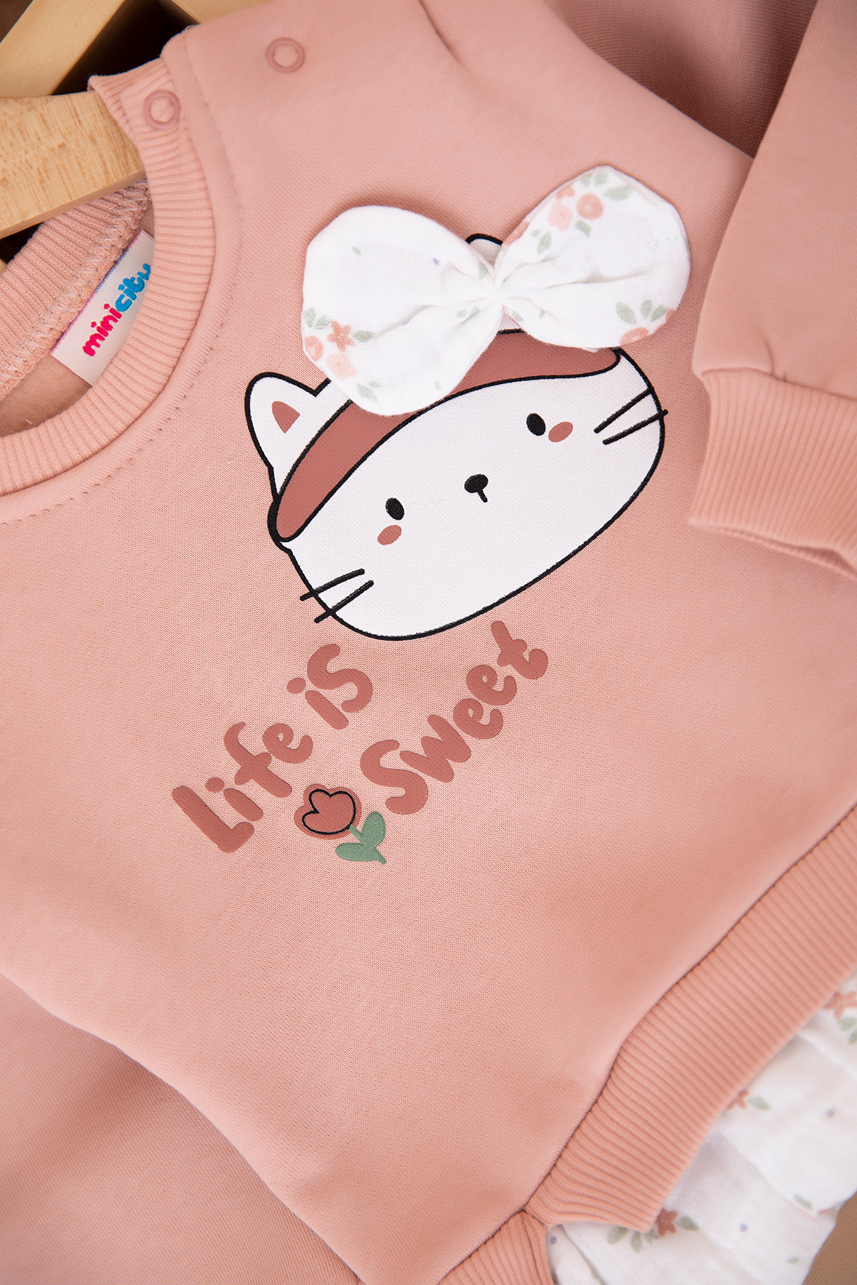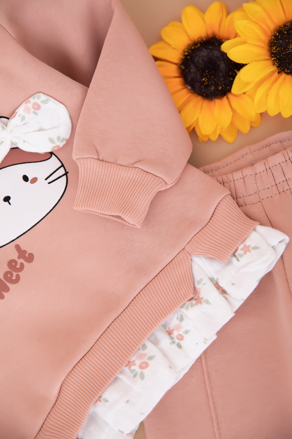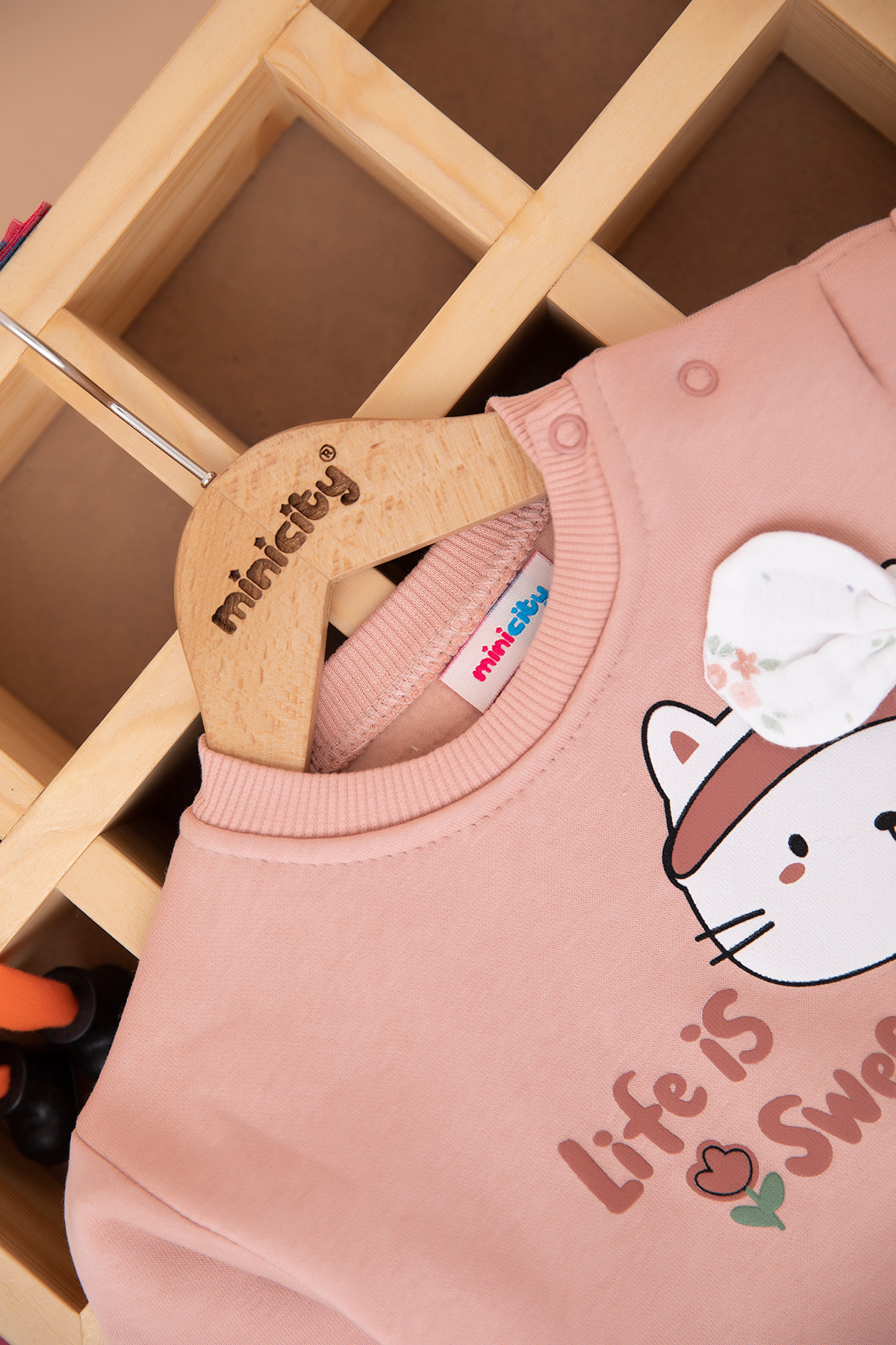 Kız Bebek Kedi Baskılı Üçip Takım - 25880 (9-24 Ay)