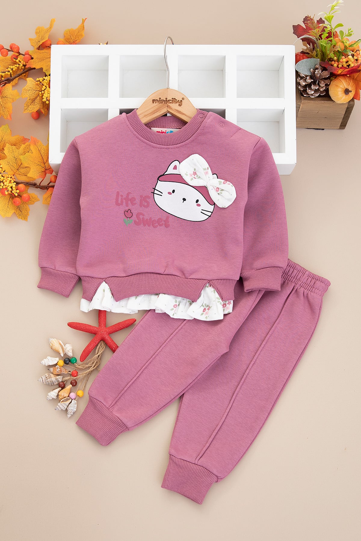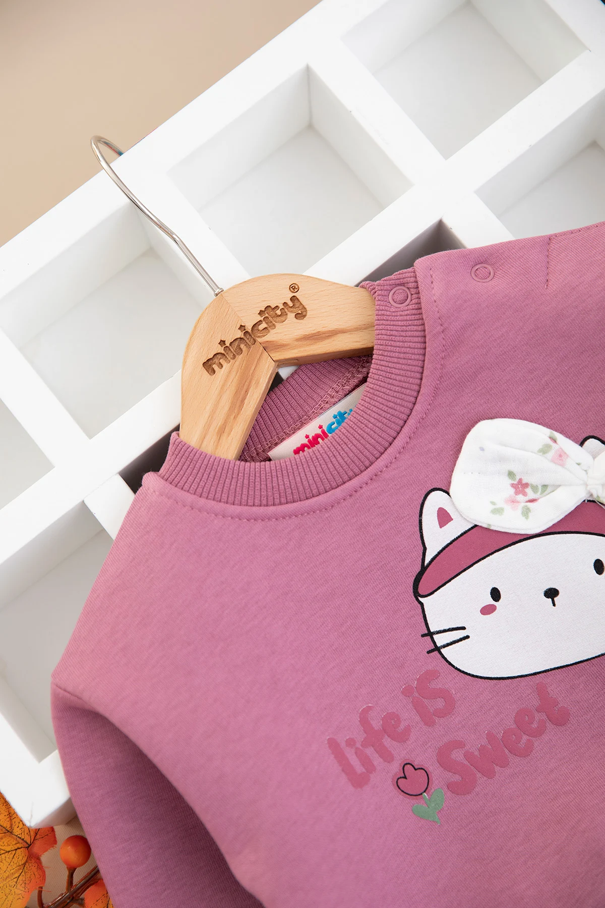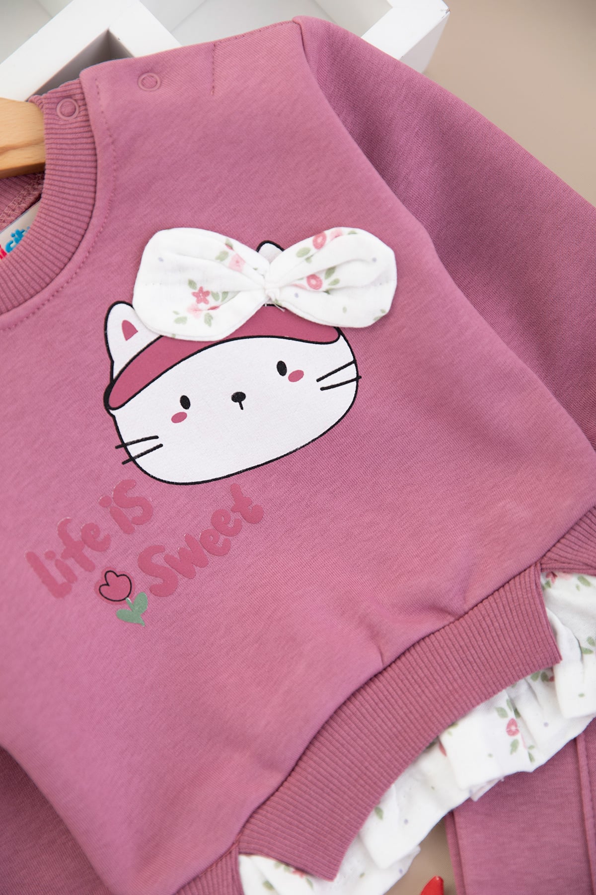 Kız Bebek Kedi Baskılı Üçip Takım - 25880 (9-24 Ay)