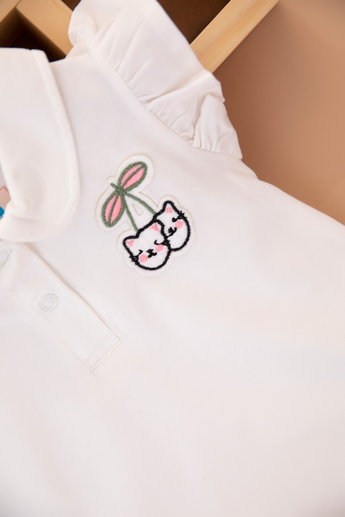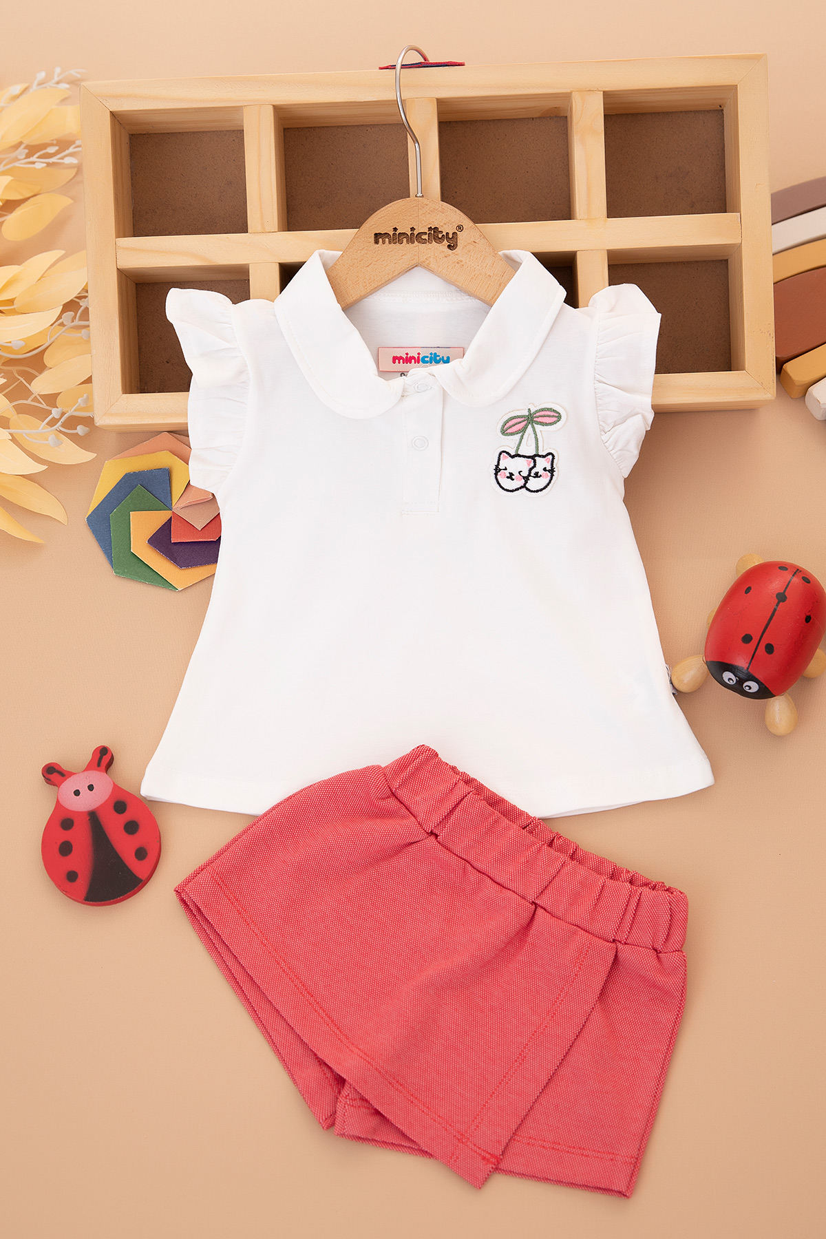 Kız Bebek Kedi Nakışlı Şortlu Takım - 25162 (9-24 Ay)