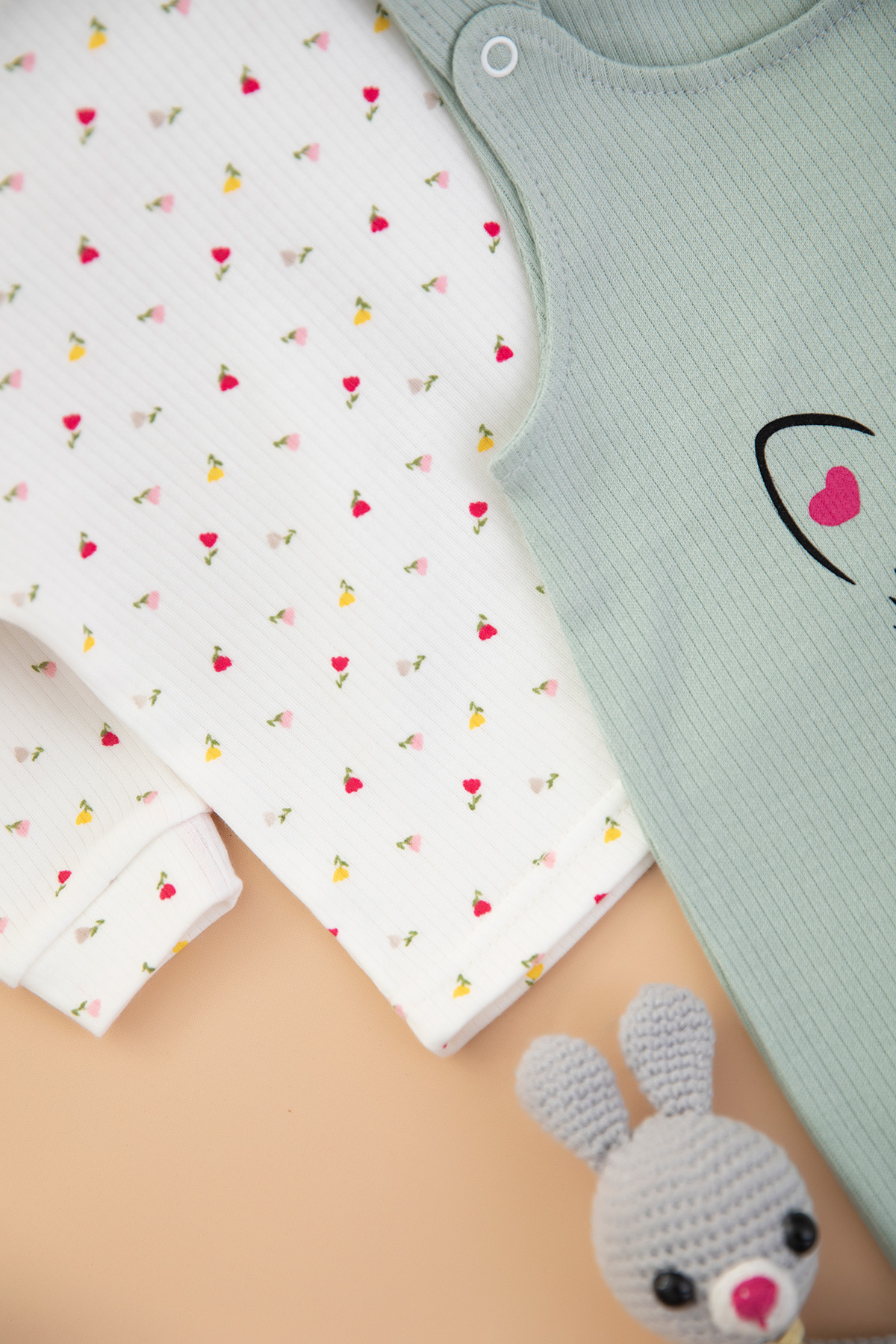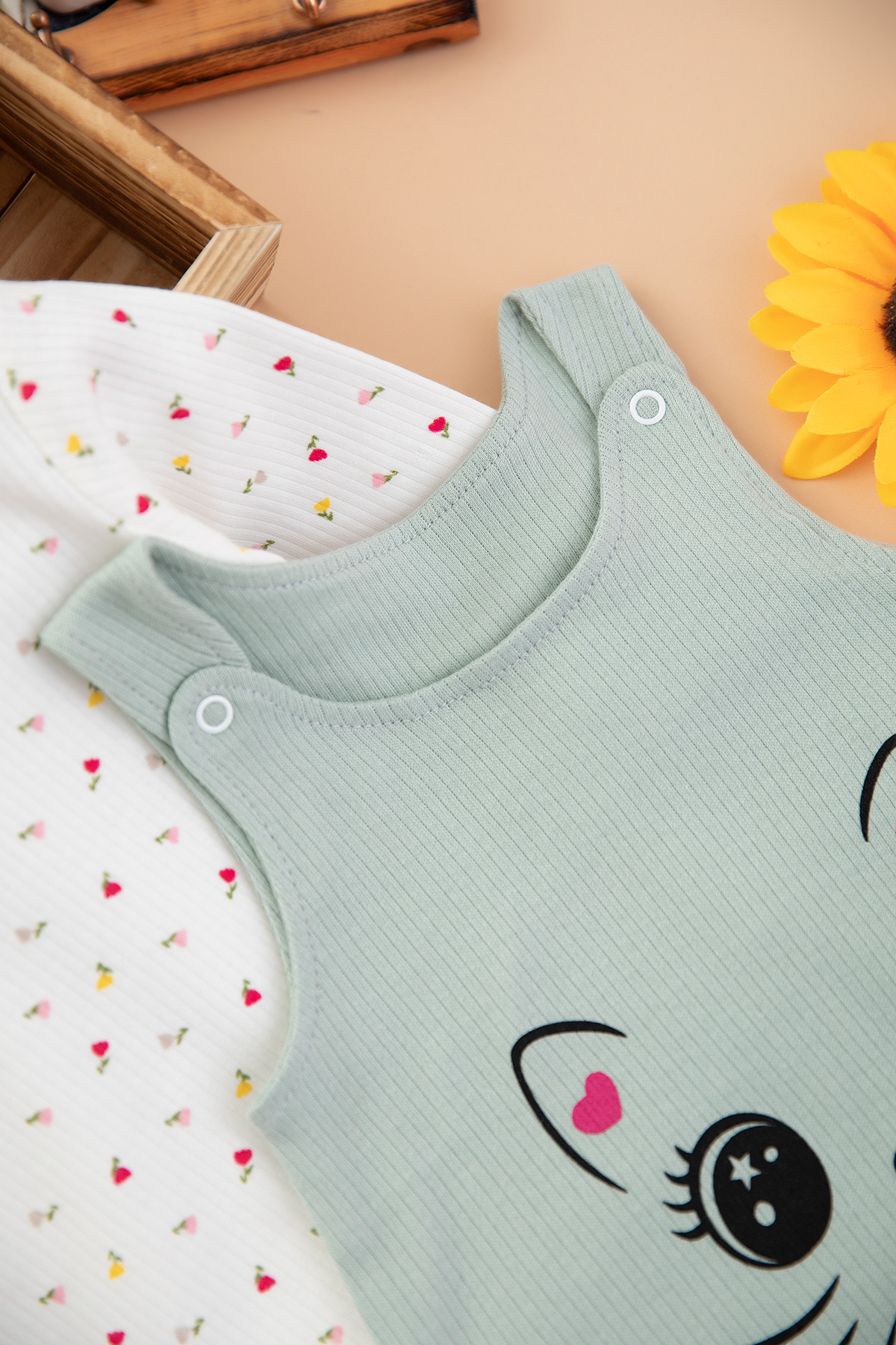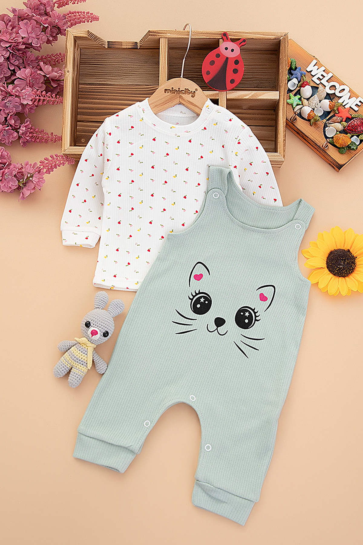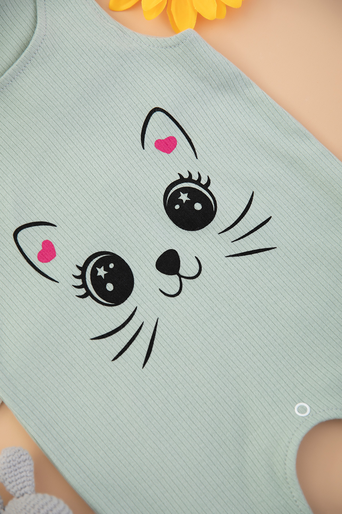 Kız Bebek Kedi Surat Baskılı Badili Salopet - 1153 (0-9 Ay)