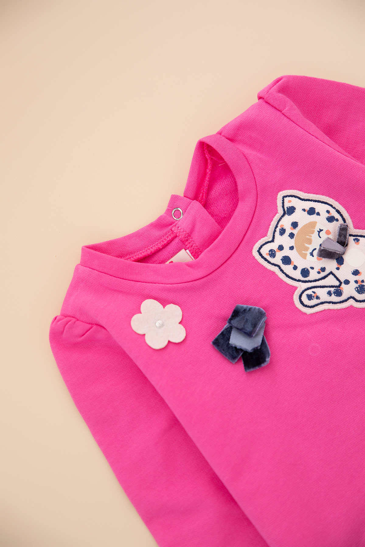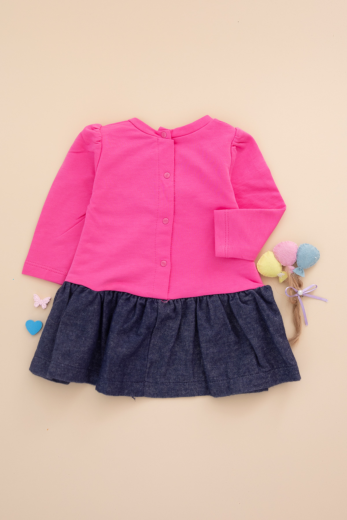 Kız Bebek Kedicik Nakışlı Elbise - 121102 (6-24 Ay)