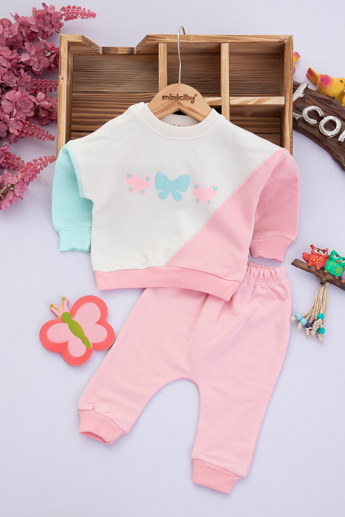 Kız Bebek Kelebek Baskılı İkili Takım - 3033 (6-18 Ay)