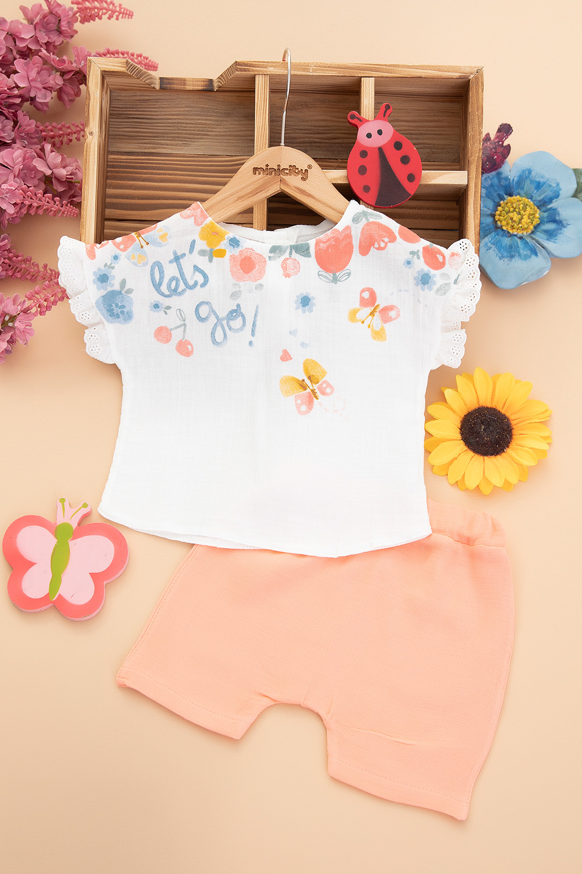Kız Bebek Kelebek Baskılı Şortlu Takım - 2511 (9-18 Ay)