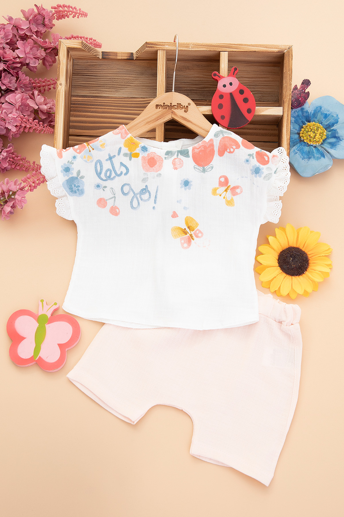 Kız Bebek Kelebek Baskılı Şortlu Takım - 2511 (9-18 Ay)