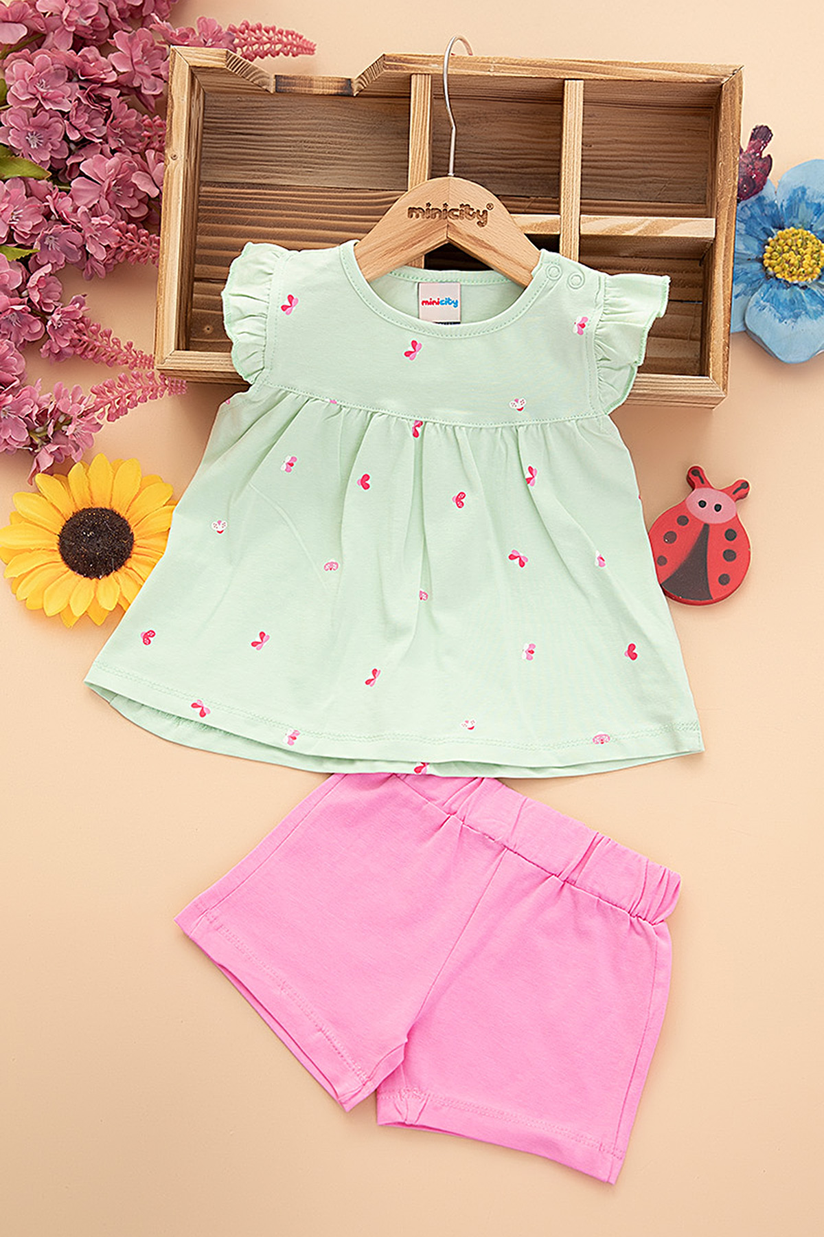 Kız Bebek Kelebek Baskılı Şortlu Takım - 25439 (9-24 Ay)