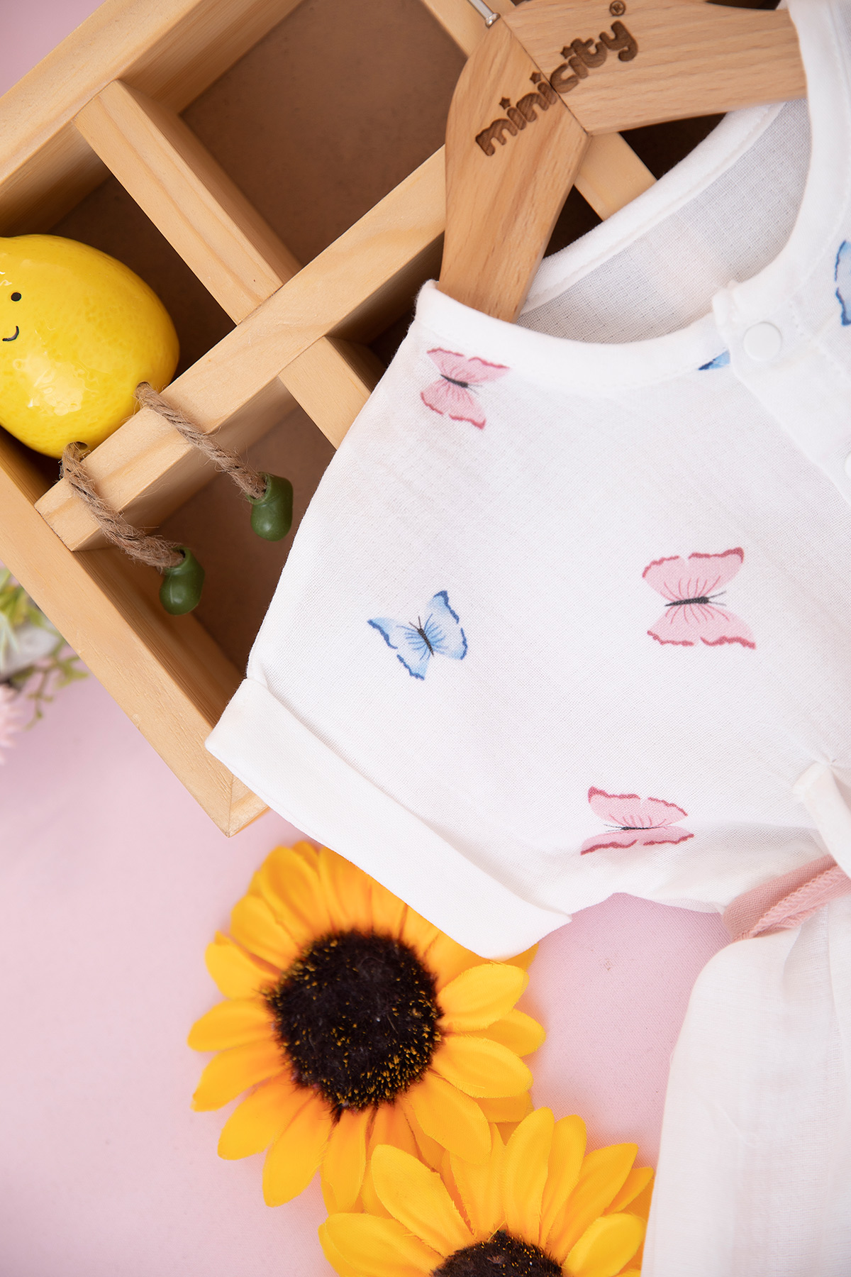 Kız Bebek Kelebek Baskılı Şortlu Takım - 935 (9-18 Ay)
