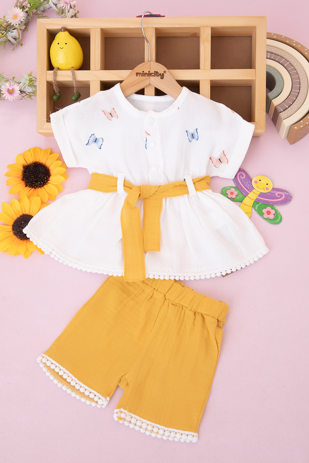 Kız Bebek Kelebek Baskılı Şortlu Takım - 935 (9-18 Ay)
