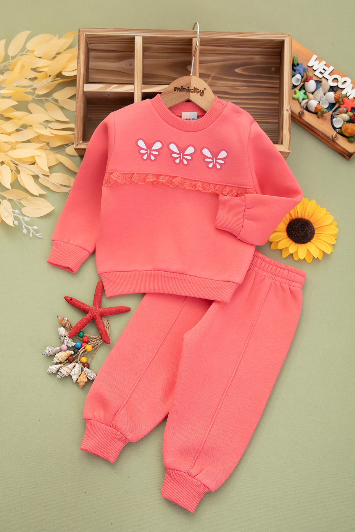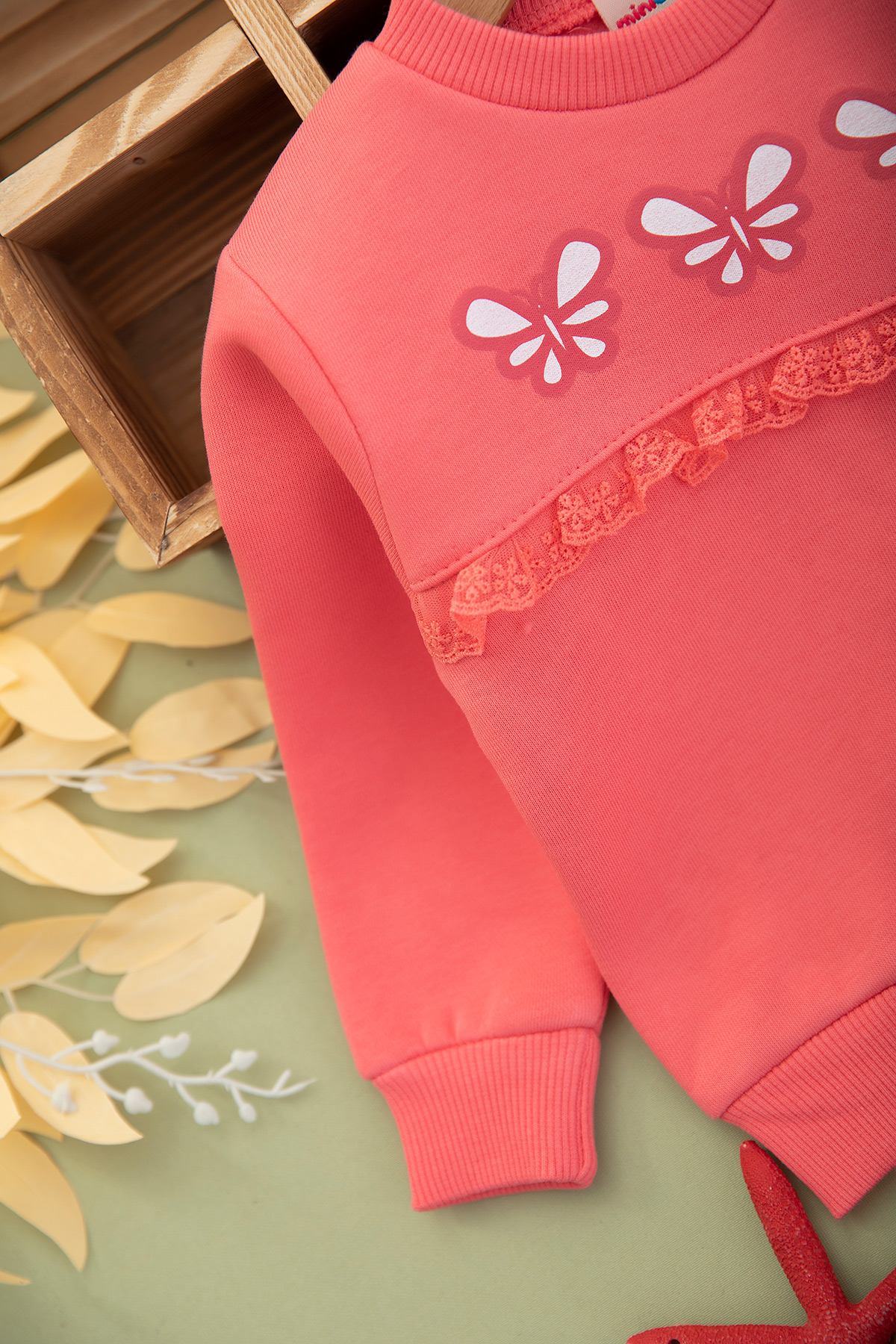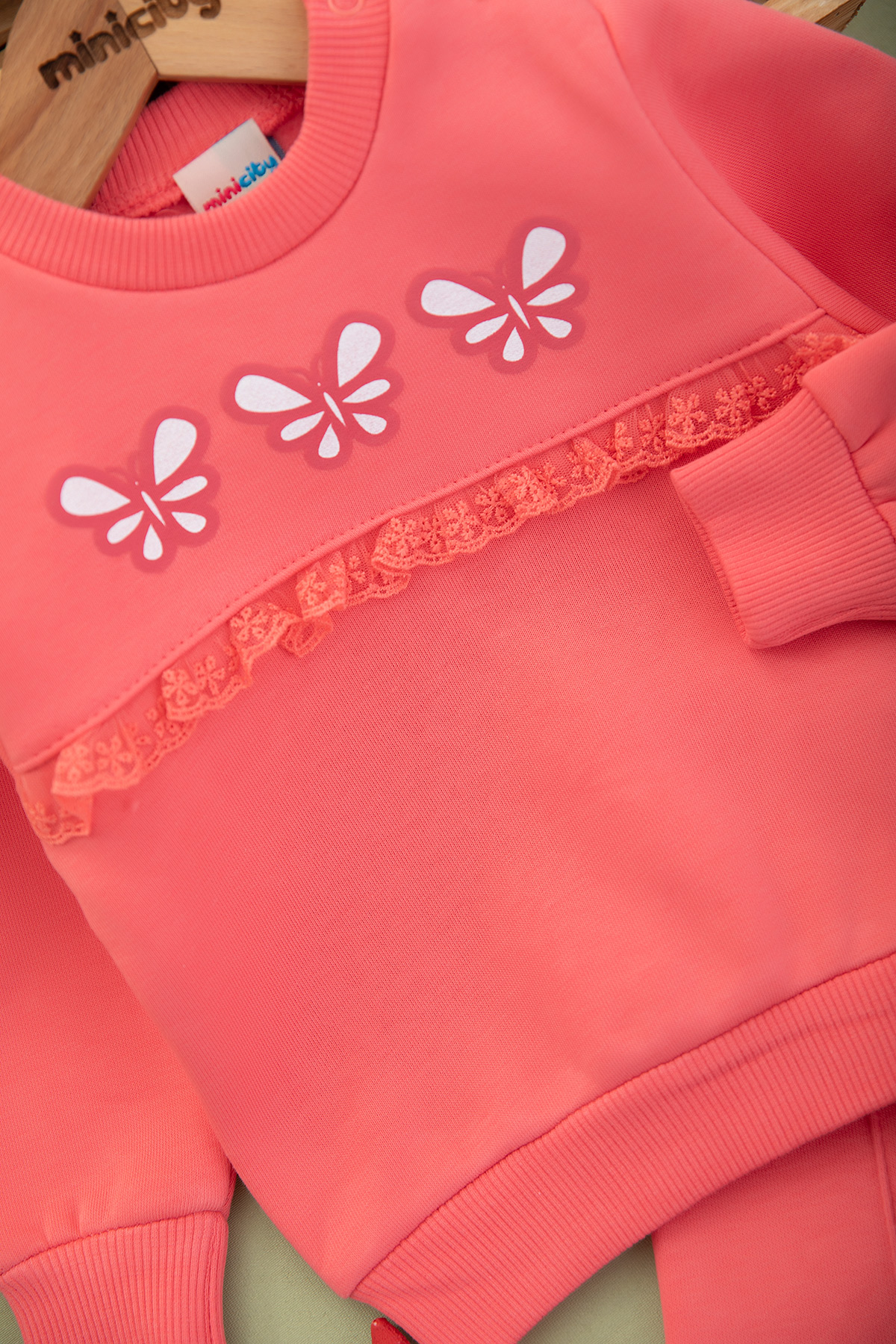 Kız Bebek Kelebek Baskılı Üç İp Takım - 24821 (9-24 Ay)