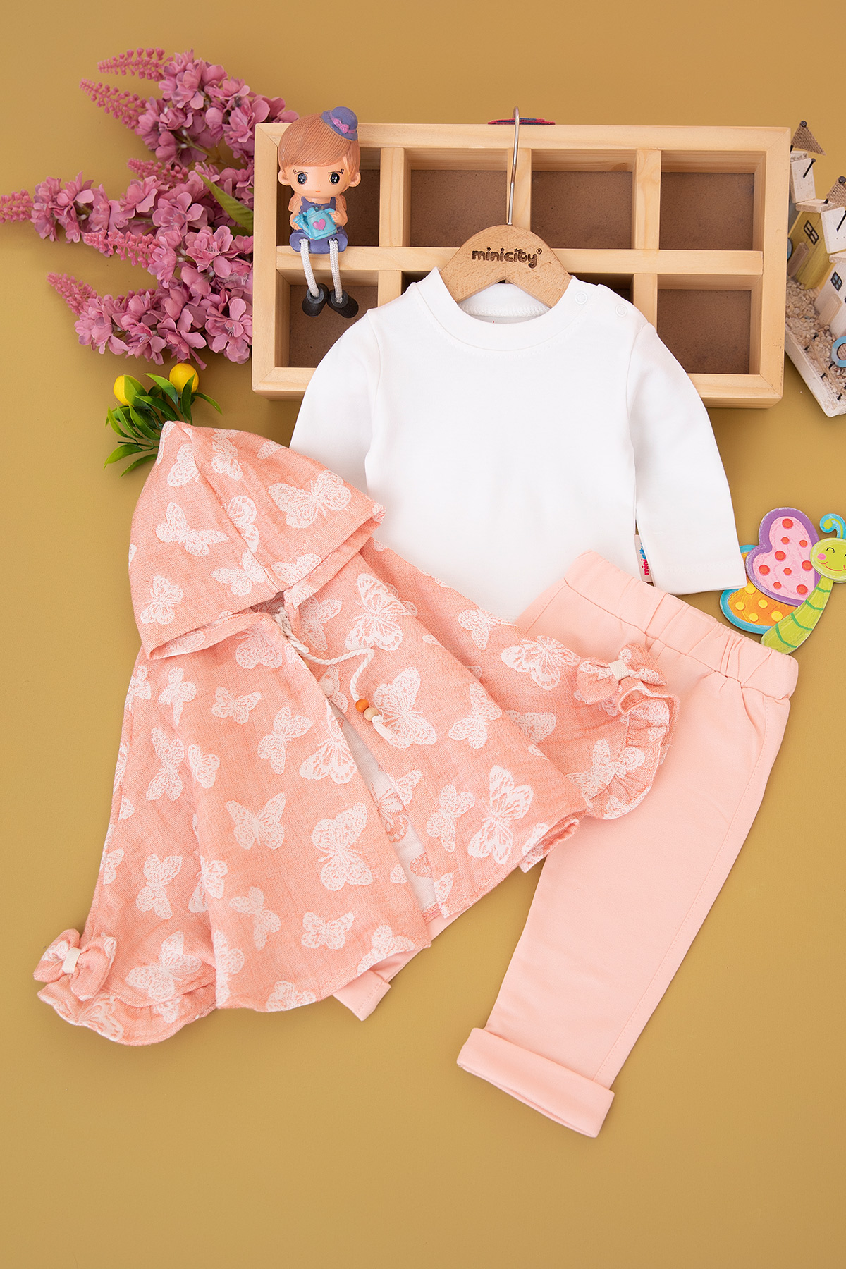 Kız Bebek Kelebek Baskılı Üçlü Takım - 3282 (3-18 Ay)