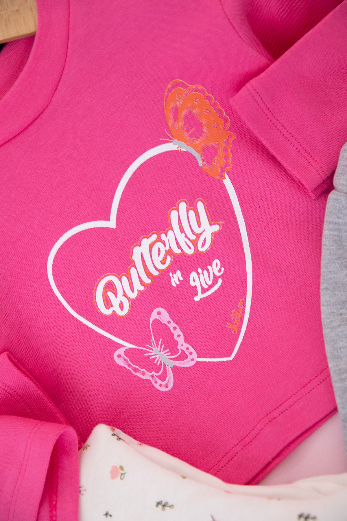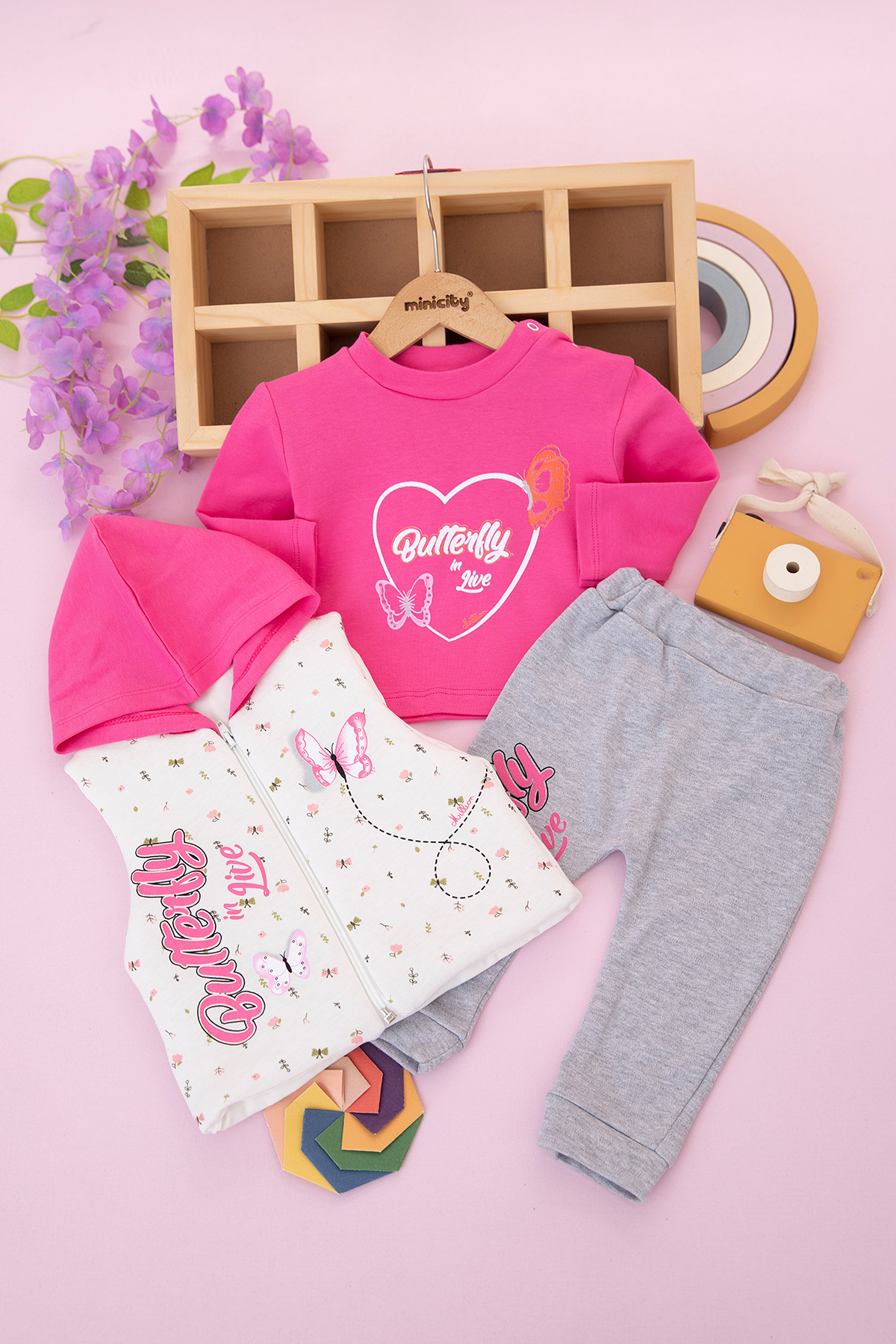 Kız Bebek Kelebek Baskılı Yelekli Üçlü Takım - 4102 (3-12 Ay)